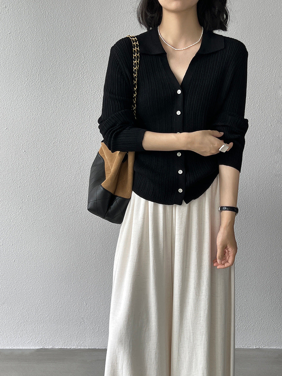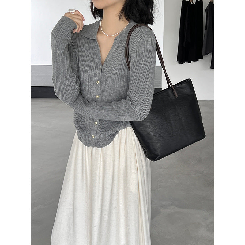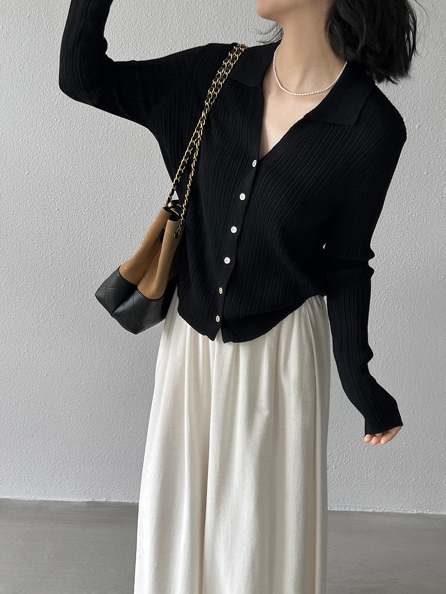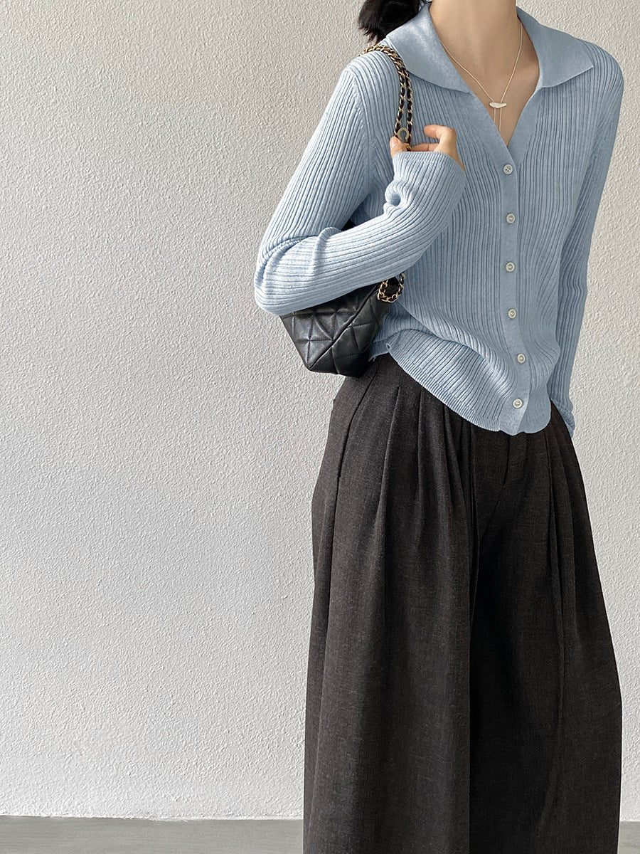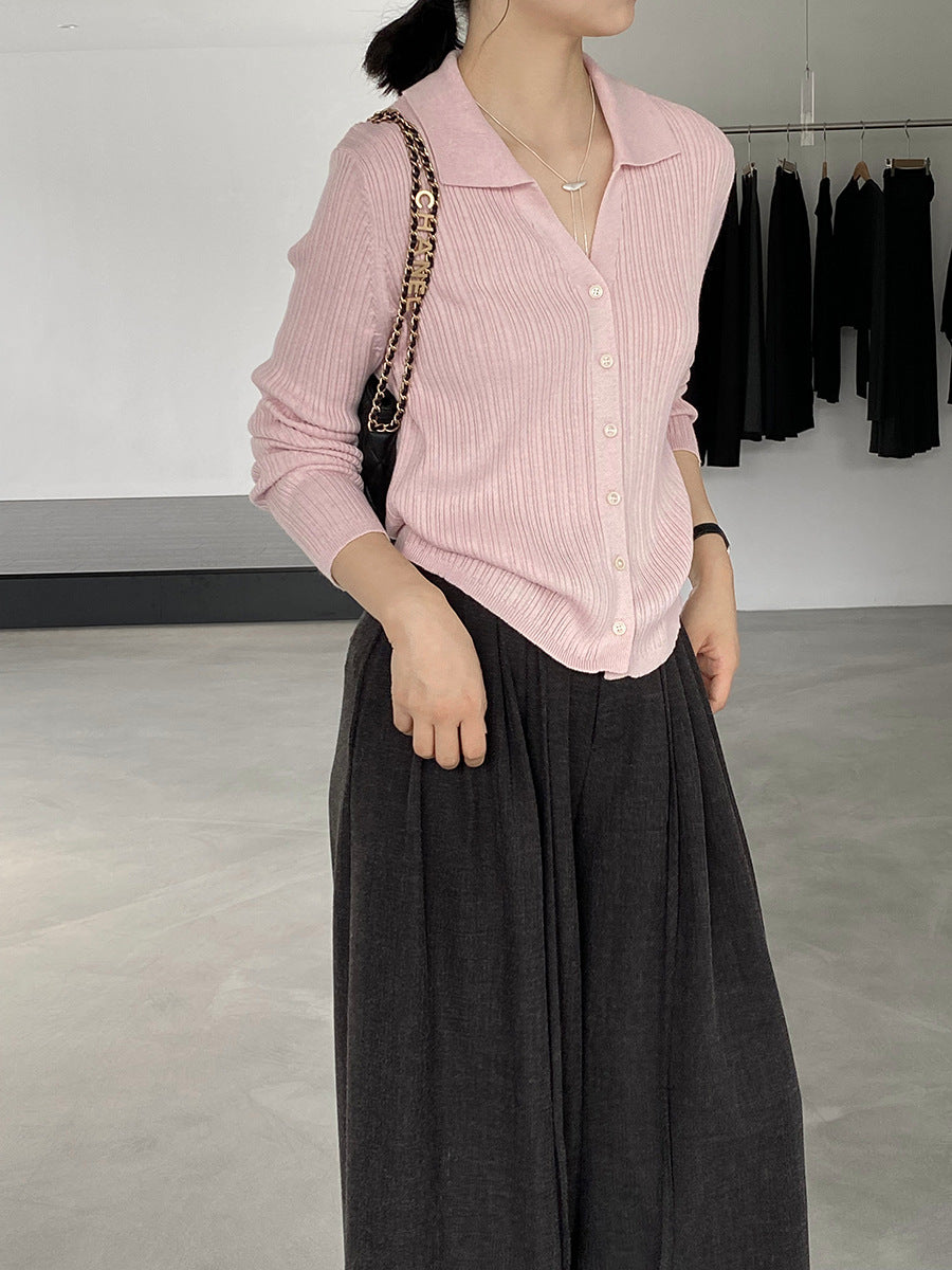 【cim6901】實拍慵懶紙片人polo領針織衫251030