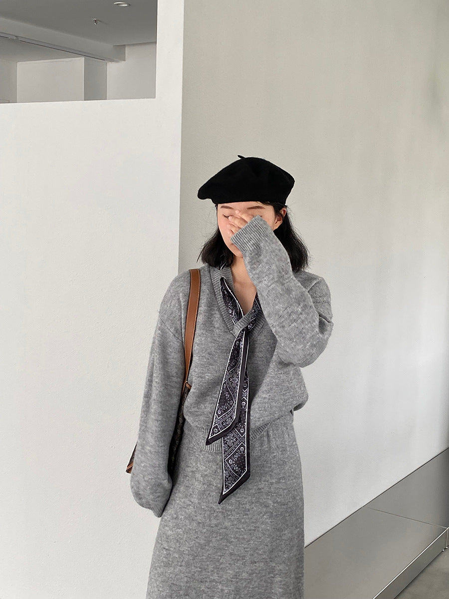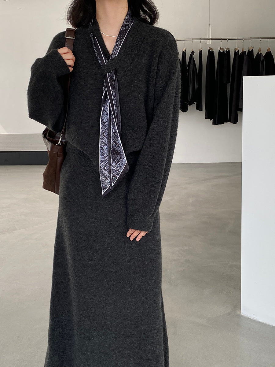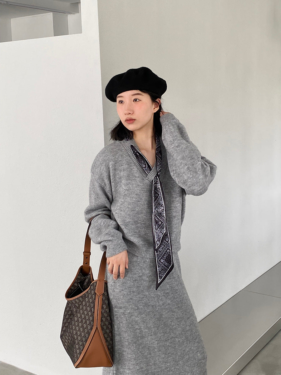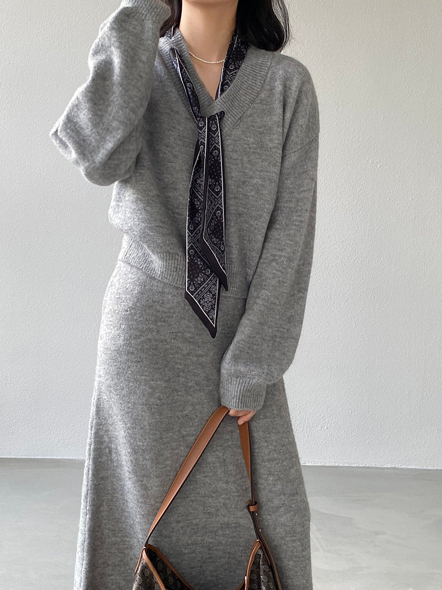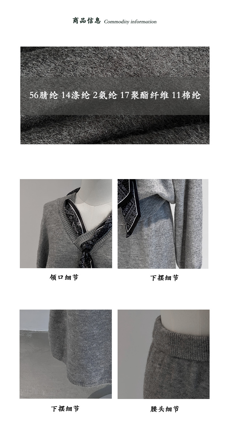 【cim823】實拍韓系軟糯短版針織毛衣+絲巾+針織長裙251030
