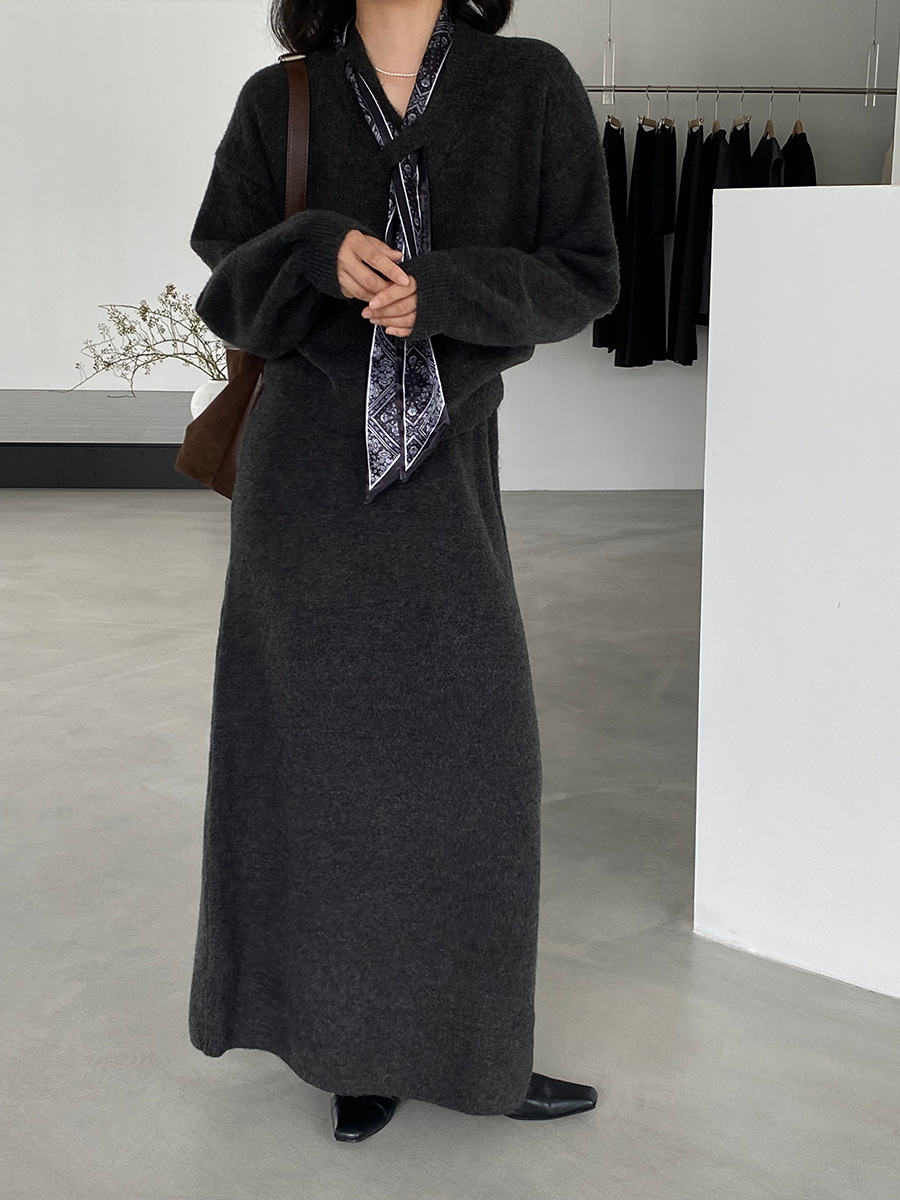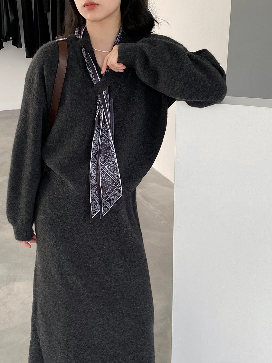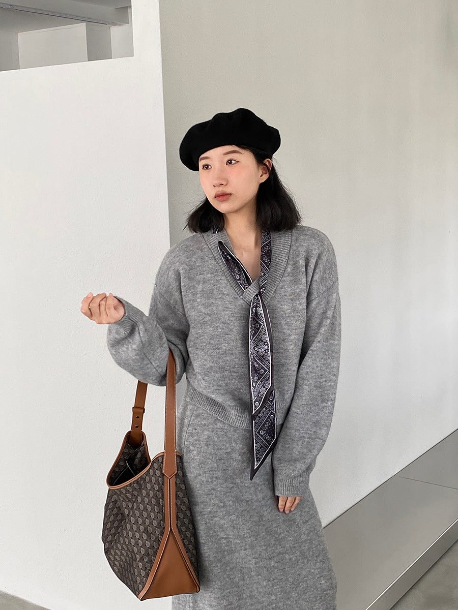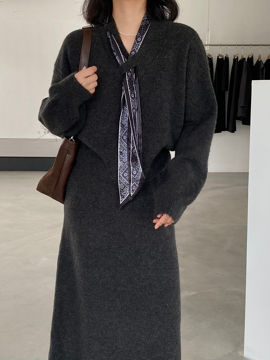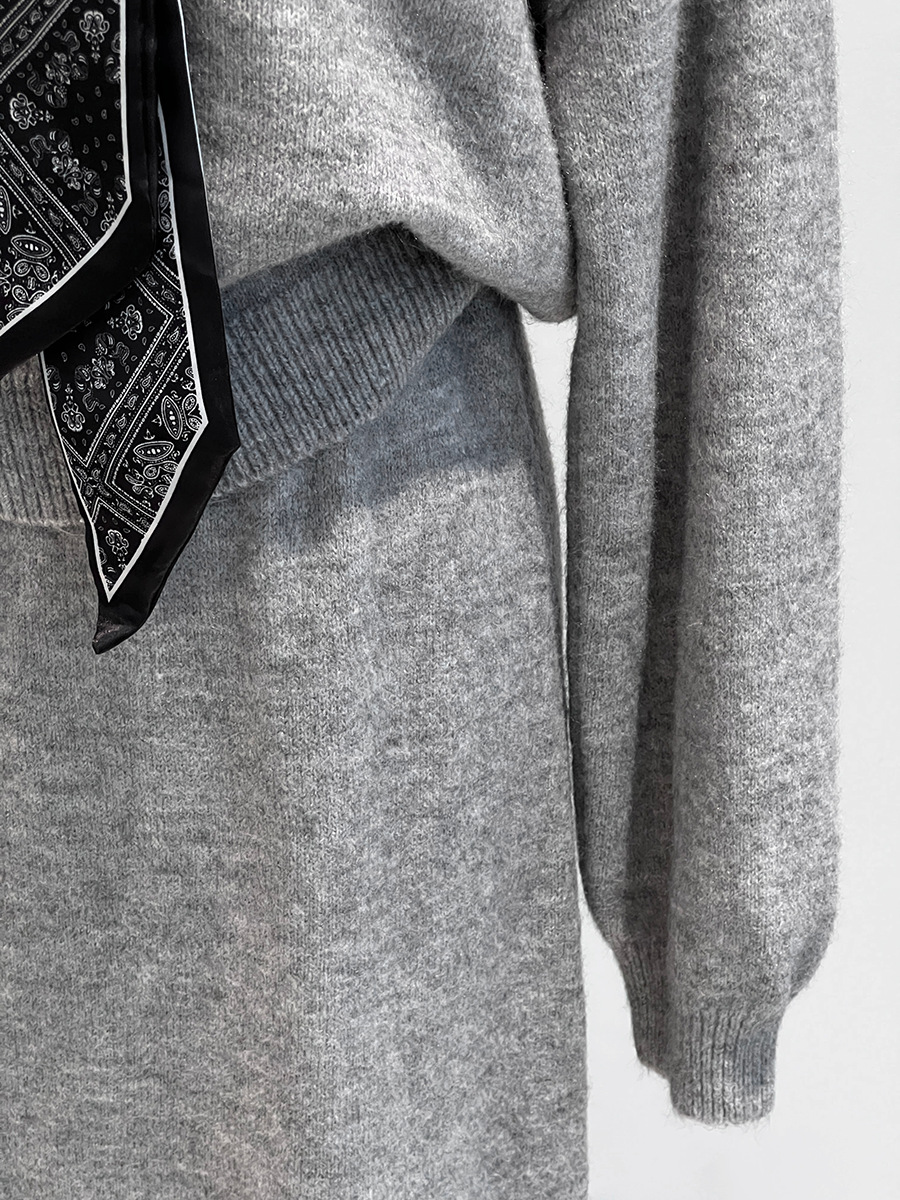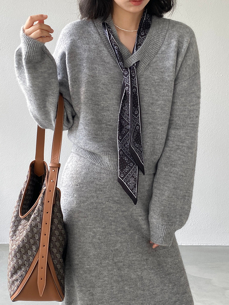 【cim823】實拍韓系軟糯短版針織毛衣+絲巾+針織長裙251030