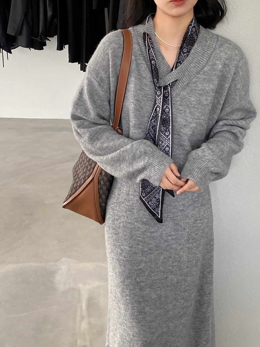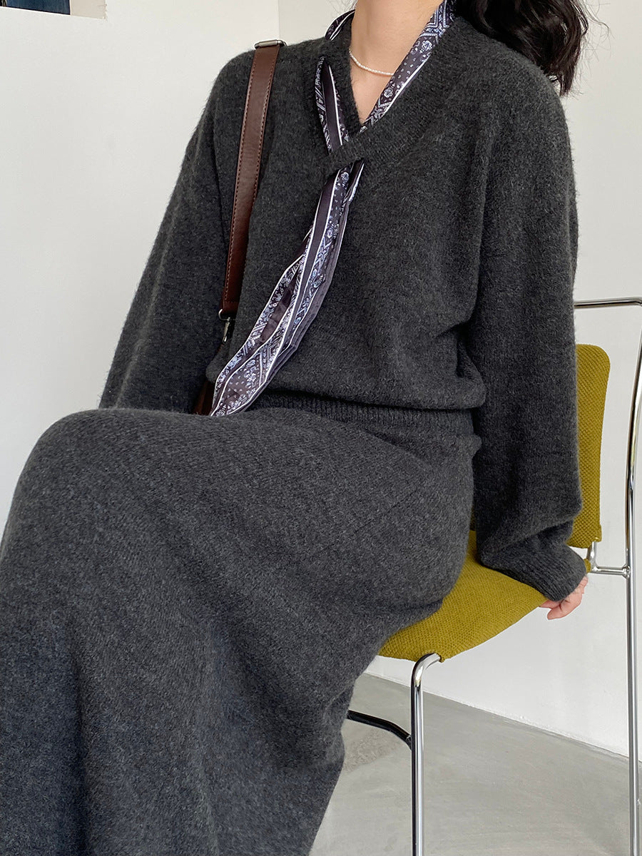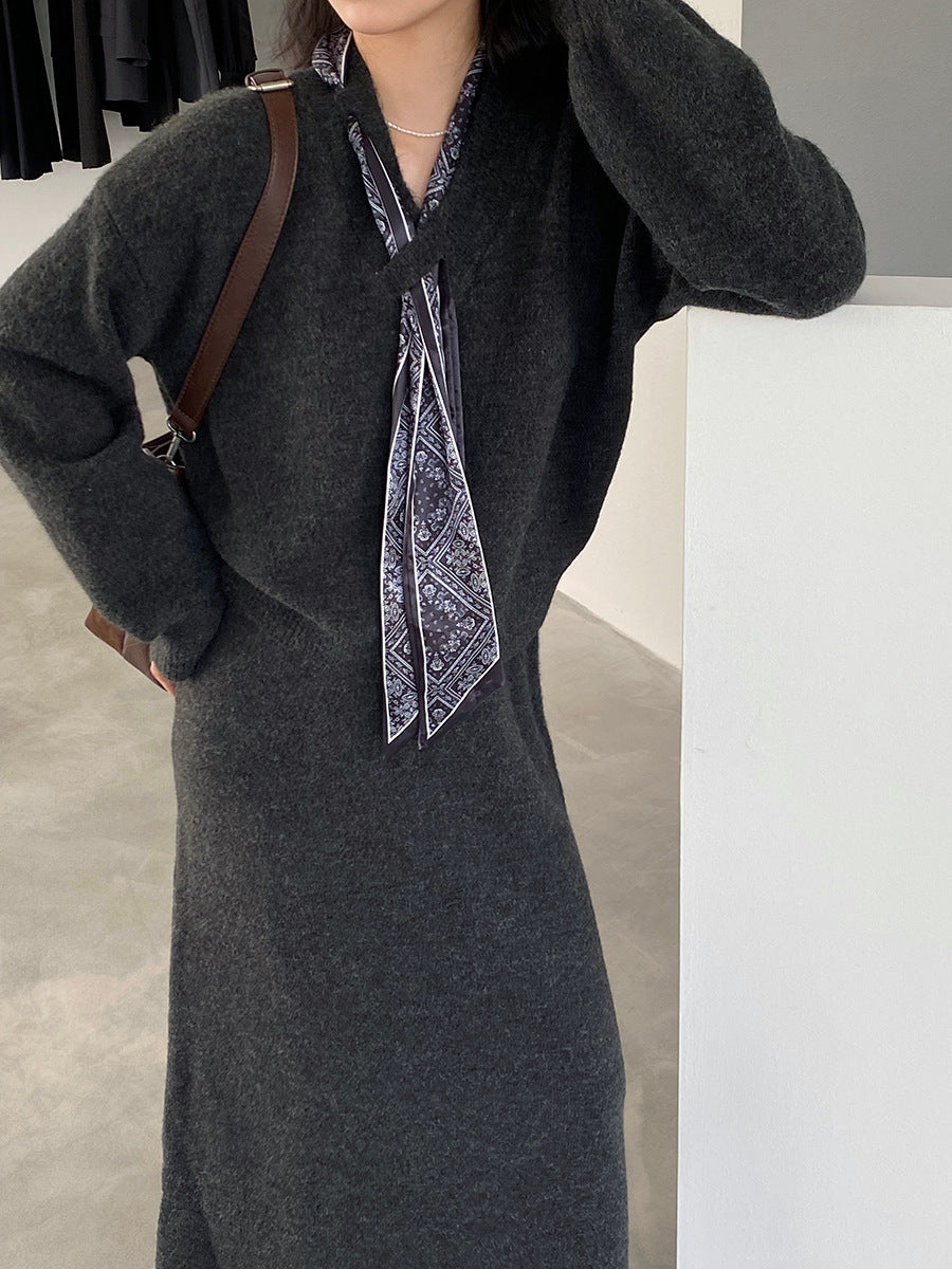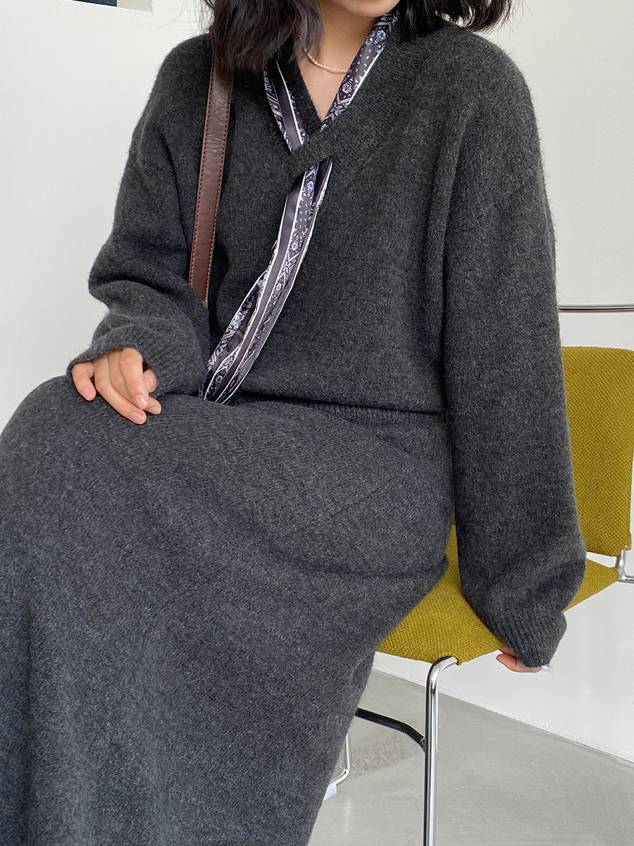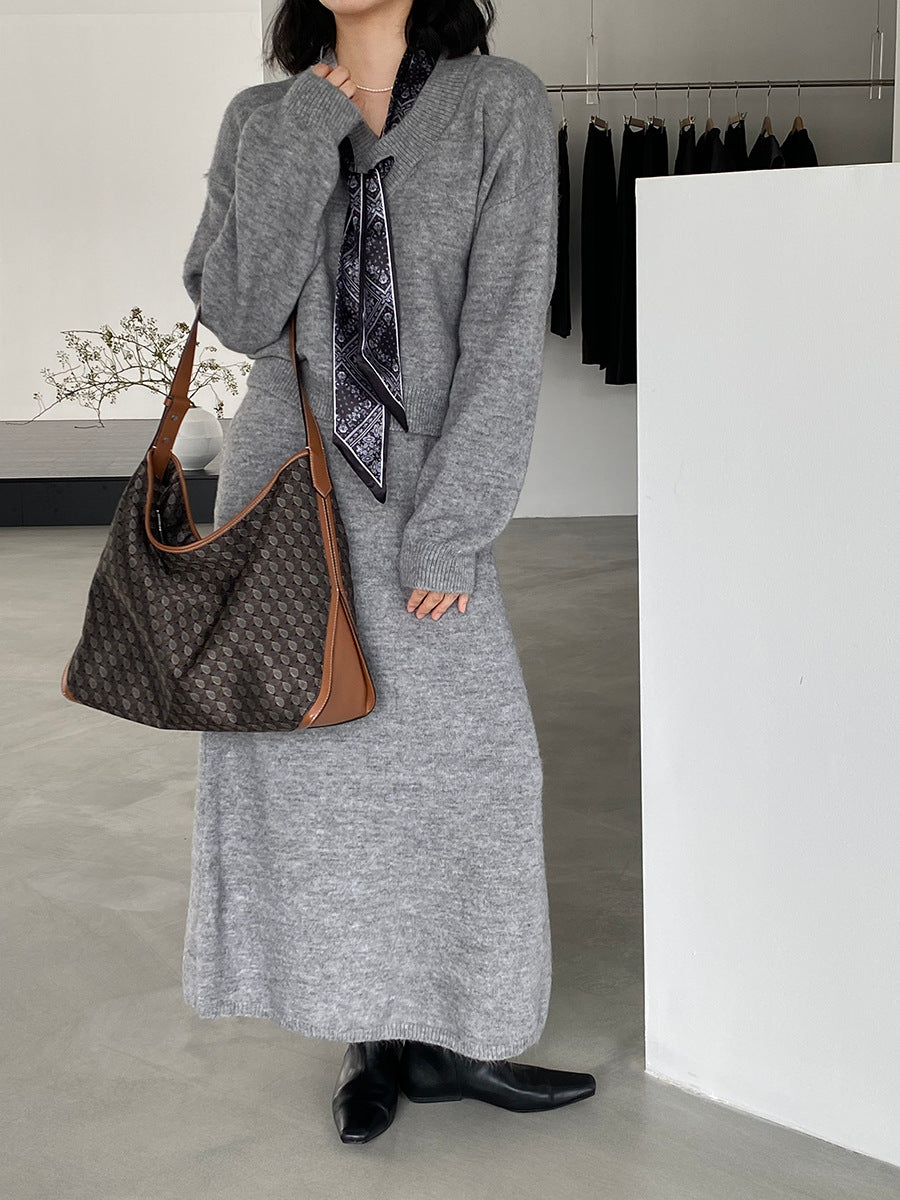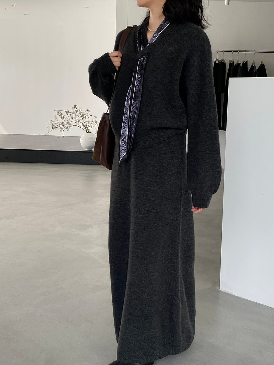 【cim823】實拍韓系軟糯短版針織毛衣+絲巾+針織長裙251030