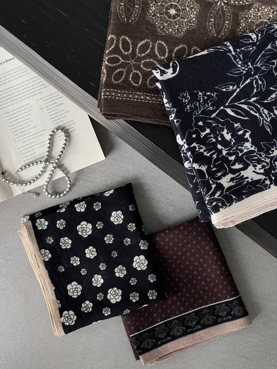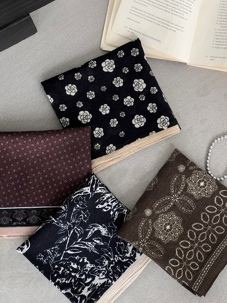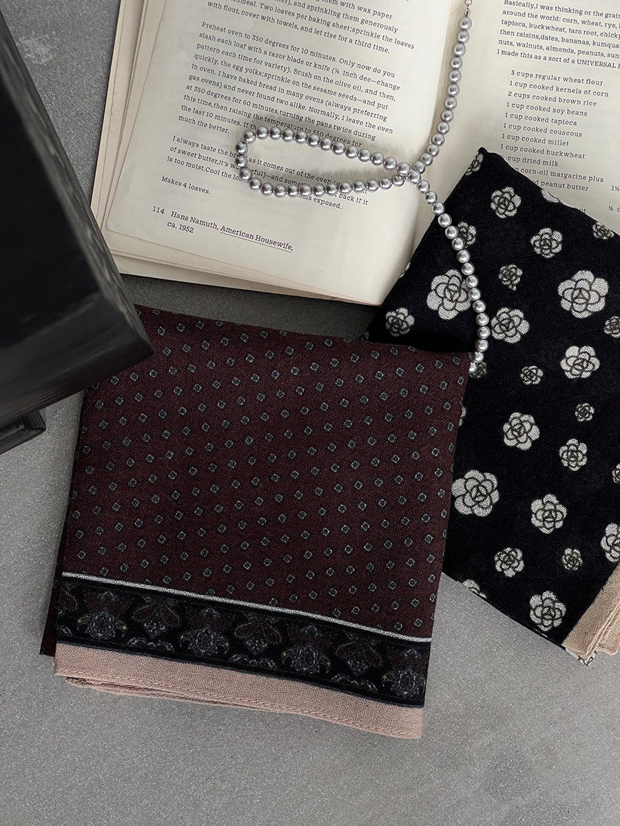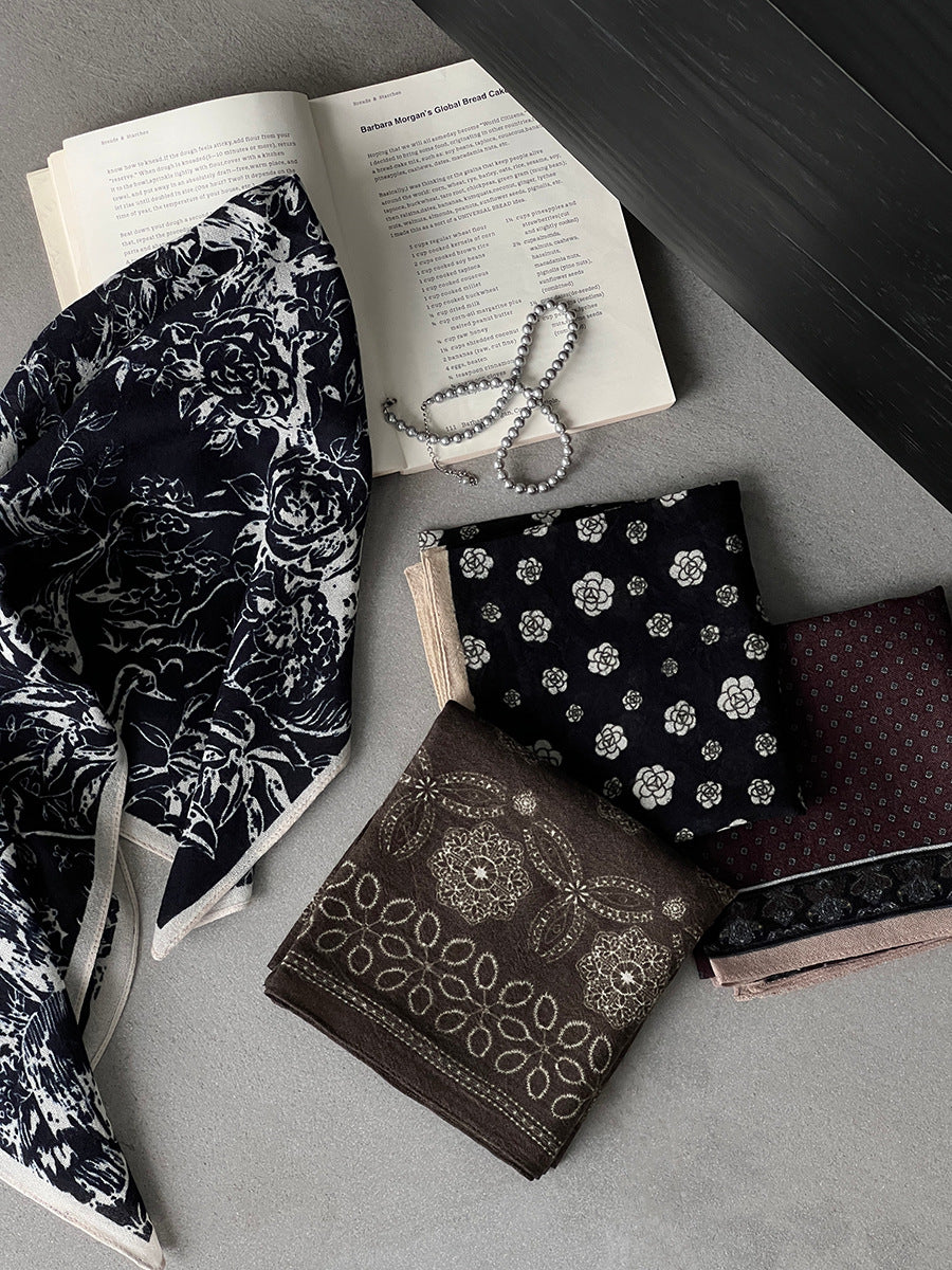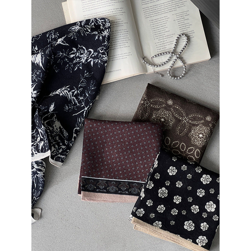 【cim865】實拍黑標100綿羊毛復古山茶花小方巾法式頭巾圍巾 251030