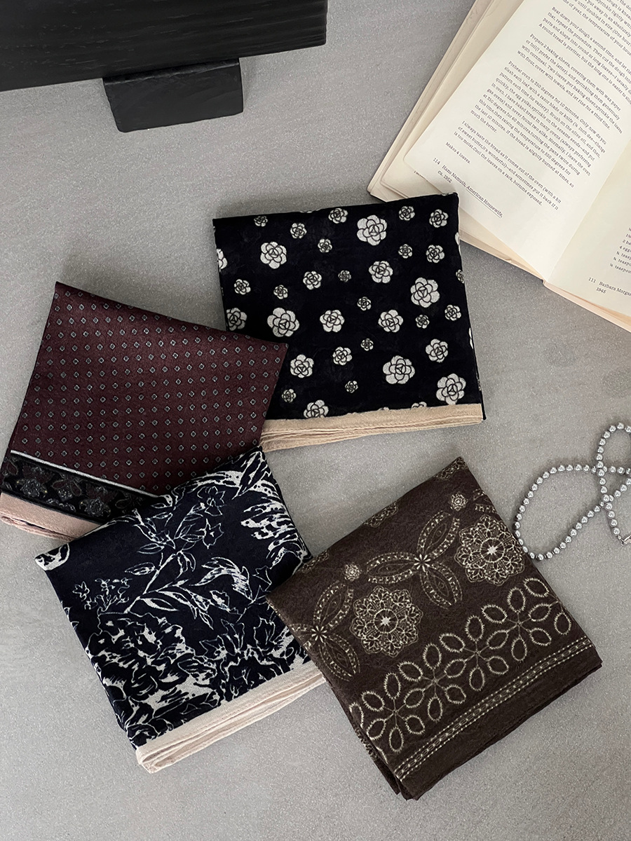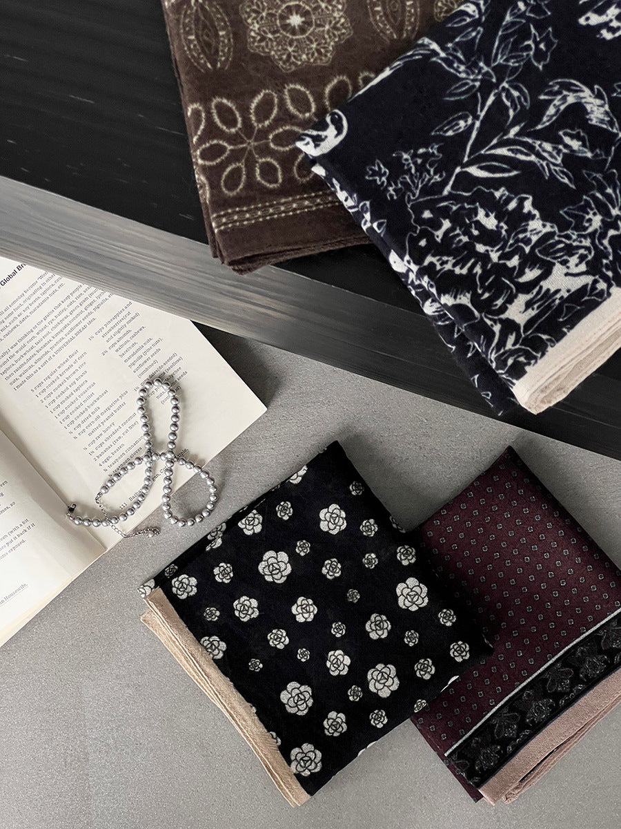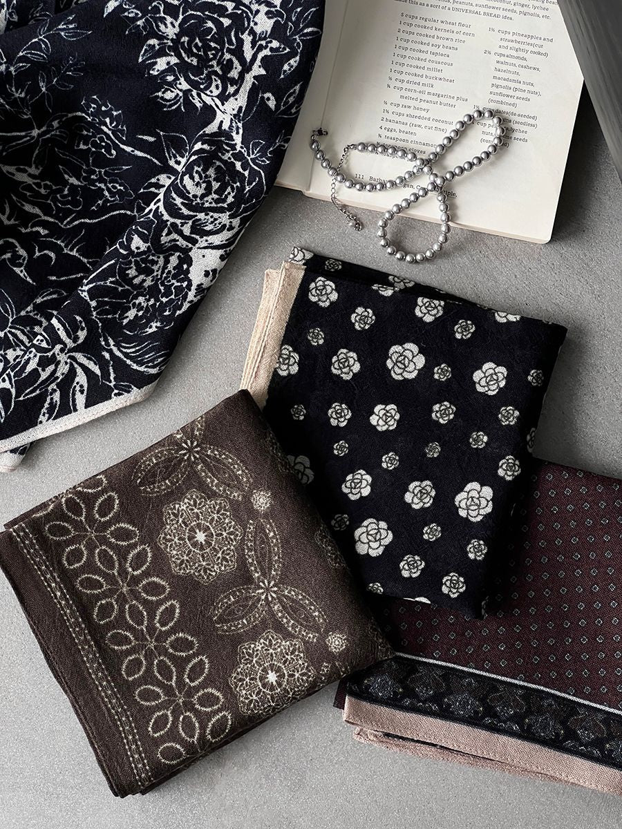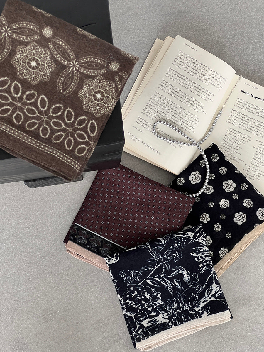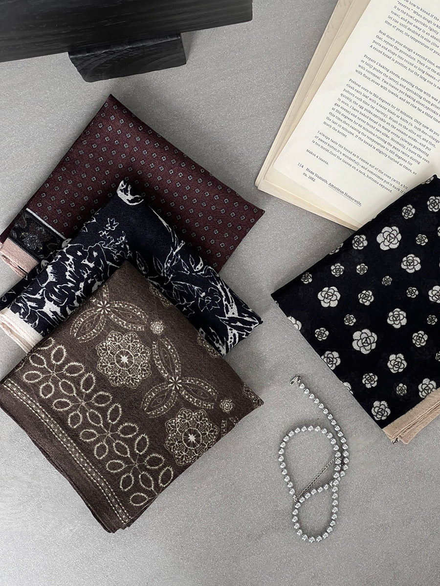 【cim865】實拍黑標100綿羊毛復古山茶花小方巾法式頭巾圍巾 251030
