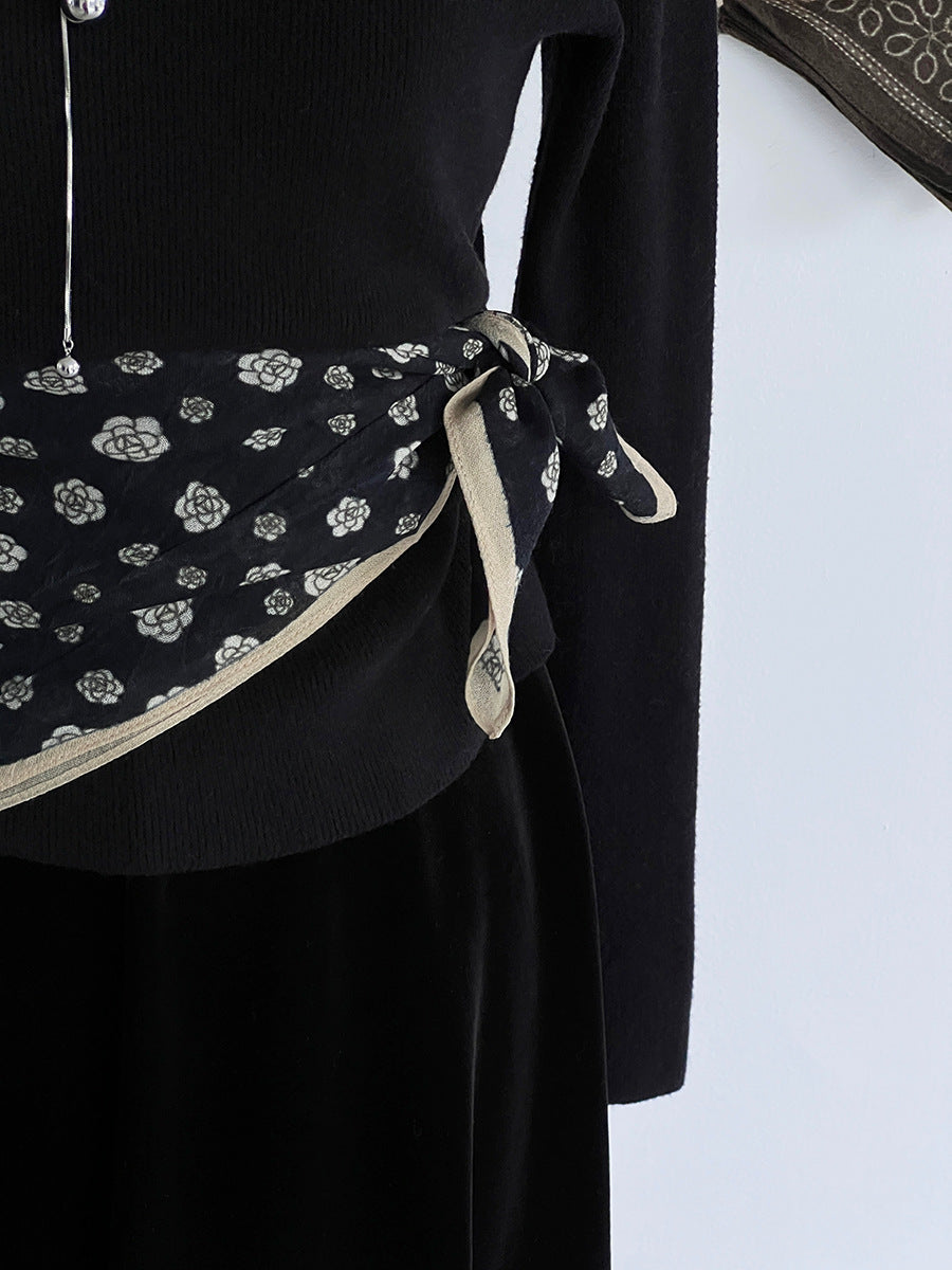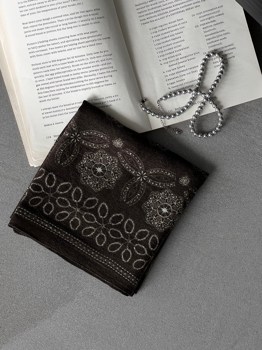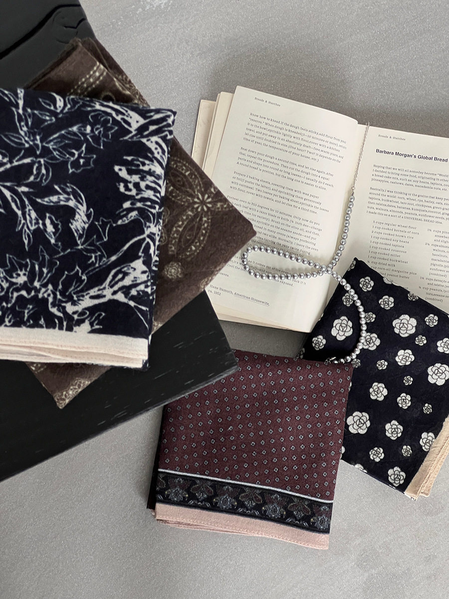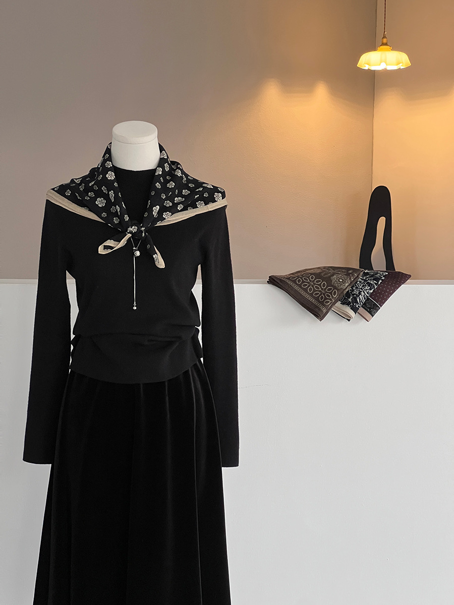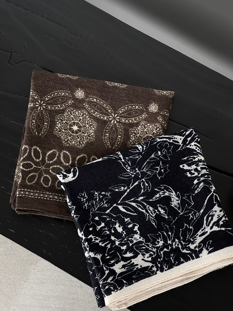 【cim865】實拍黑標100綿羊毛復古山茶花小方巾法式頭巾圍巾 251030