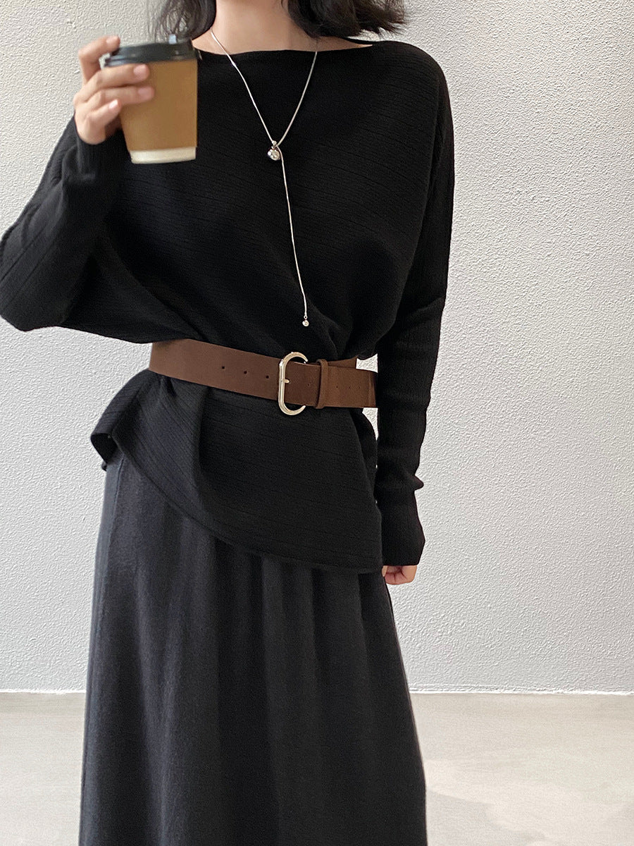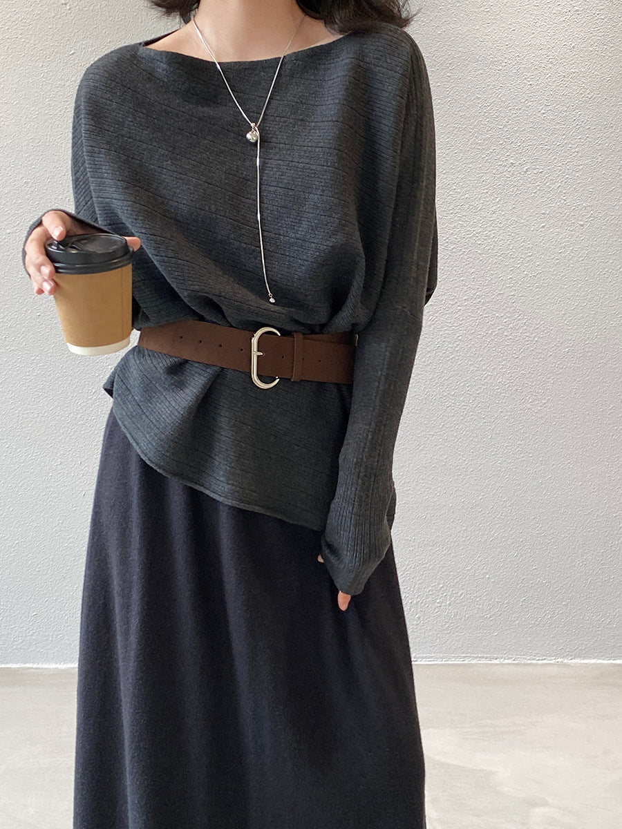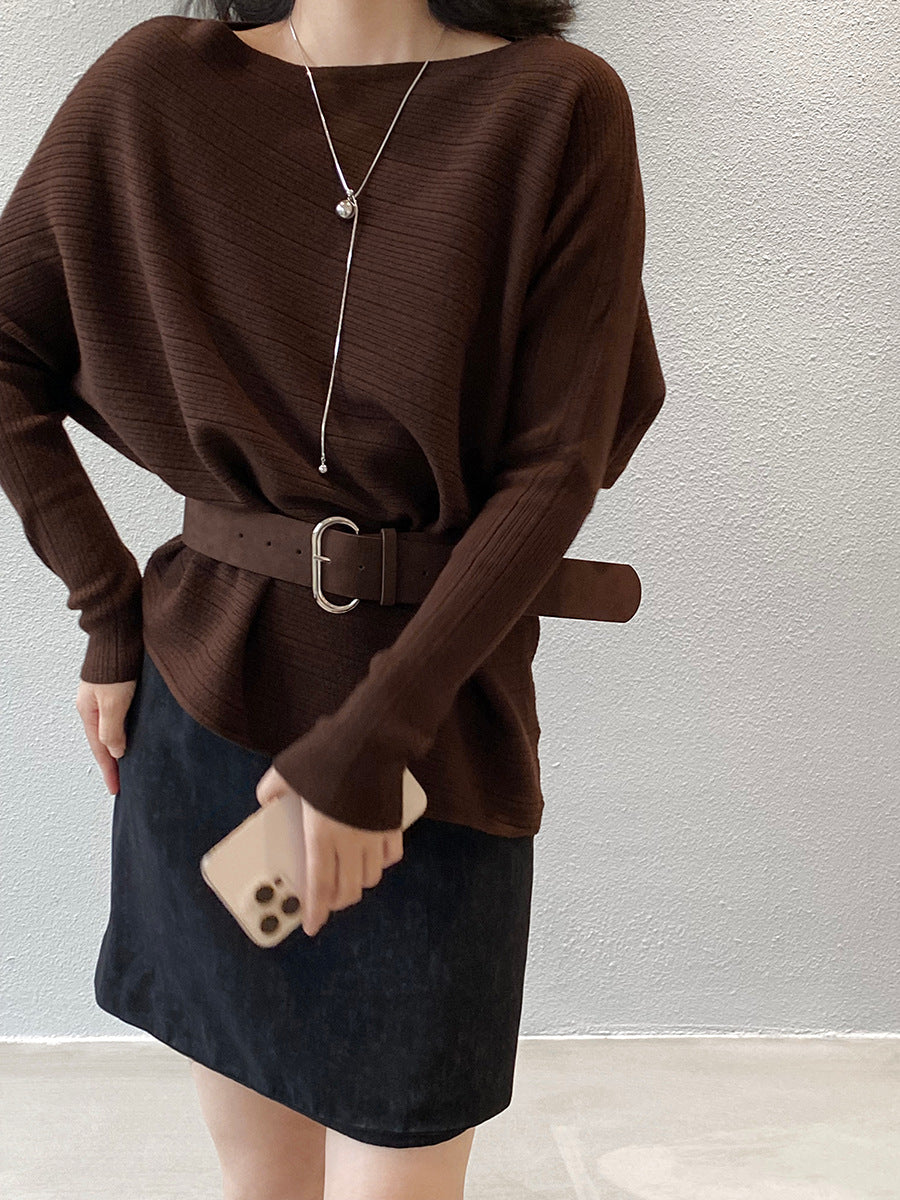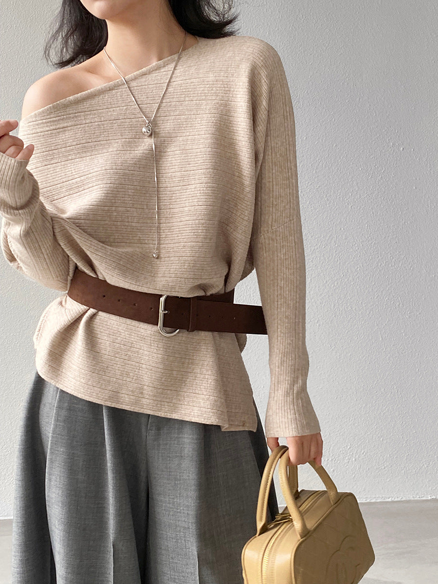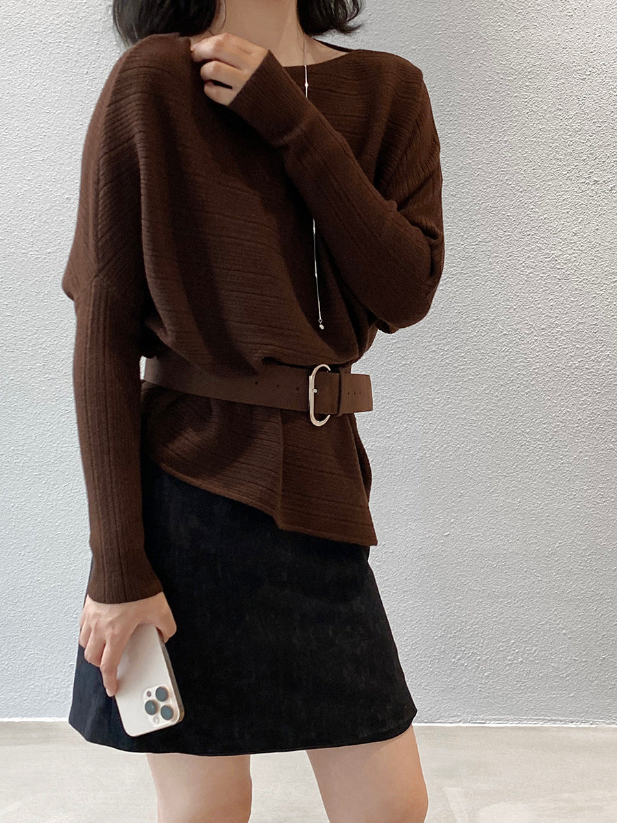 【cim9033】實拍韓系高級感長袖斜肩針織衫+腰帶251030