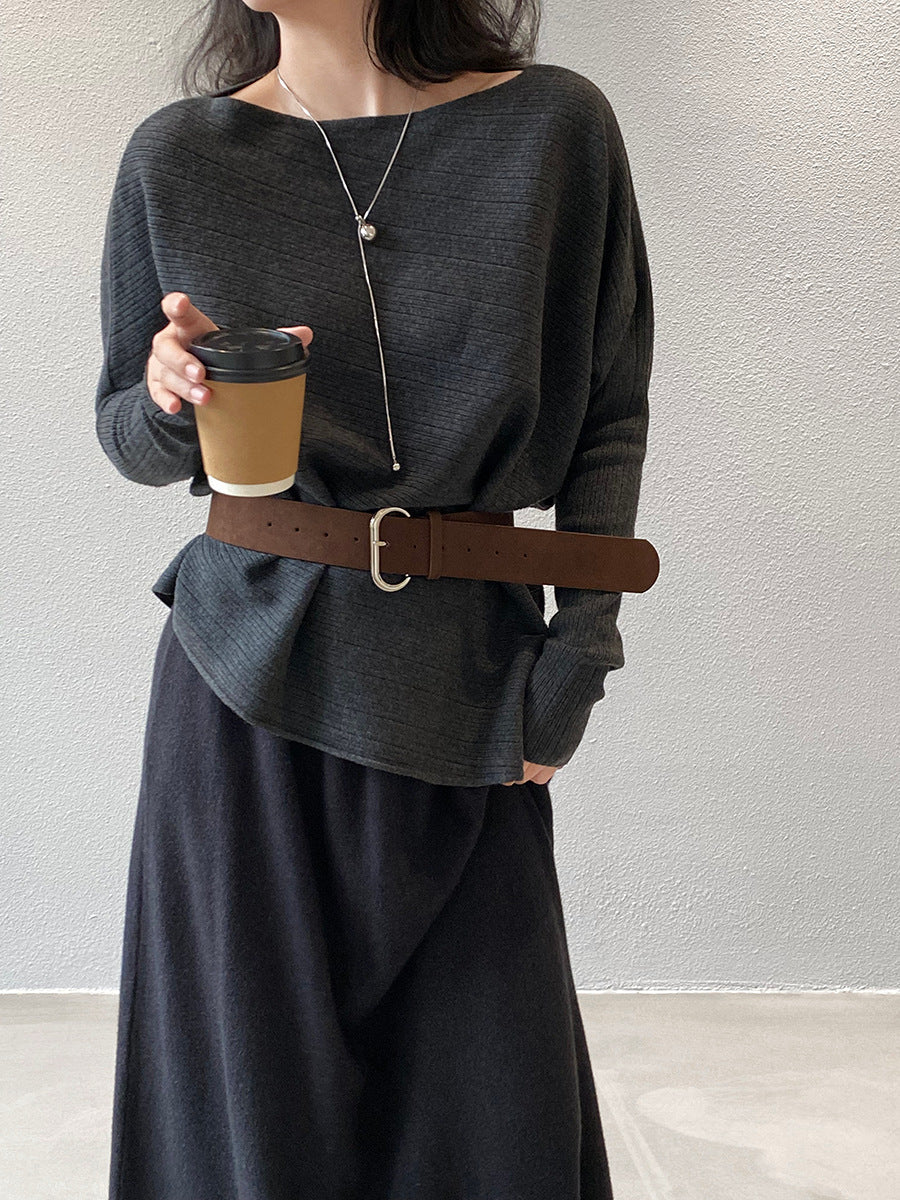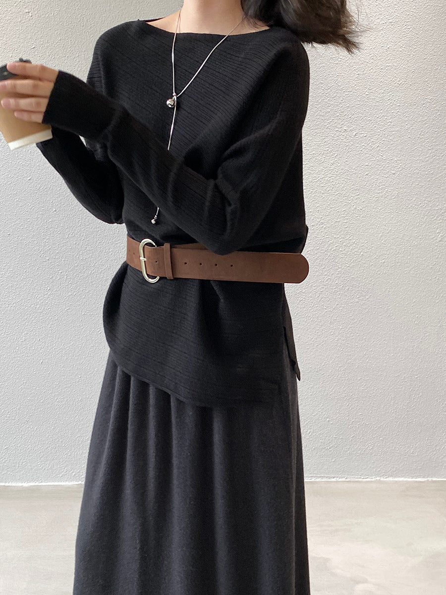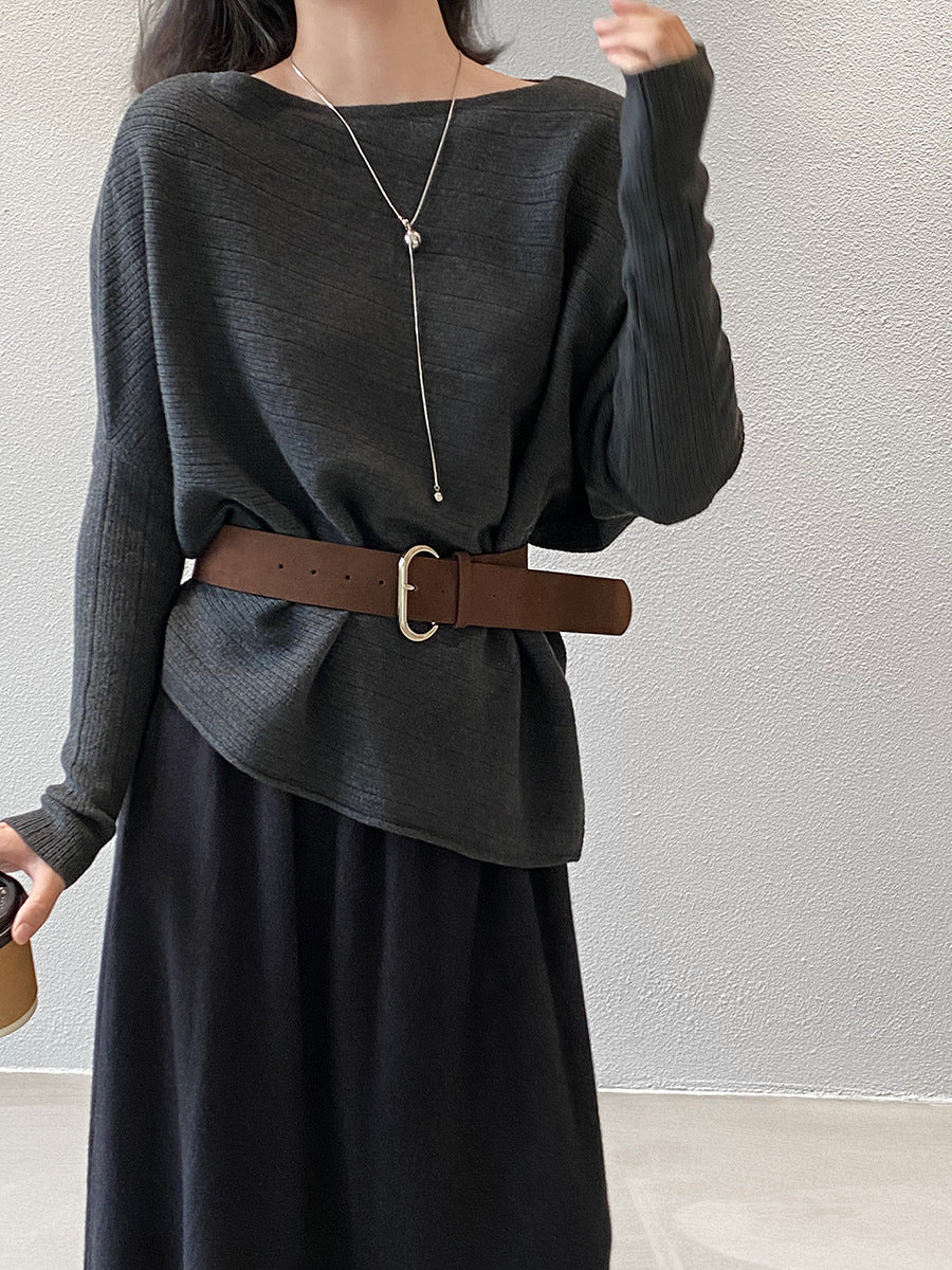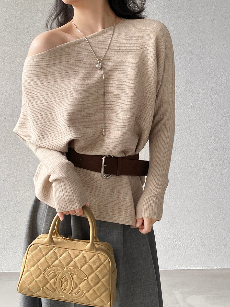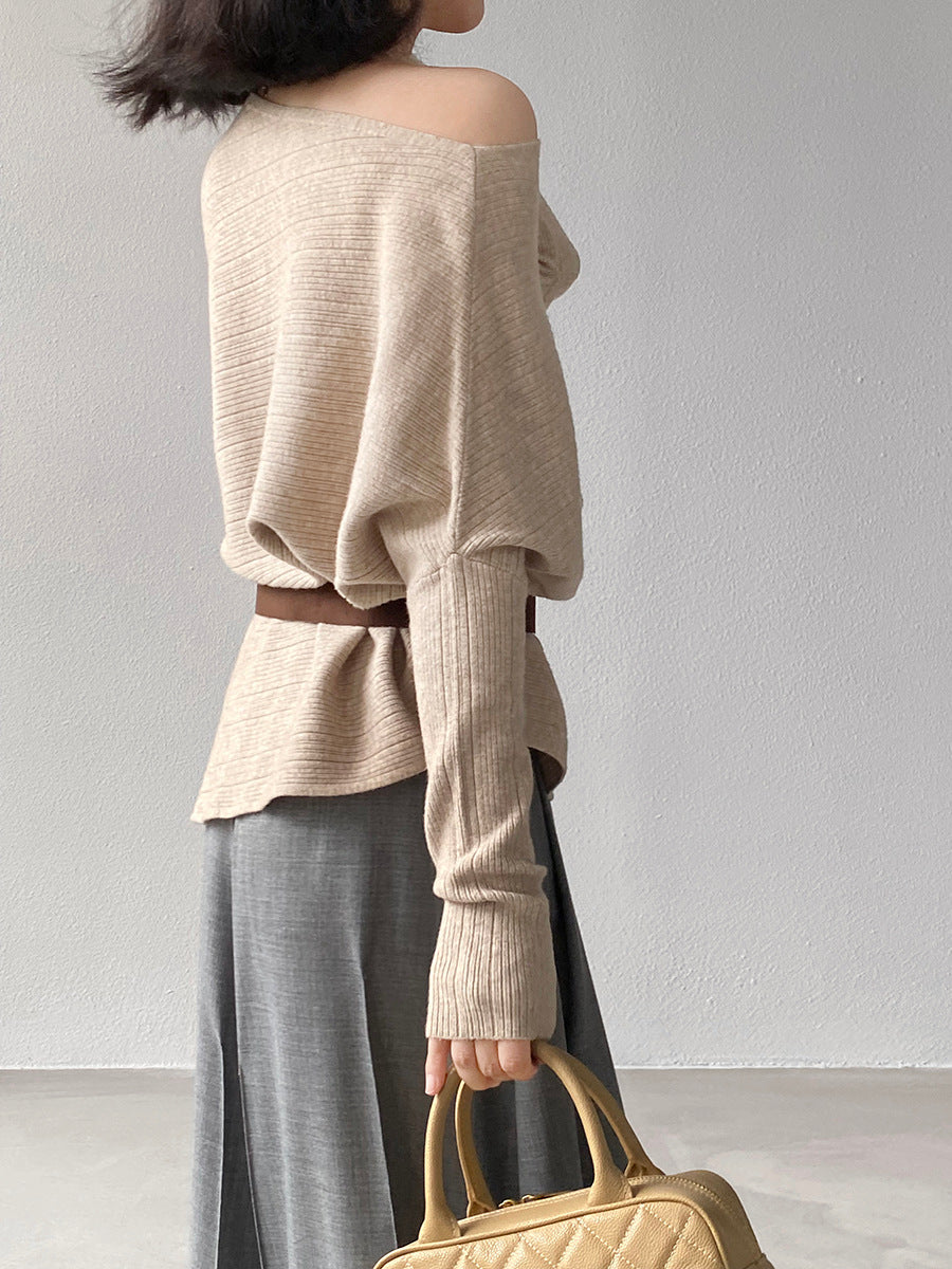 【cim9033】實拍韓系高級感長袖斜肩針織衫+腰帶251030