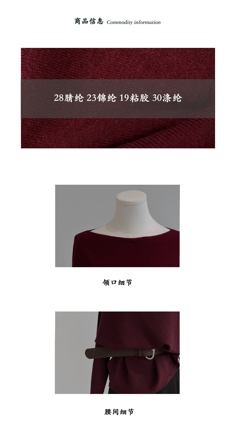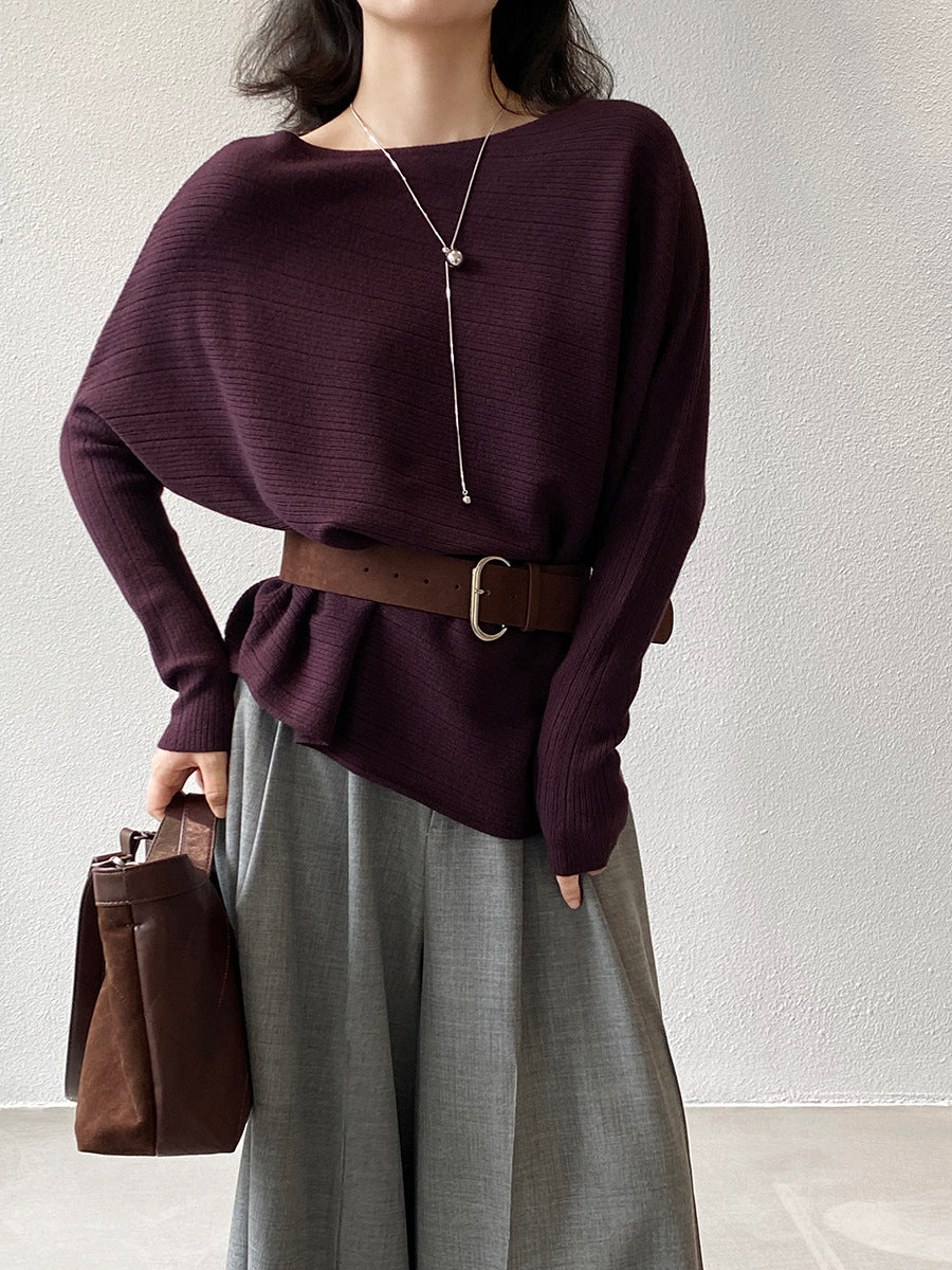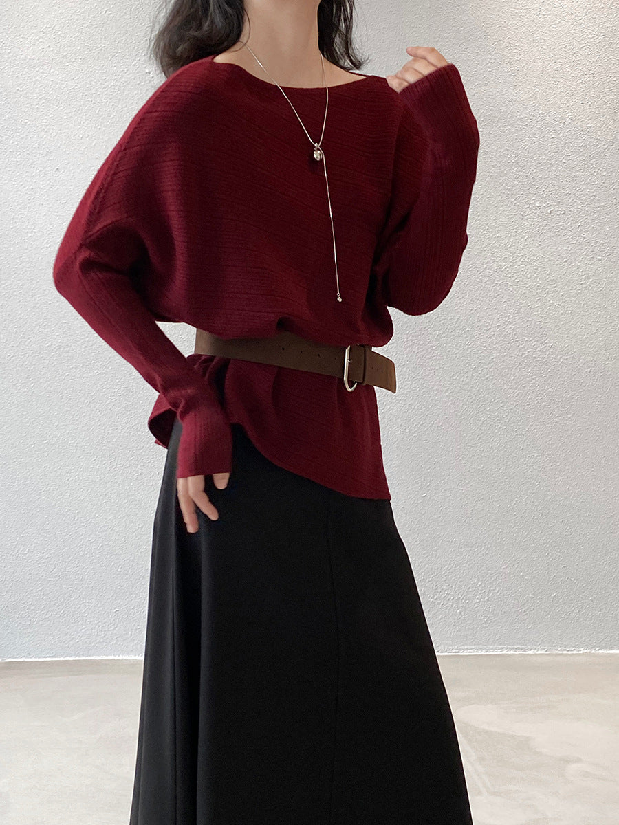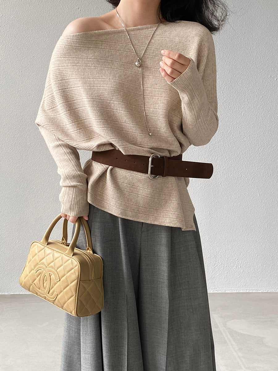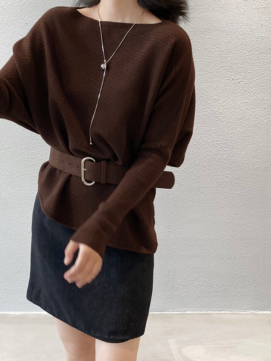 【cim9033】實拍韓系高級感長袖斜肩針織衫+腰帶251030