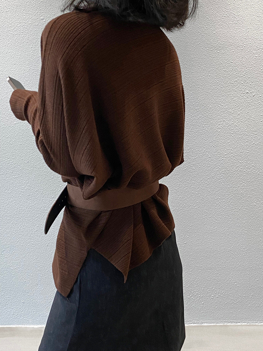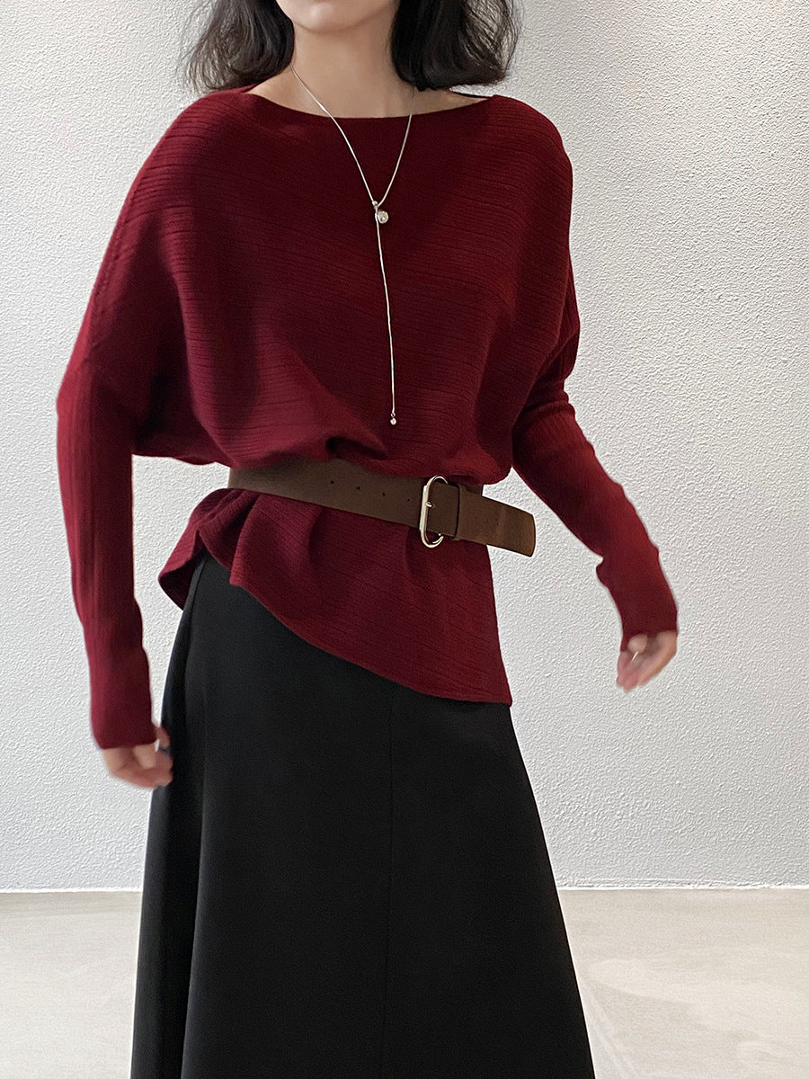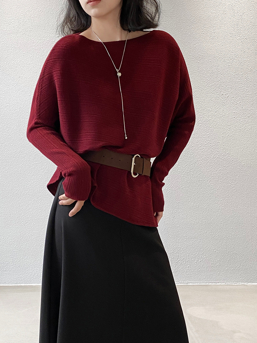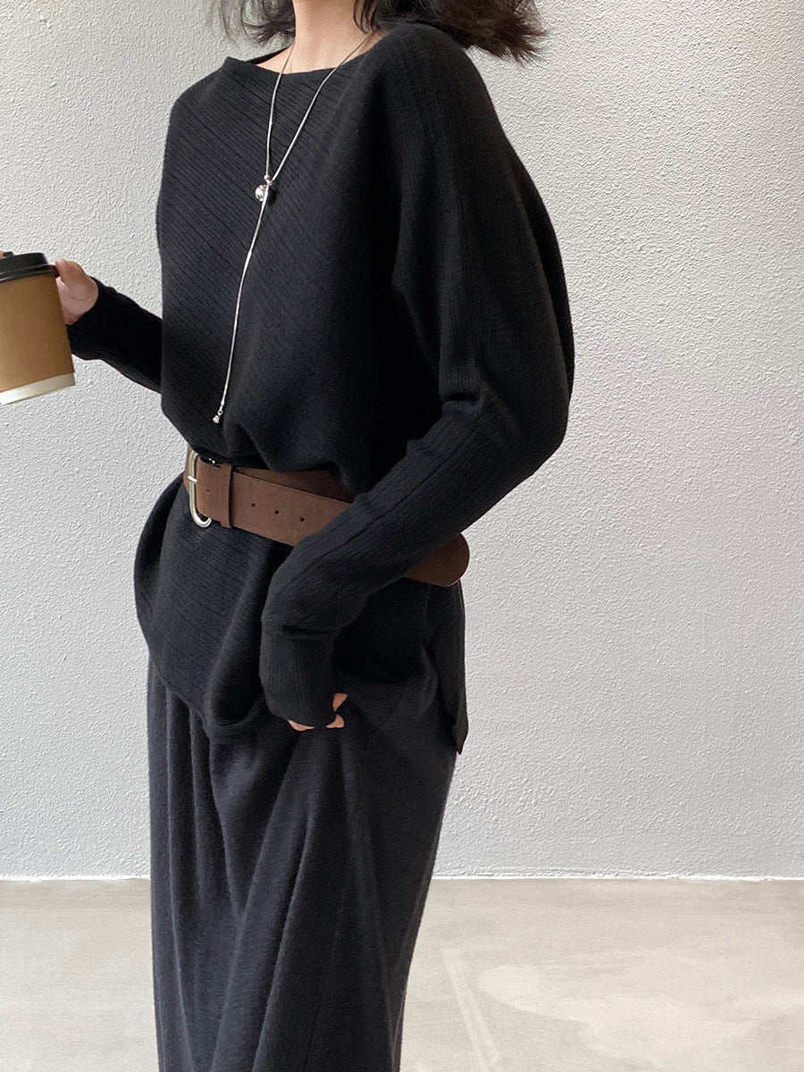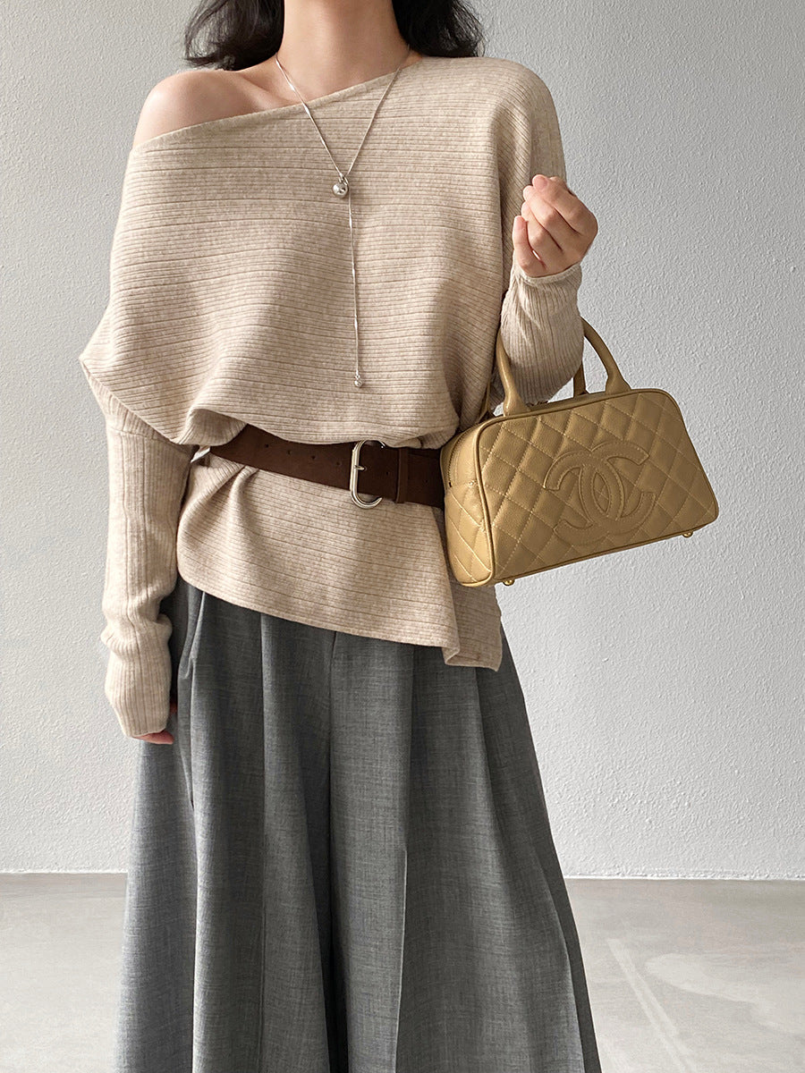 【cim9033】實拍韓系高級感長袖斜肩針織衫+腰帶251030