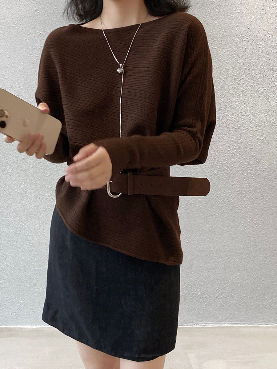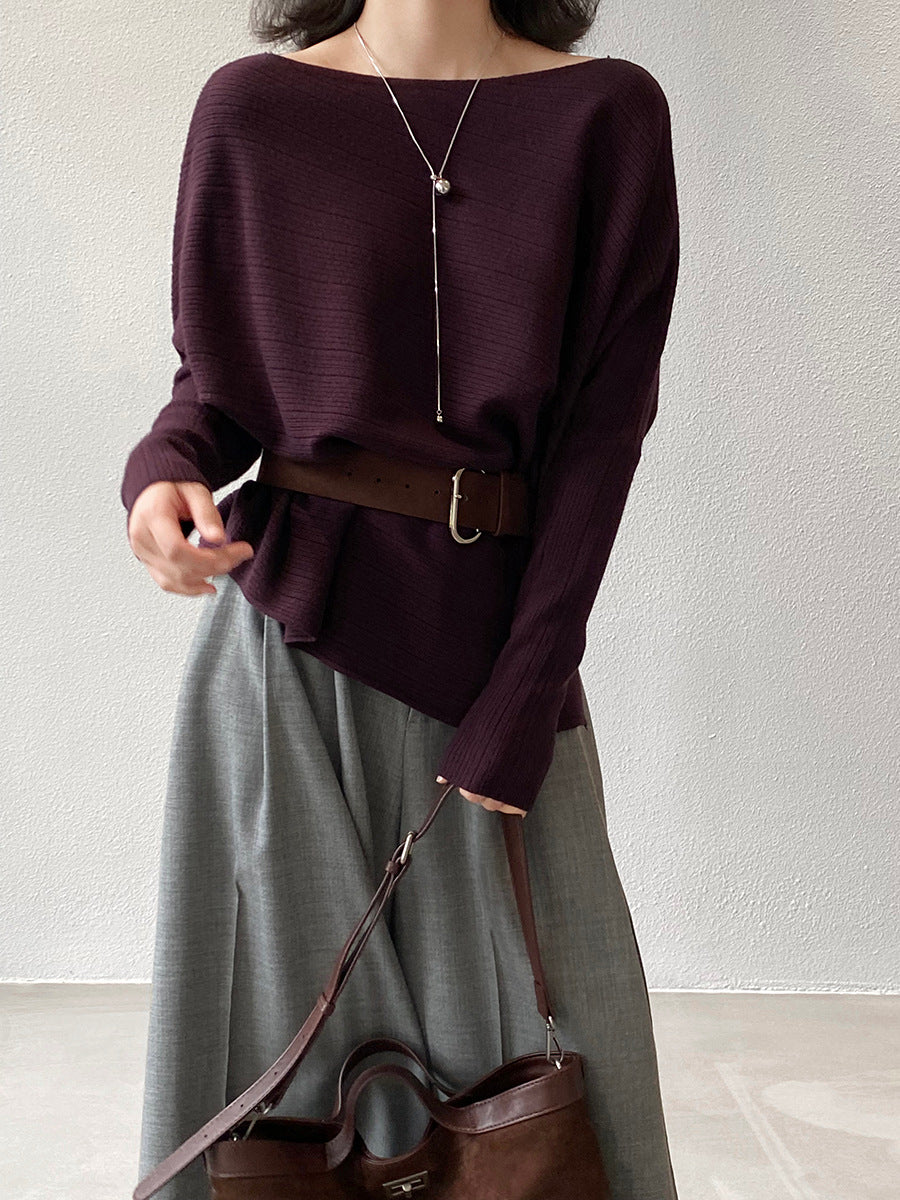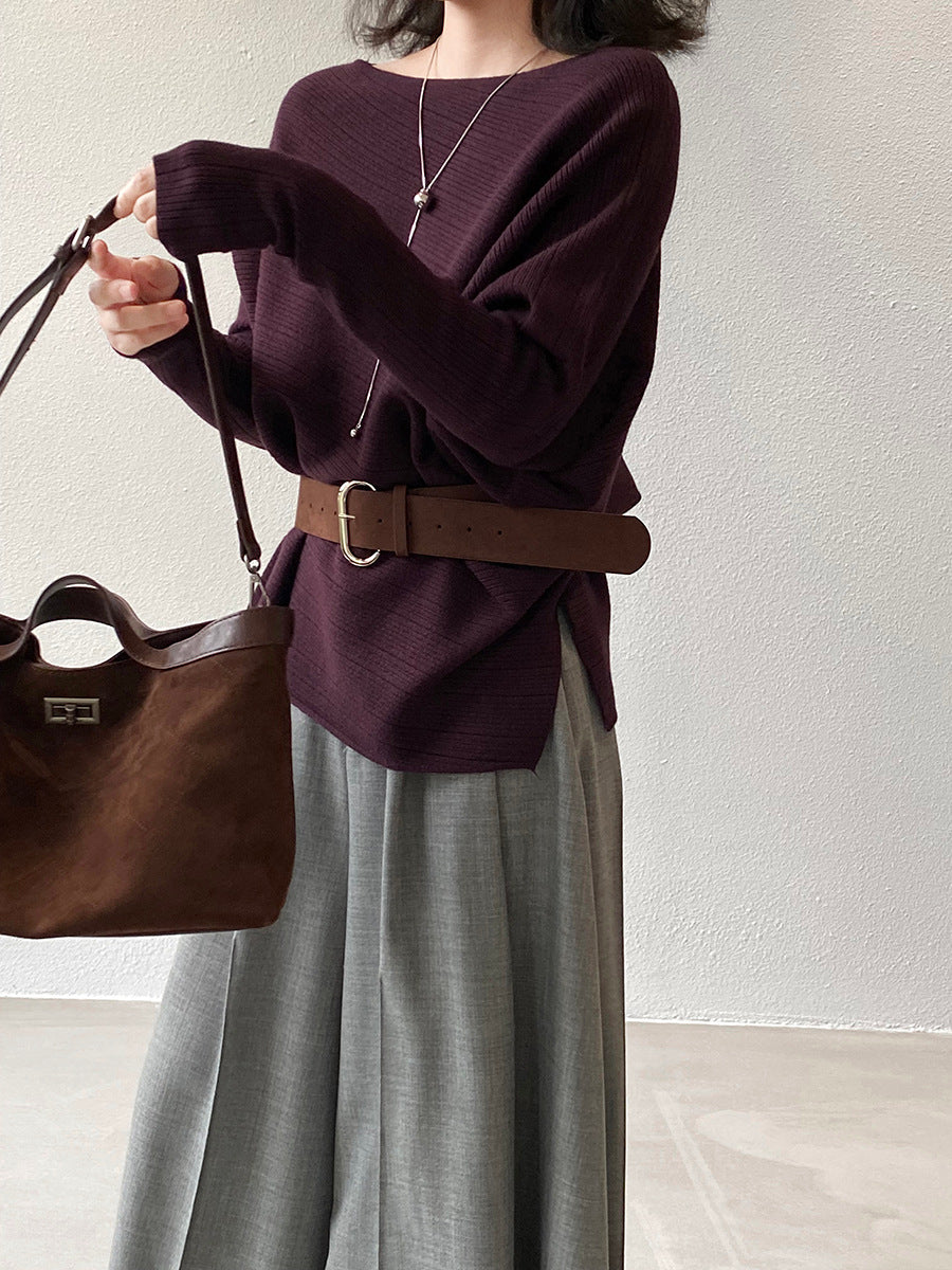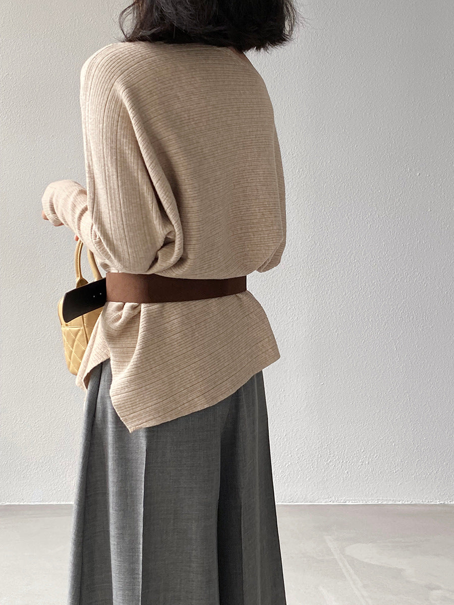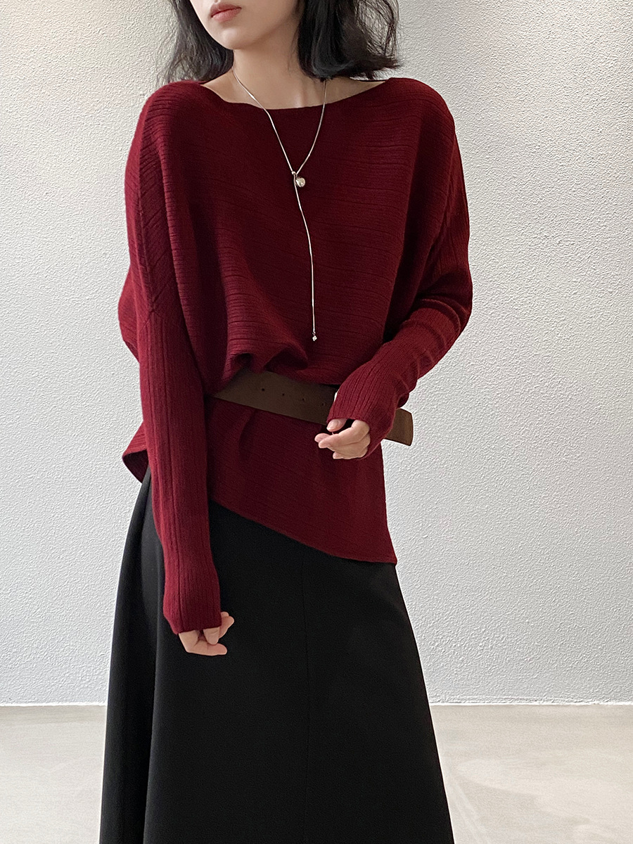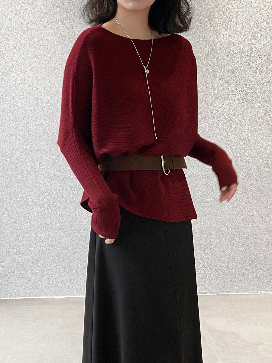 【cim9033】實拍韓系高級感長袖斜肩針織衫+腰帶251030