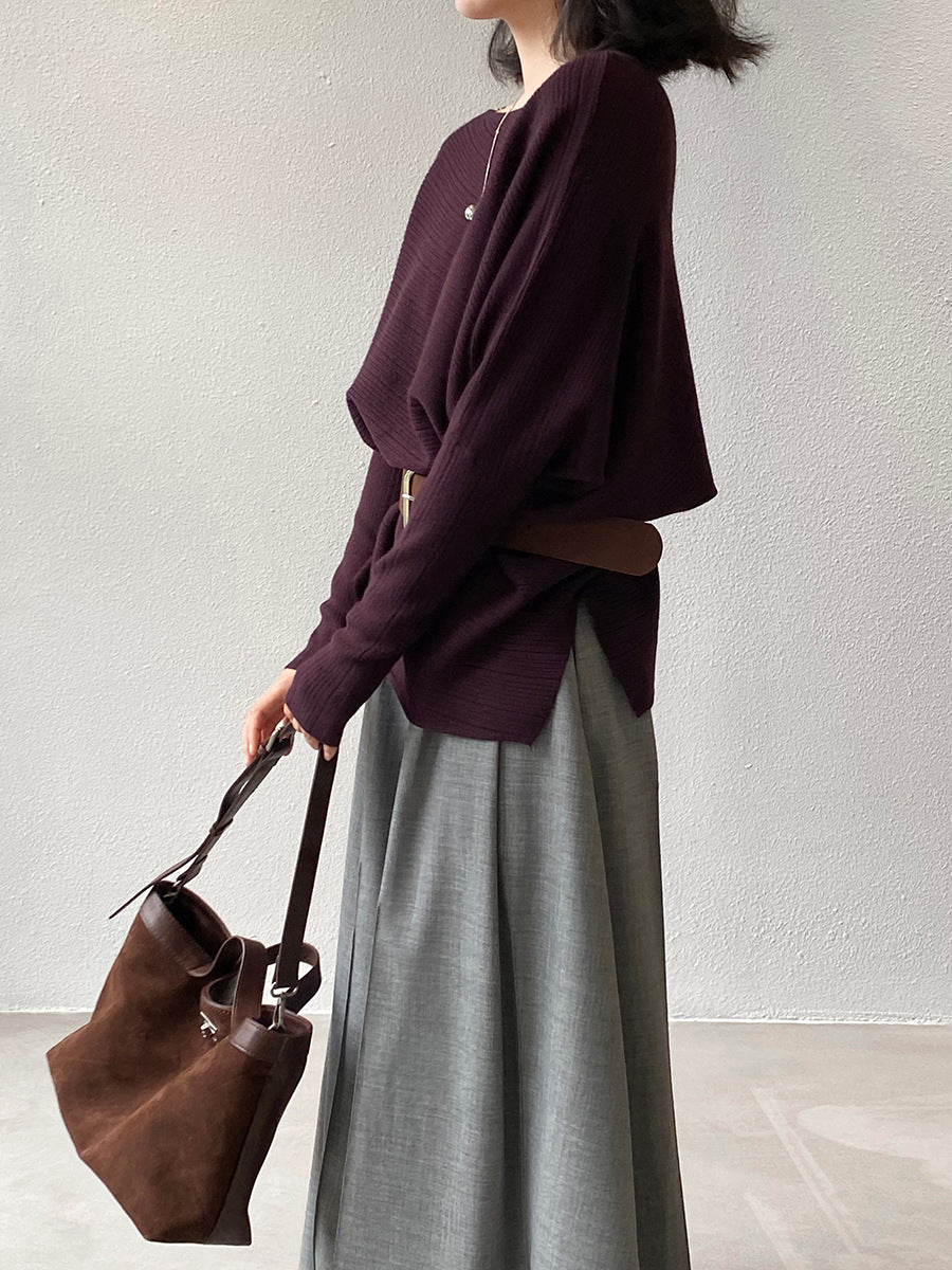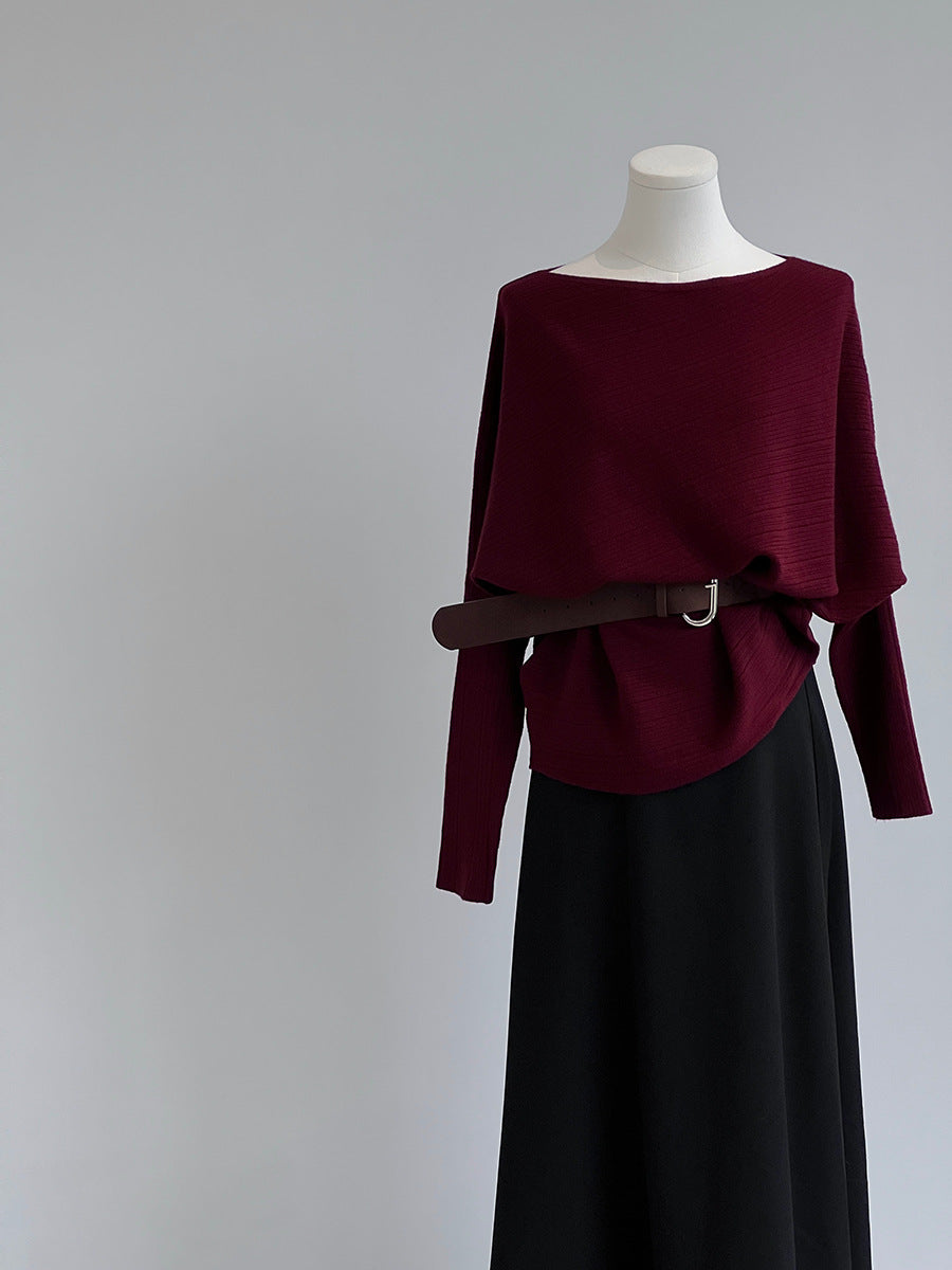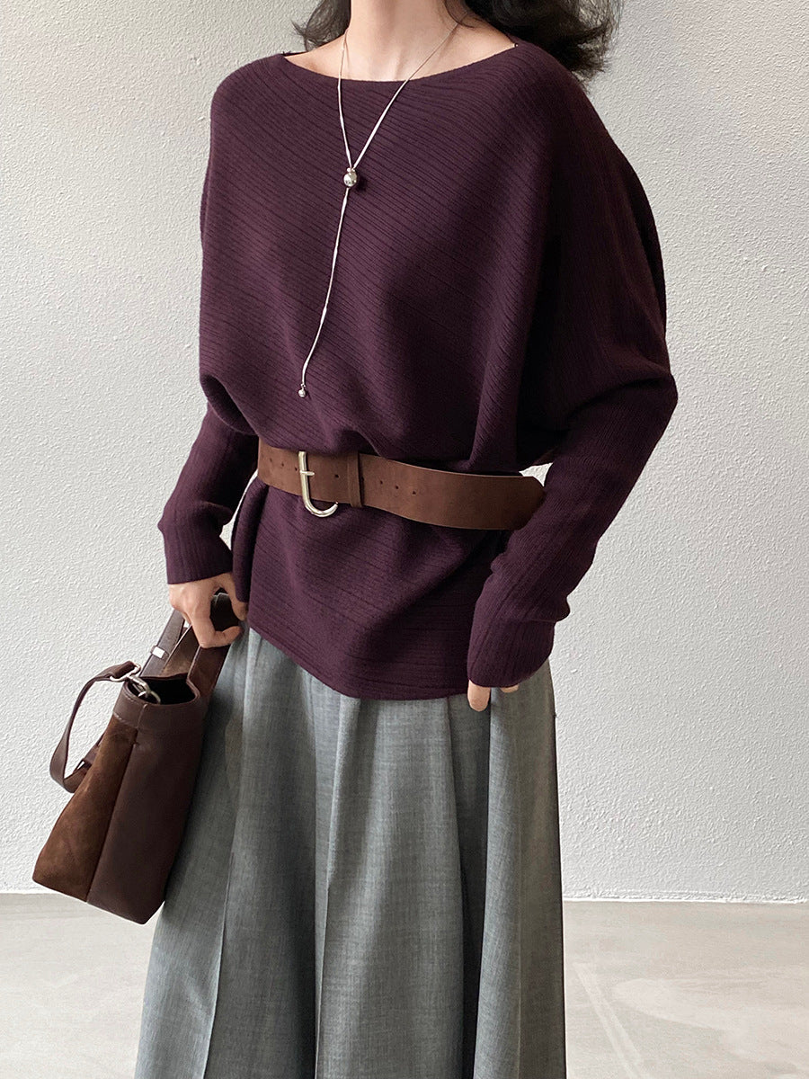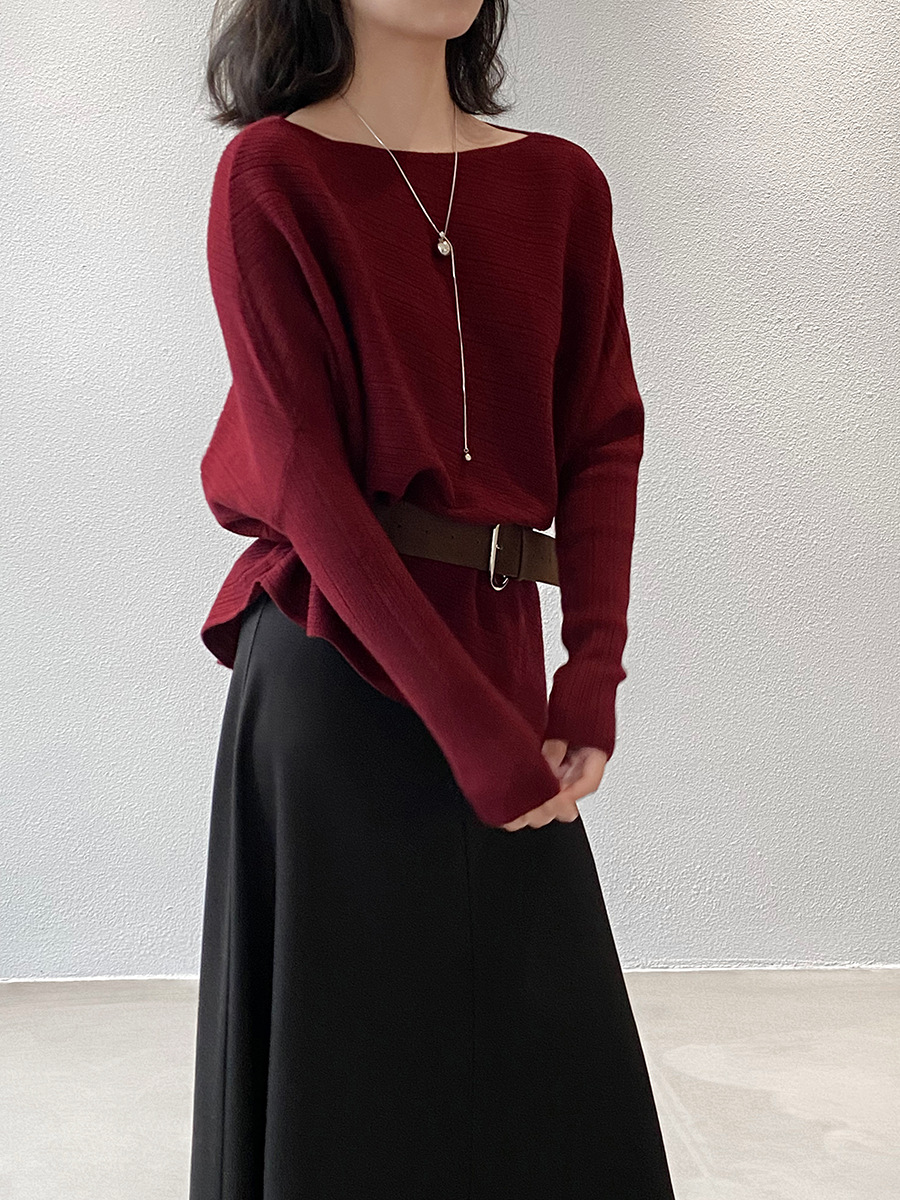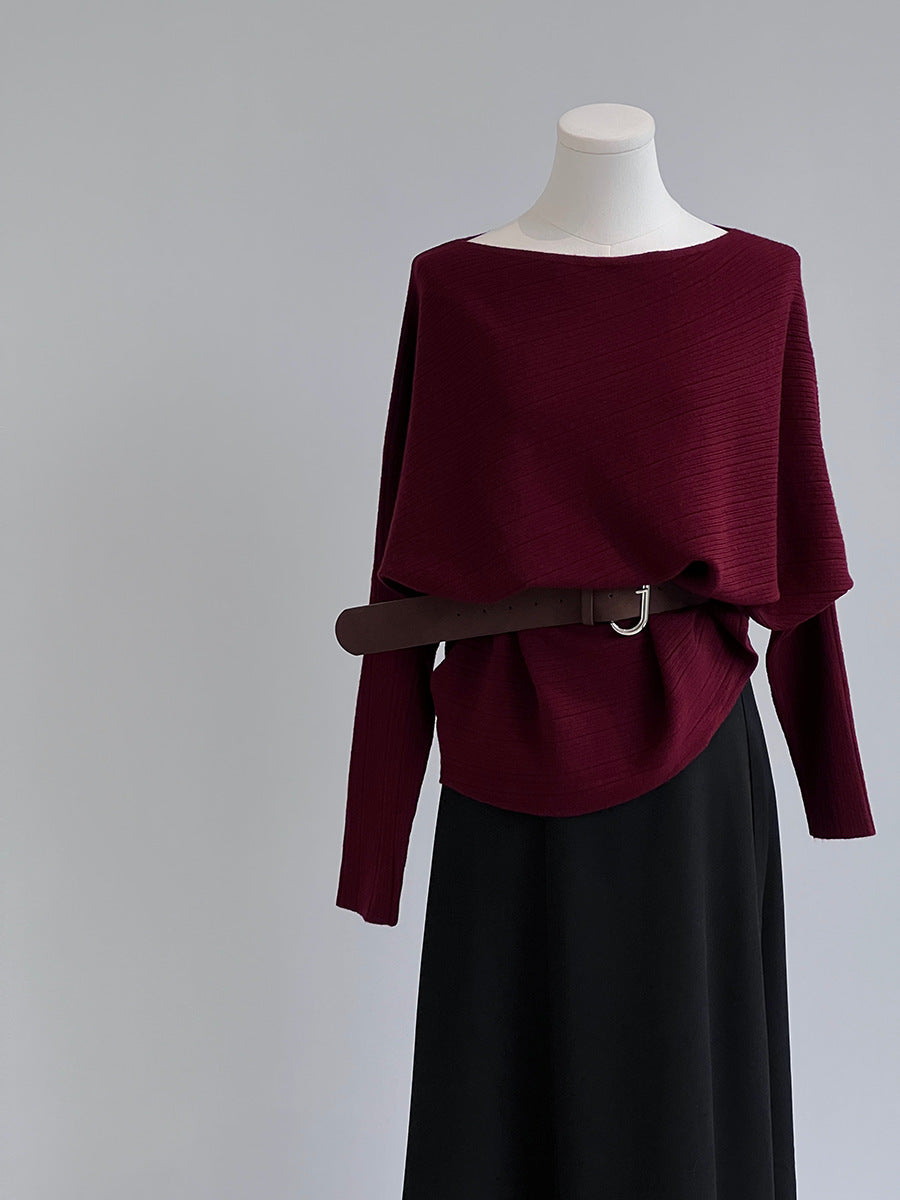 【cim9033】實拍韓系高級感長袖斜肩針織衫+腰帶251030