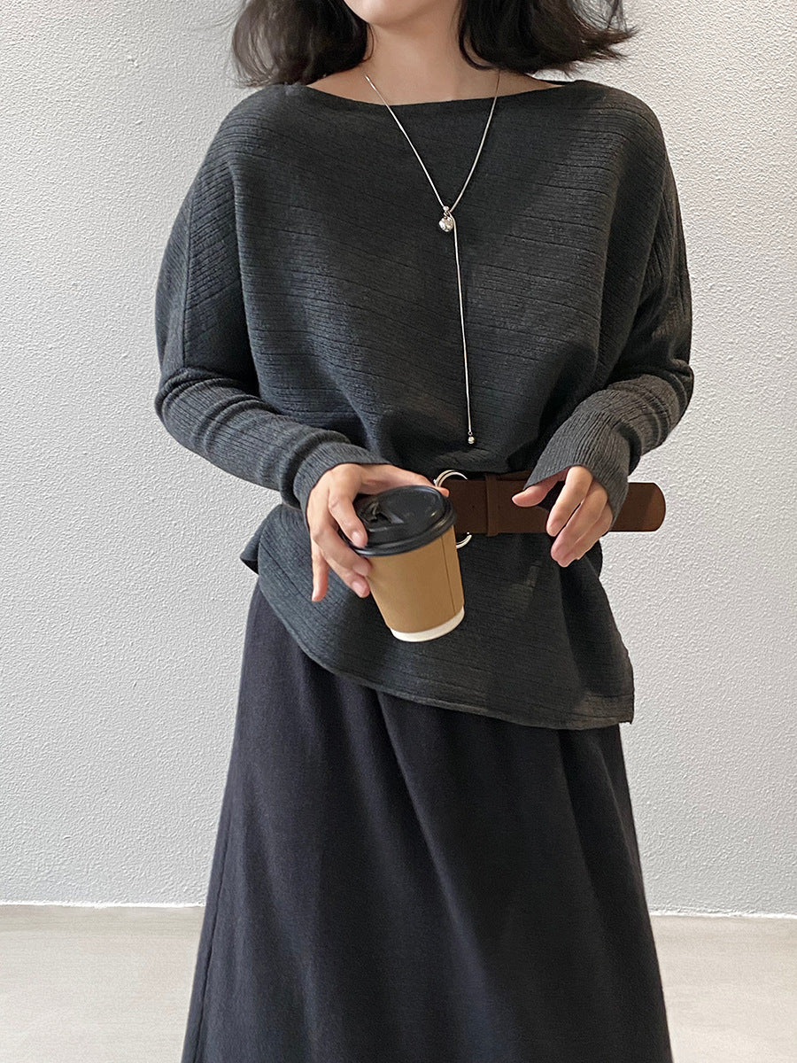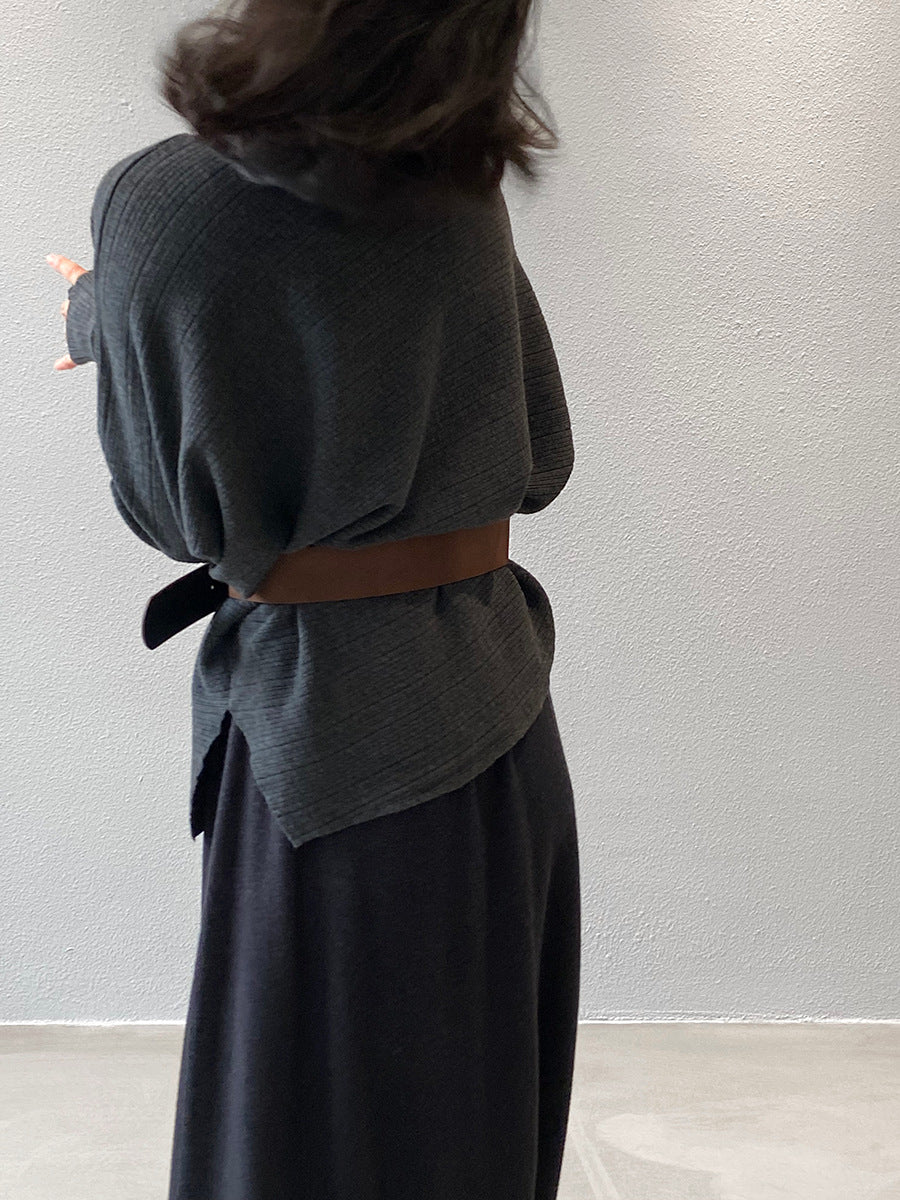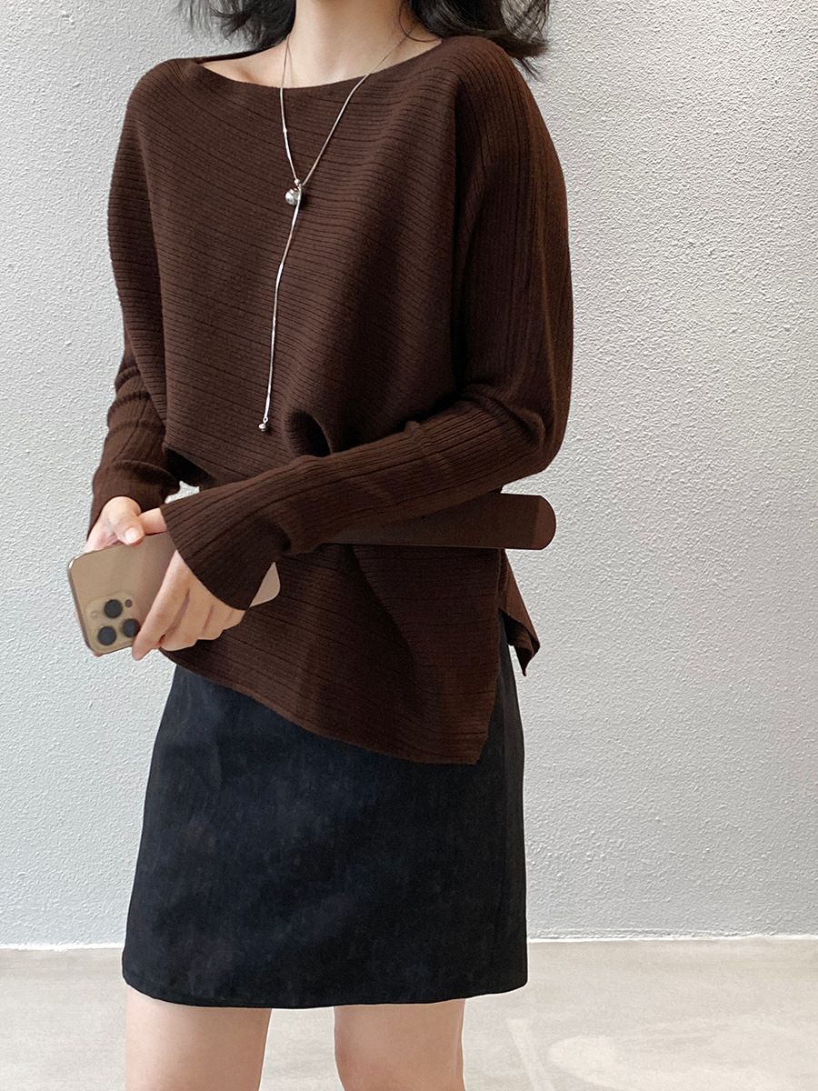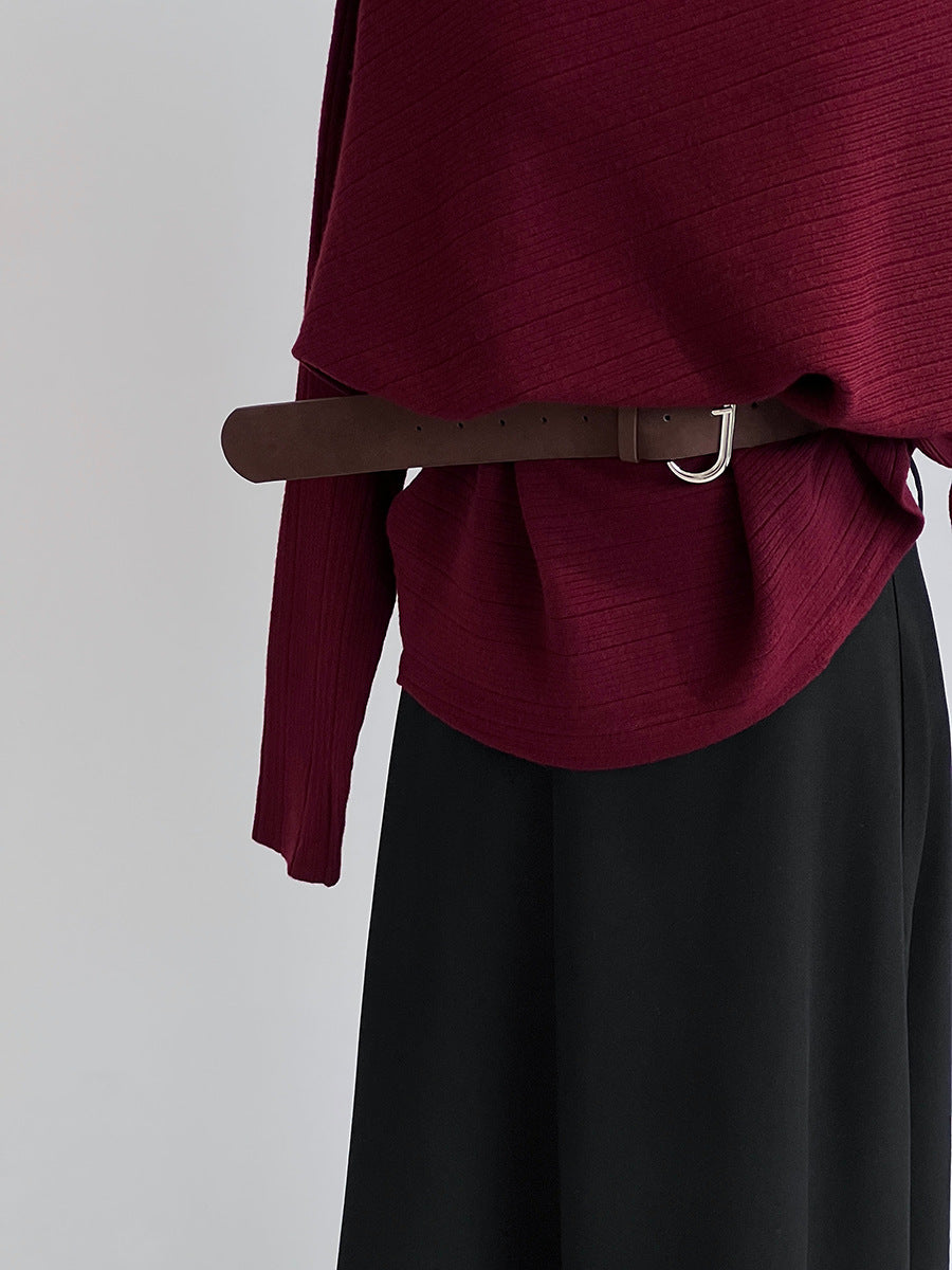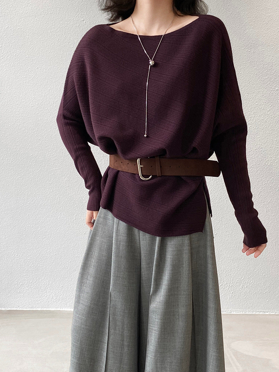 【cim9033】實拍韓系高級感長袖斜肩針織衫+腰帶251030