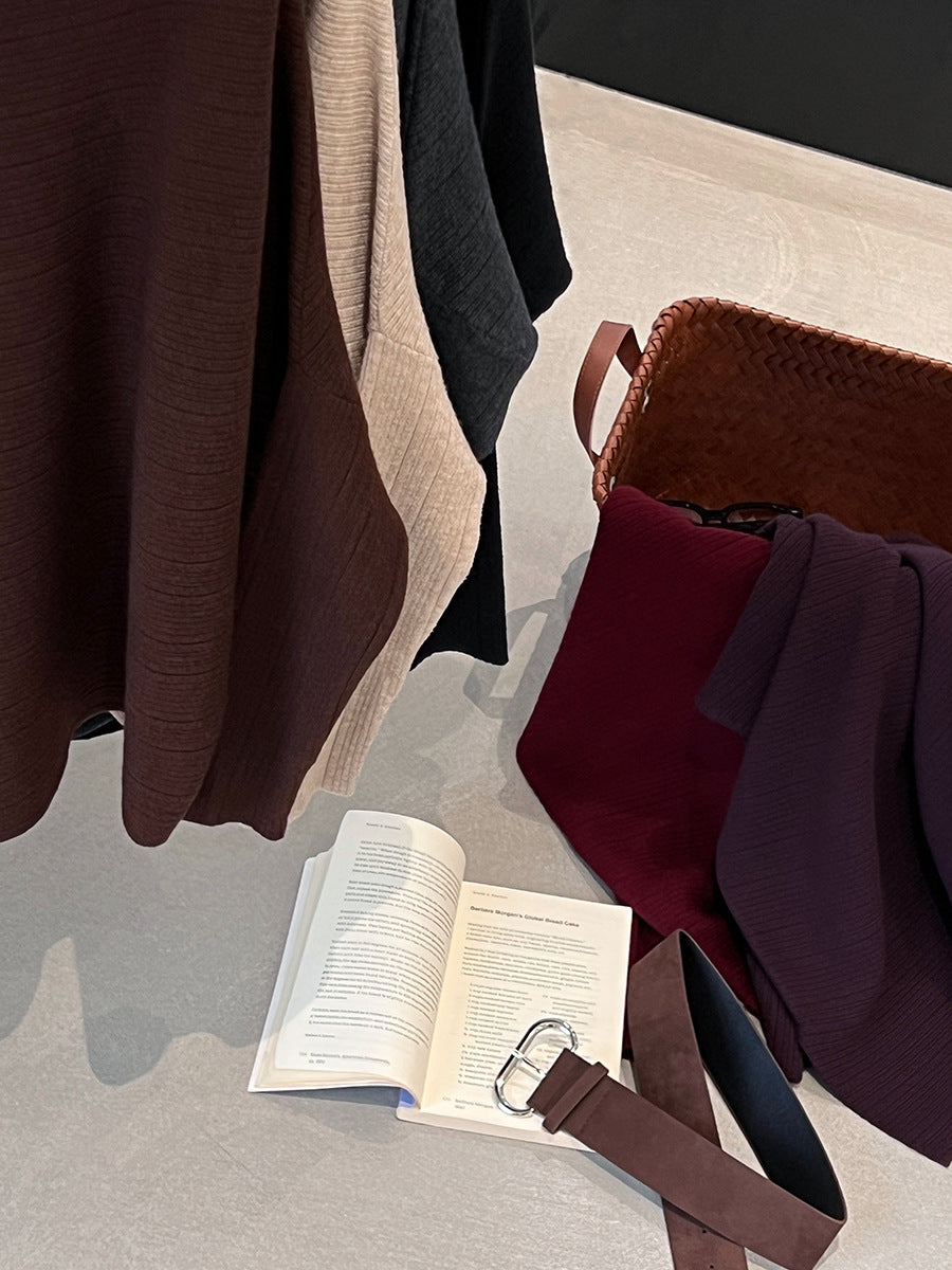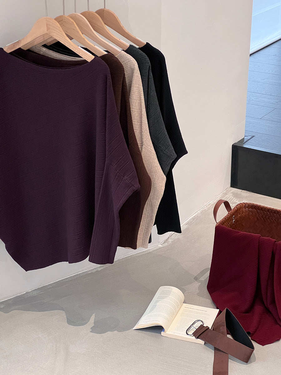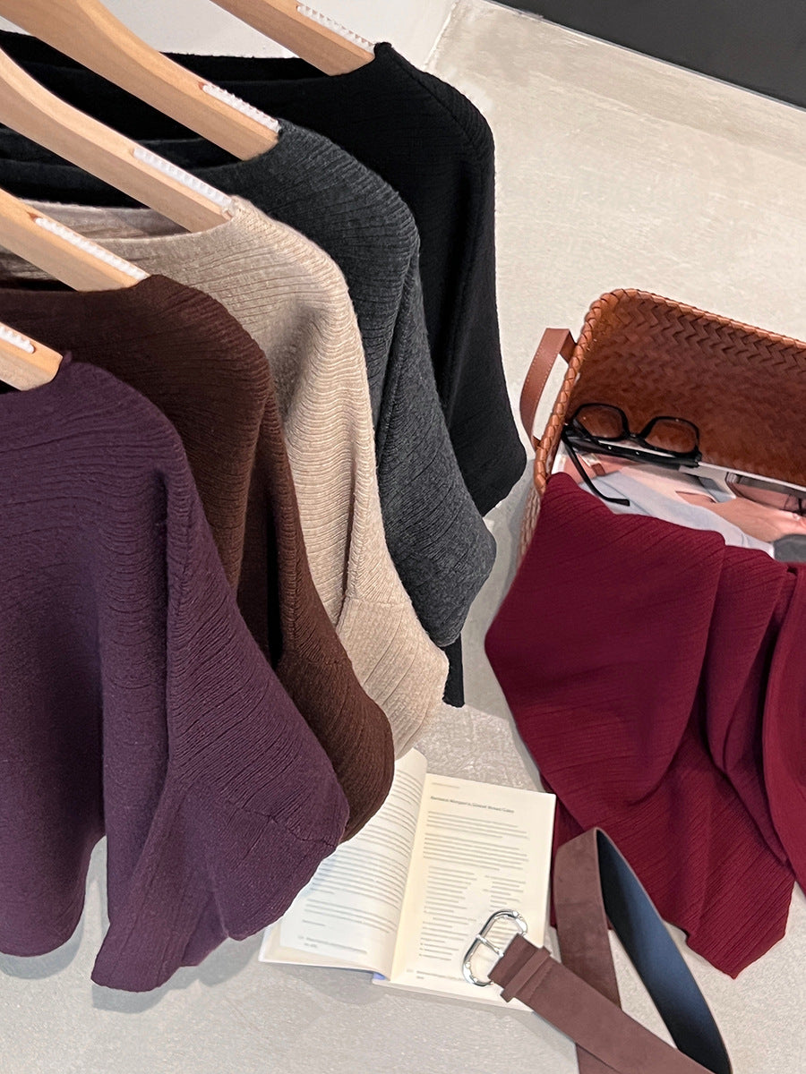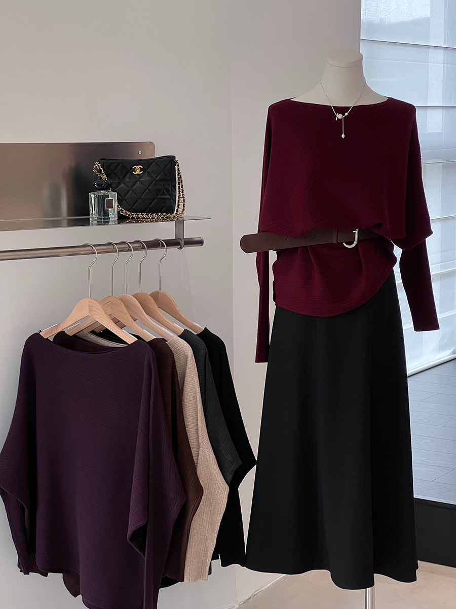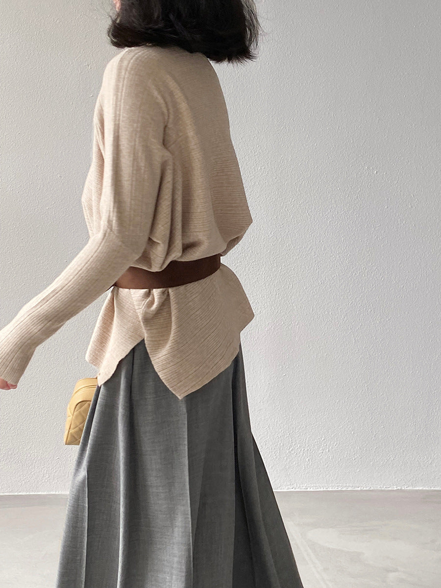 【cim9033】實拍韓系高級感長袖斜肩針織衫+腰帶251030
