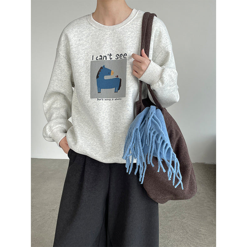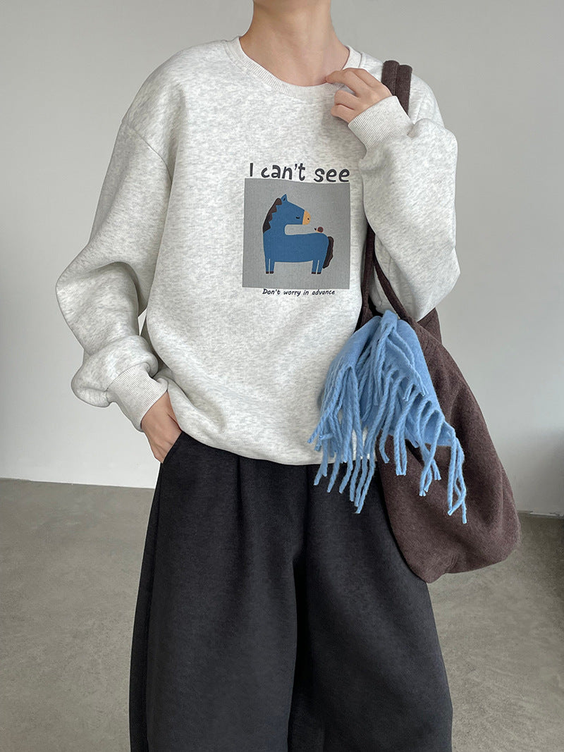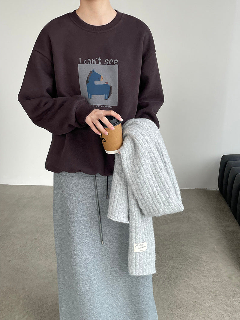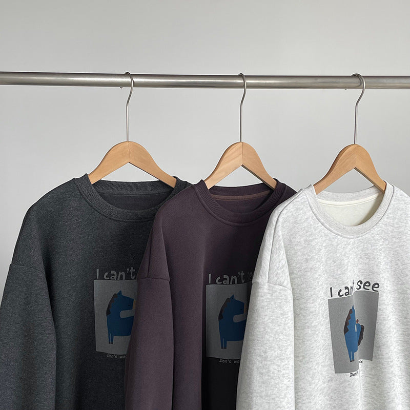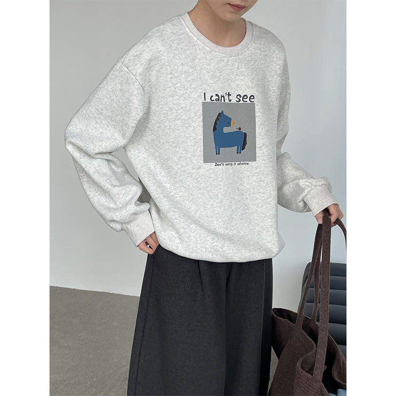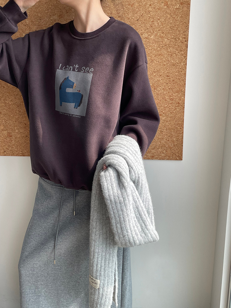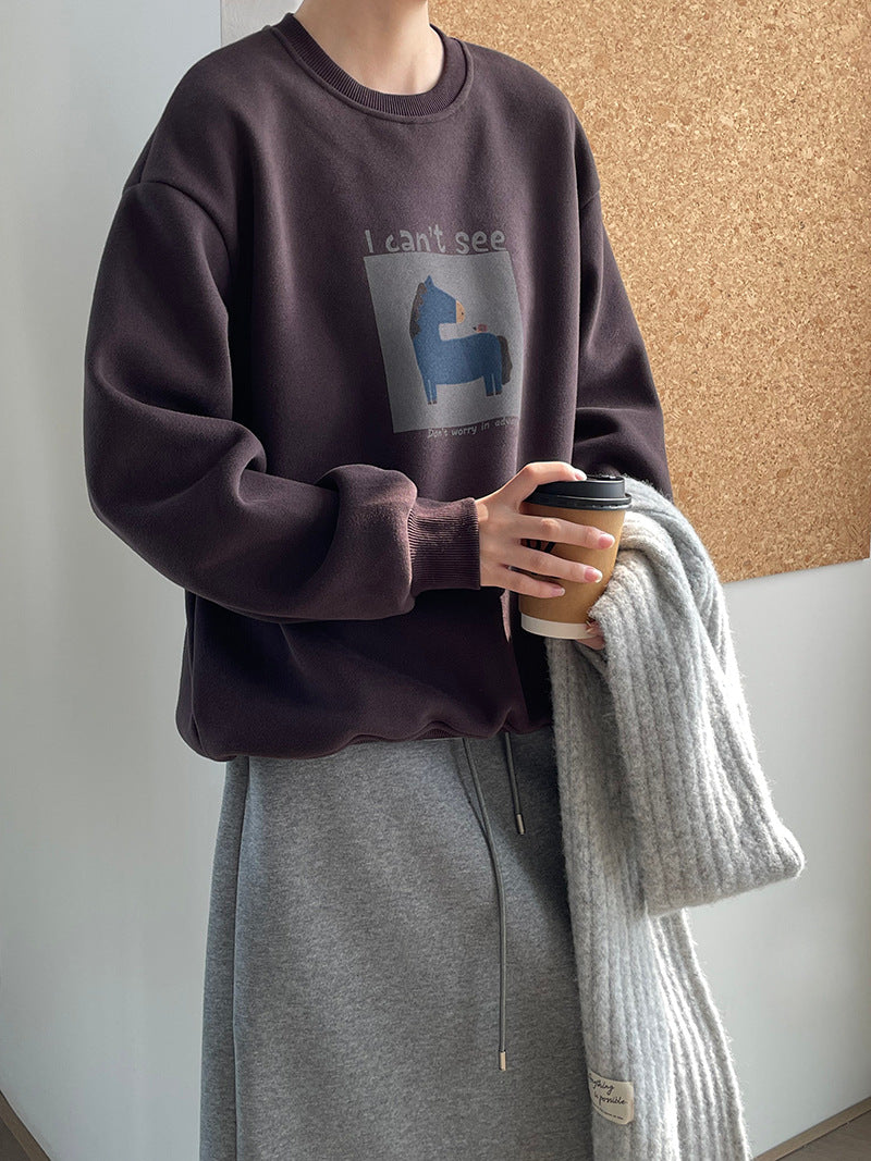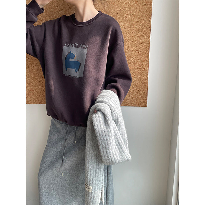 【cimD20307】實拍大人系印花加绒寬鬆衛衣251114