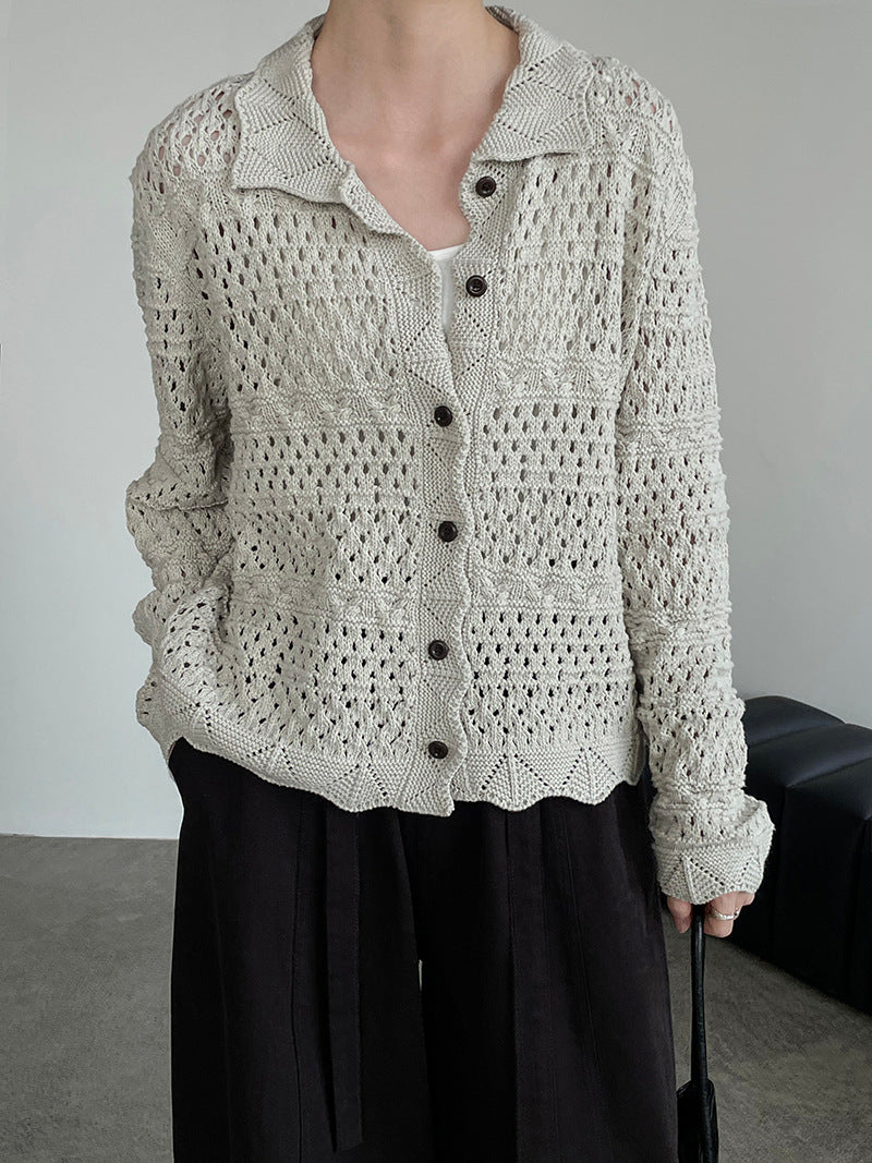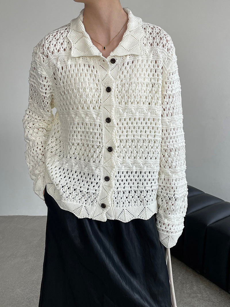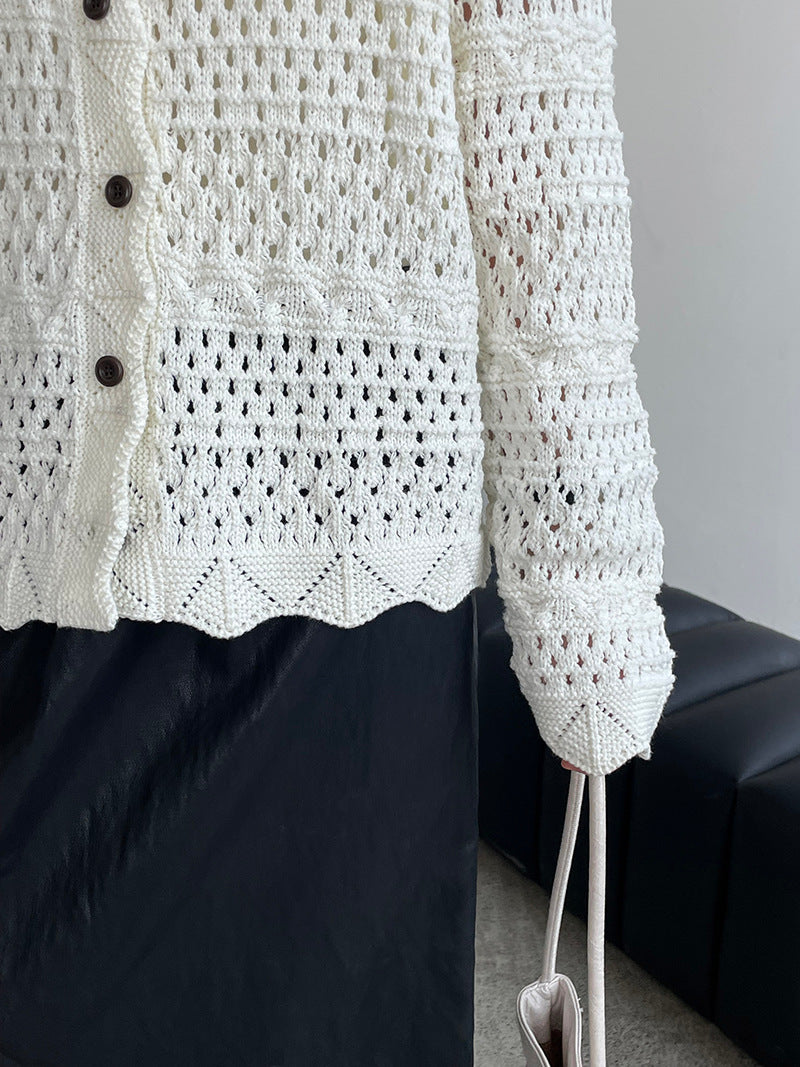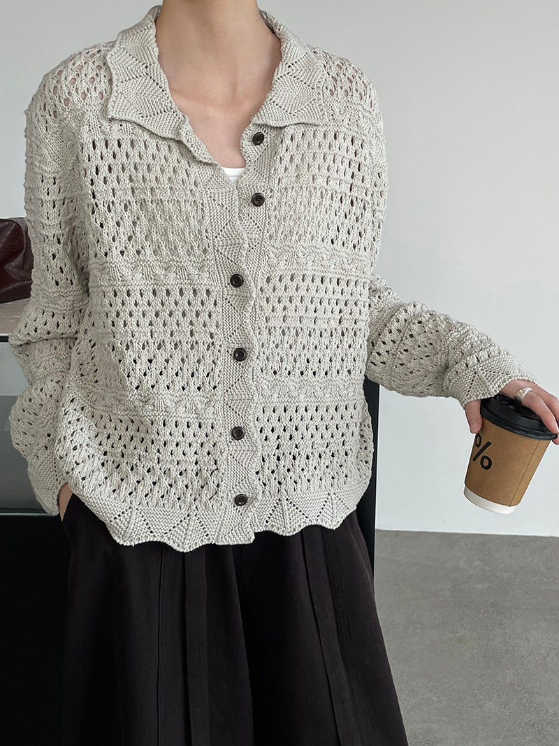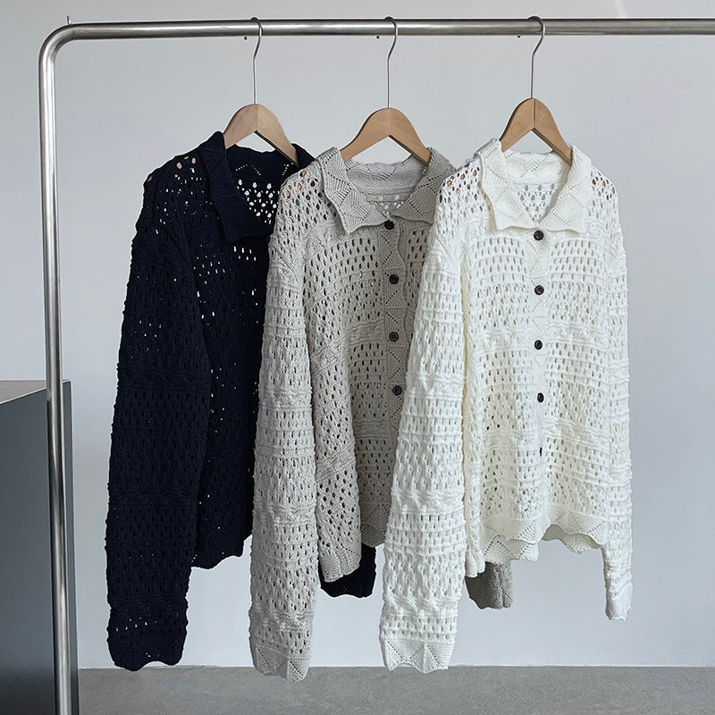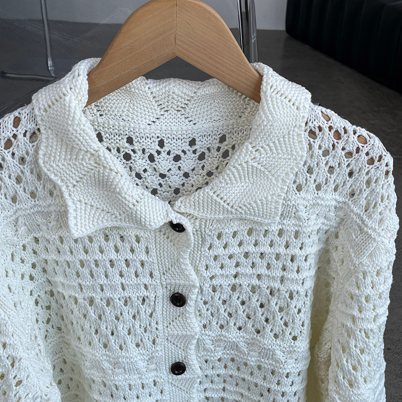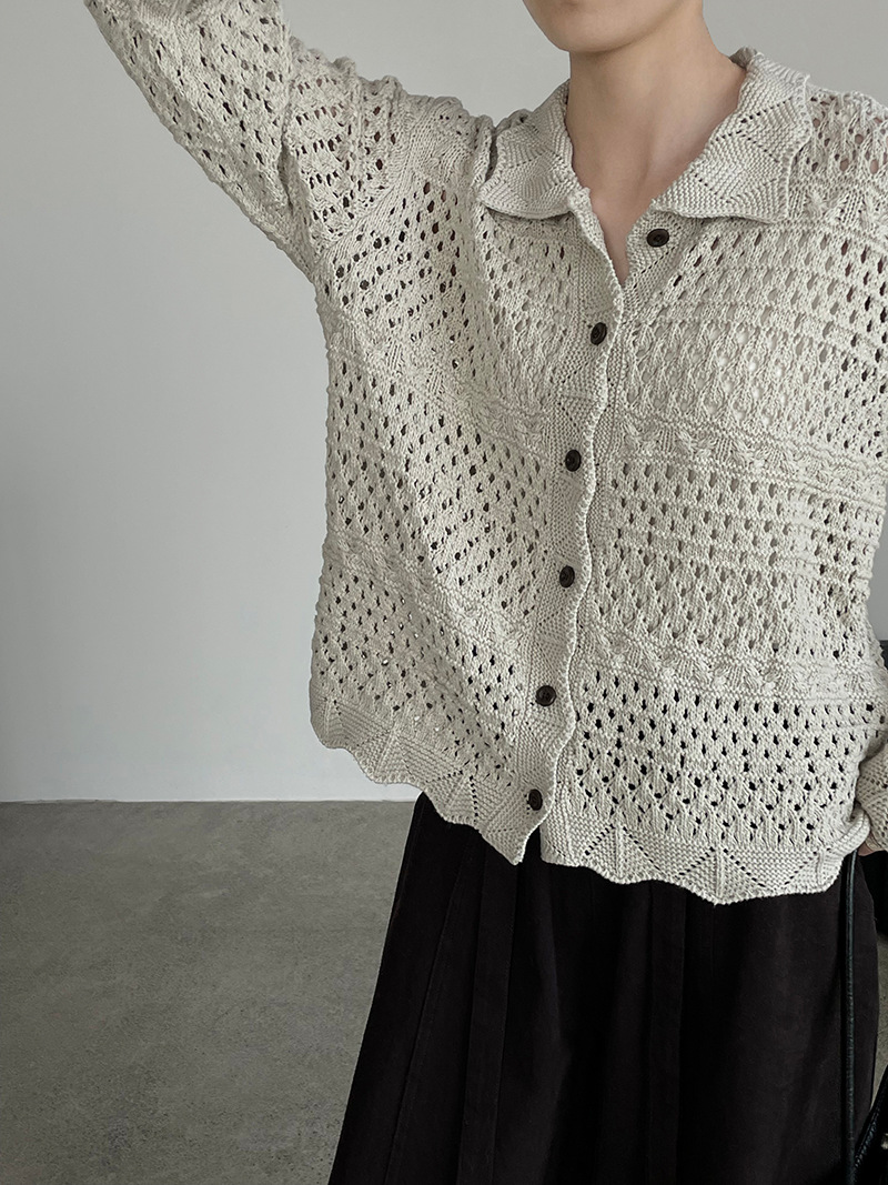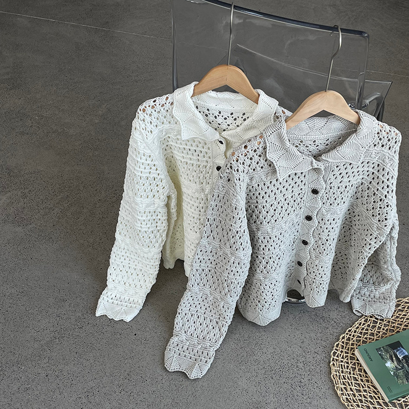 【cimOU129】實拍鏤空鈎花針織外套250925