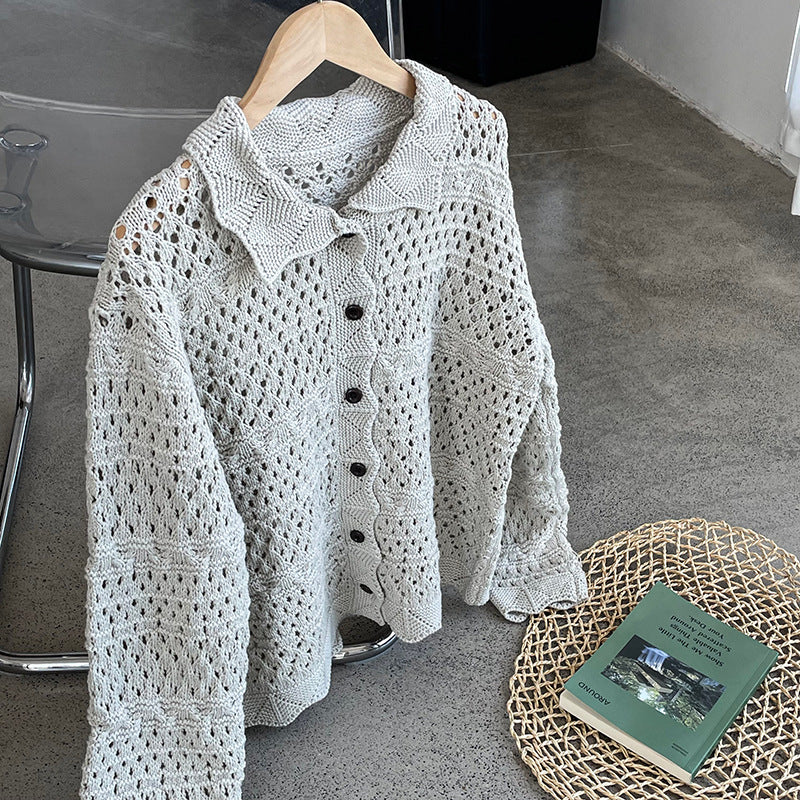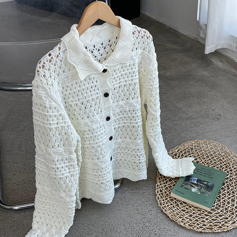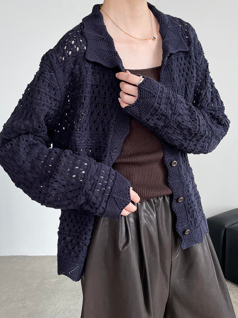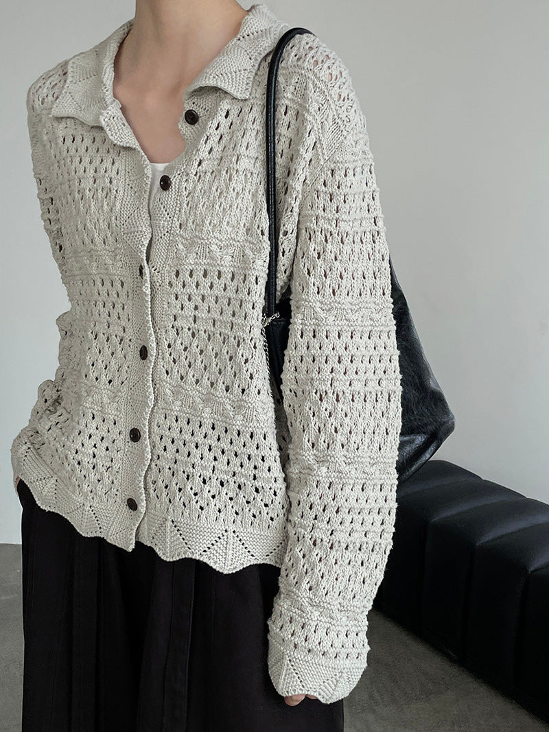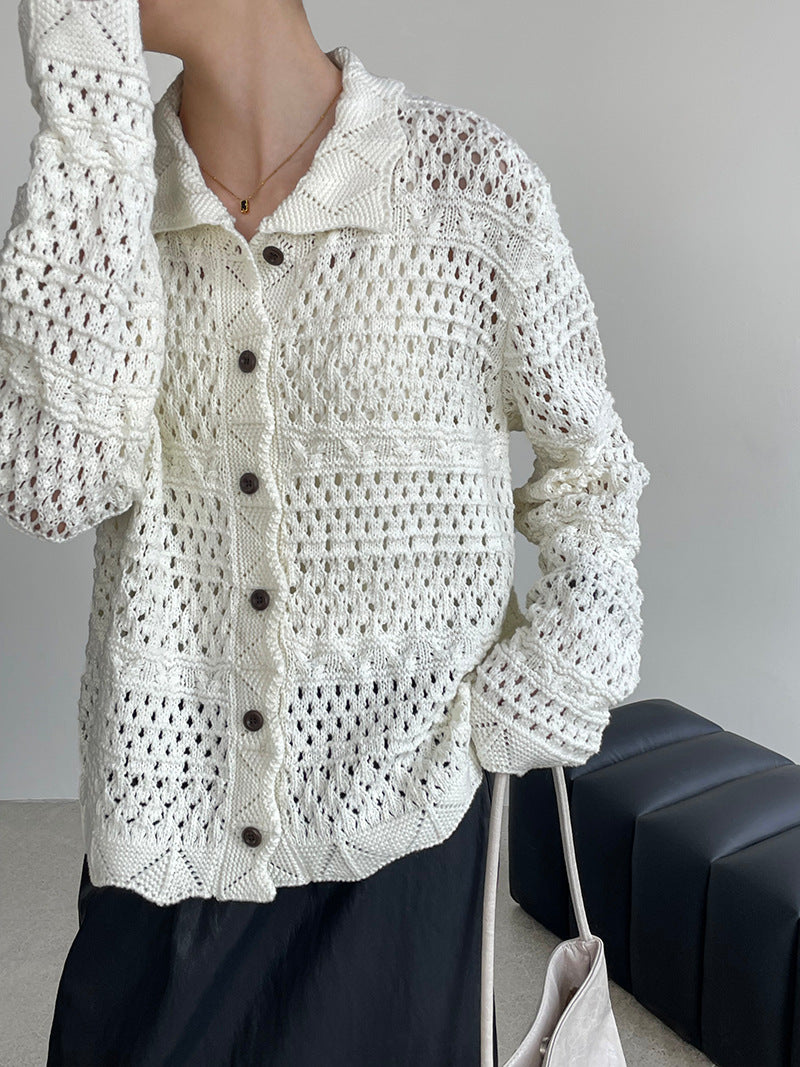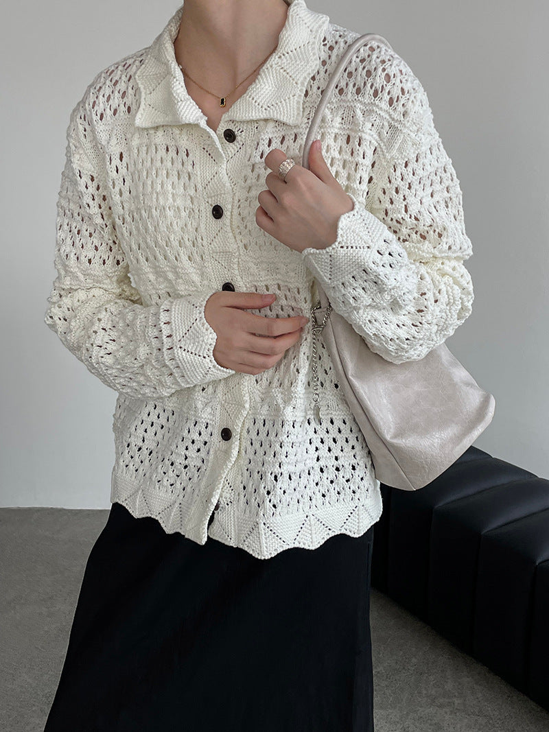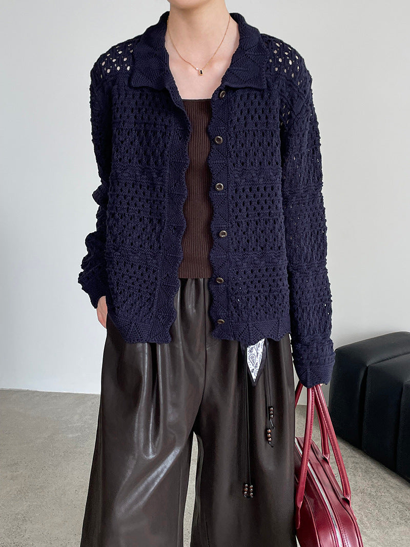 【cimOU129】實拍鏤空鈎花針織外套250925