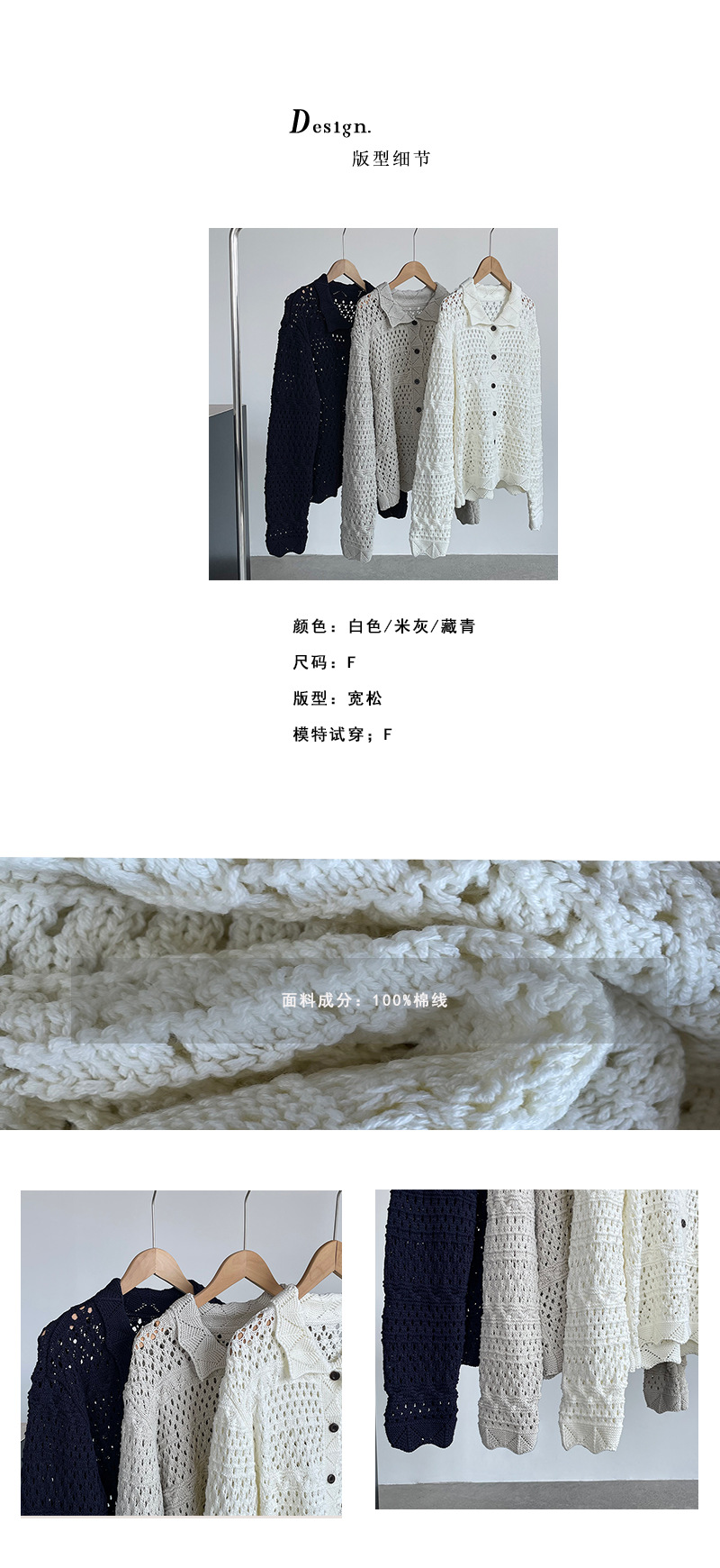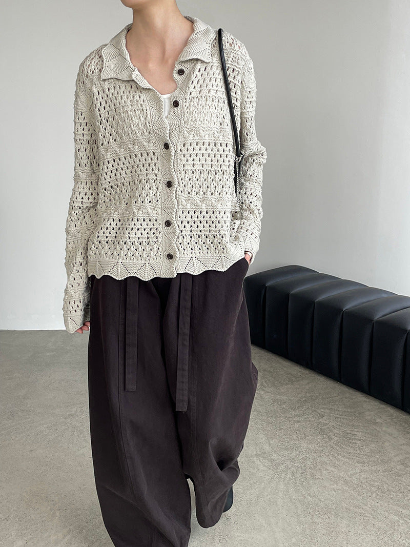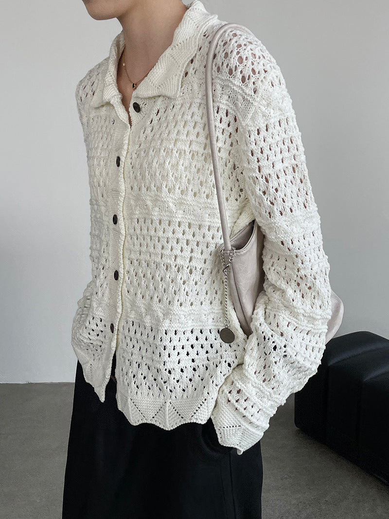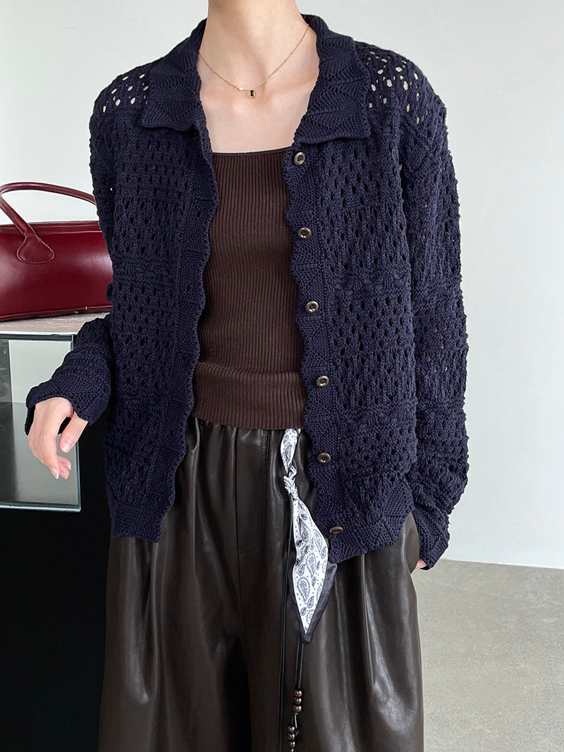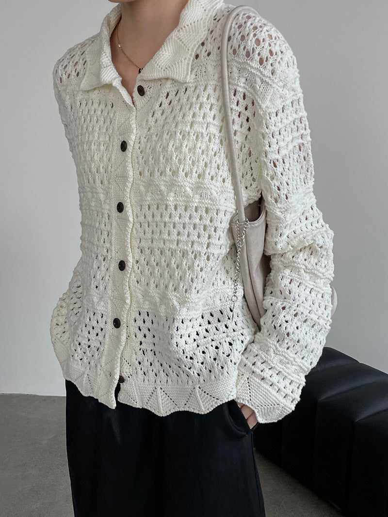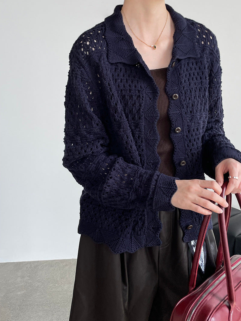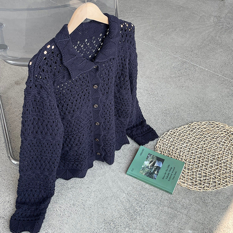 【cimOU129】實拍鏤空鈎花針織外套250925