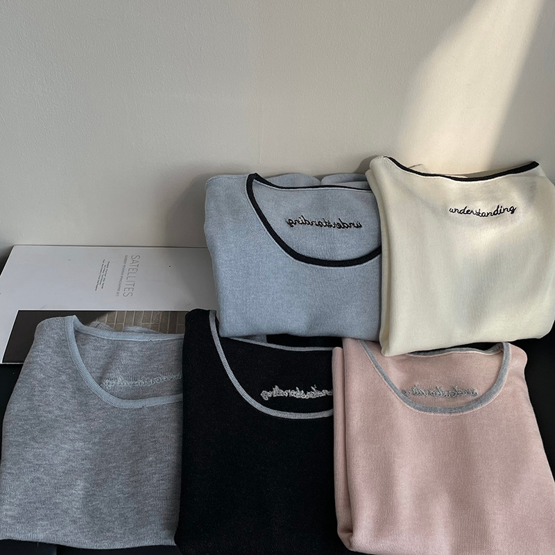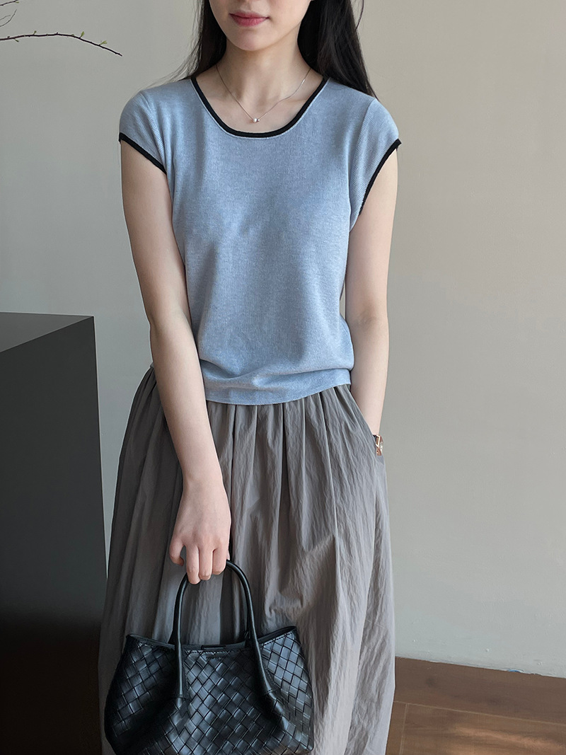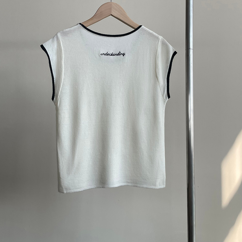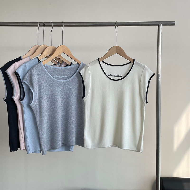 【cimXS1015】實拍韓國簡約刺繡針織短袖250313