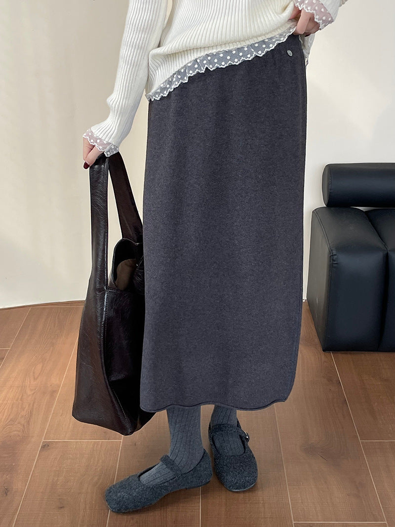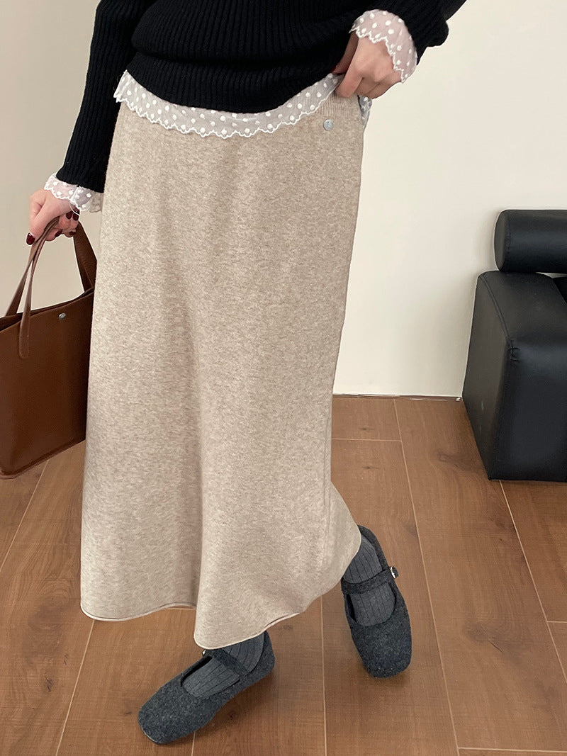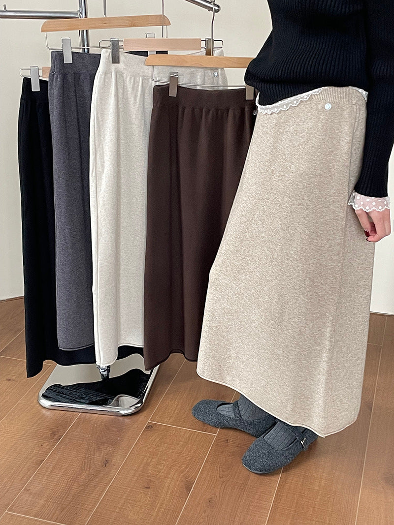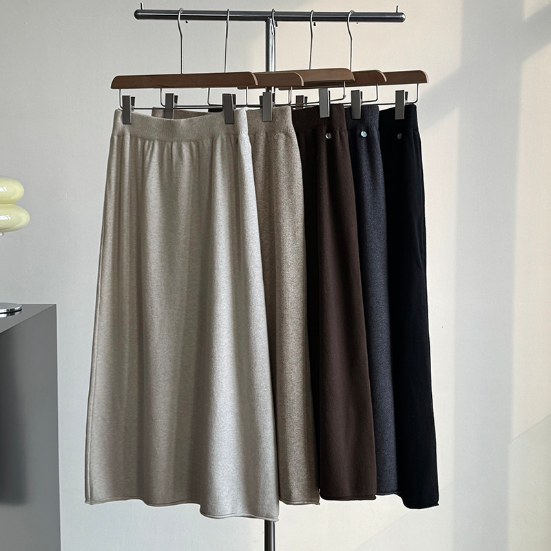 【cimYL1580】實拍氣質簡約捲邊針織長裙251114