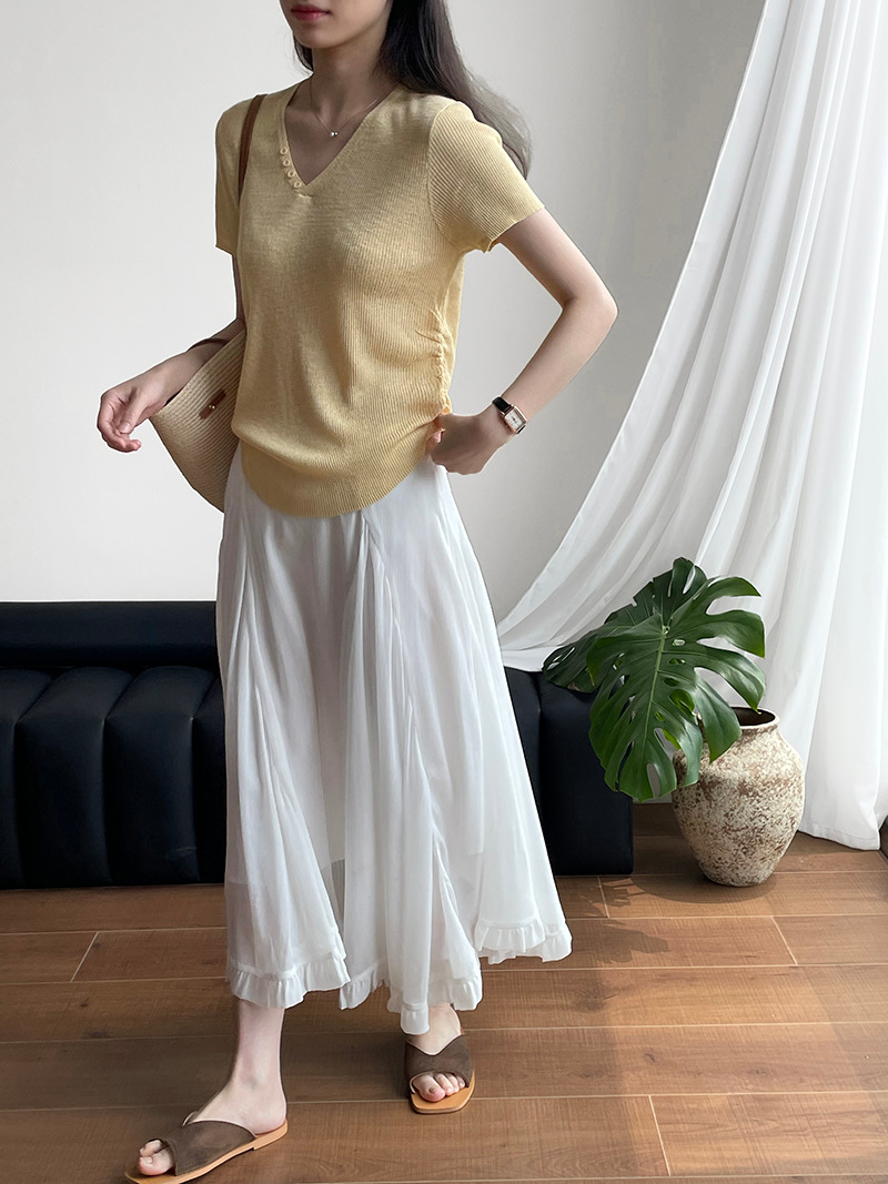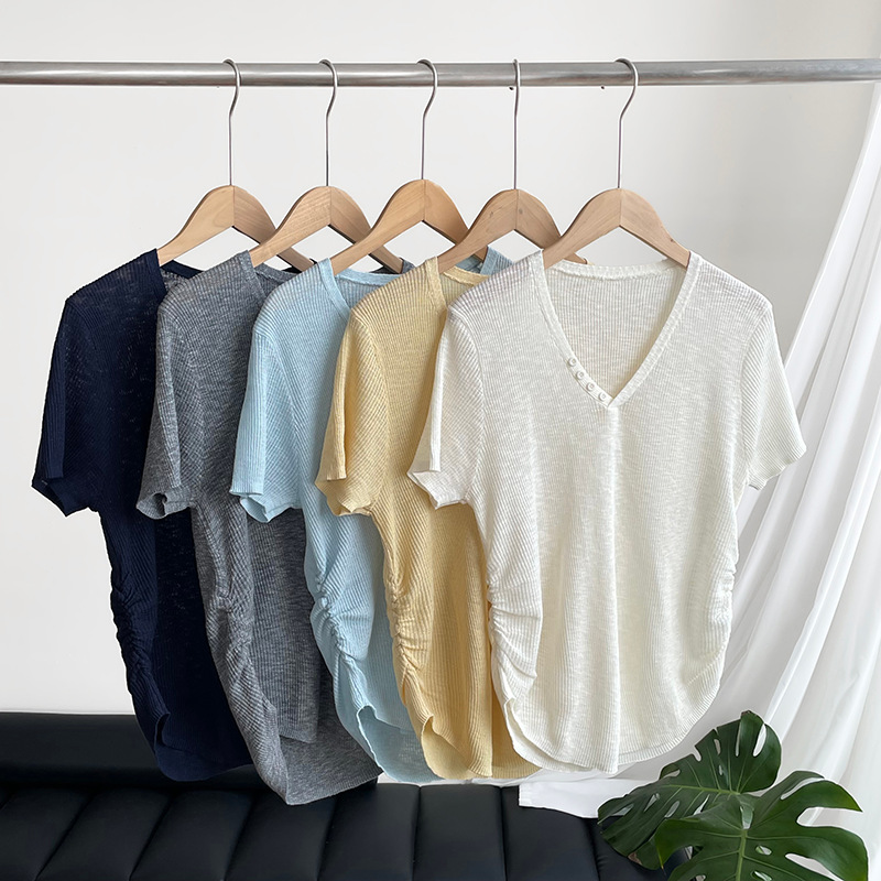 【cimYL3181】實拍紐扣褶皺收腰顯瘦針織250508