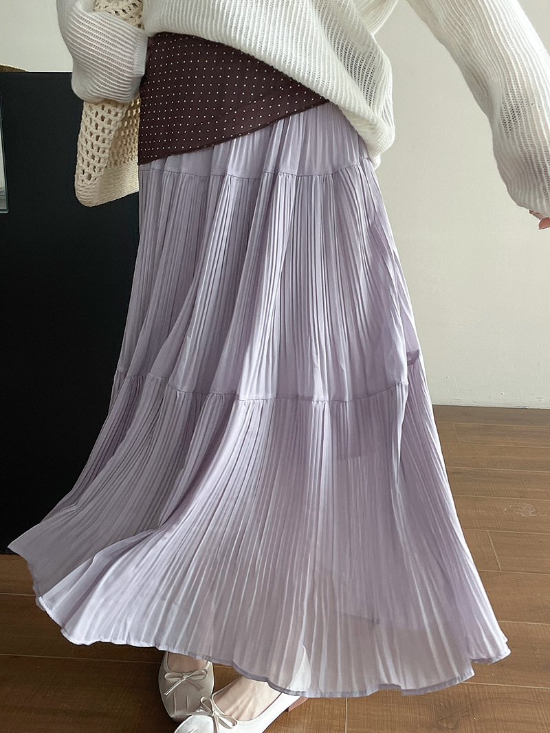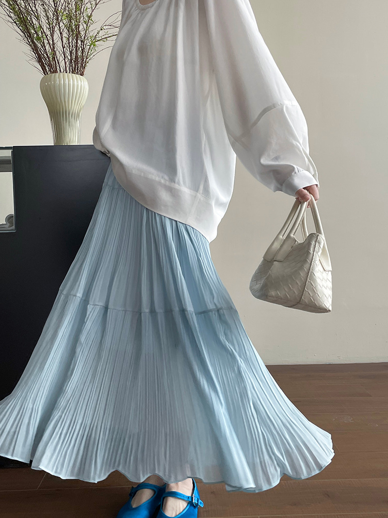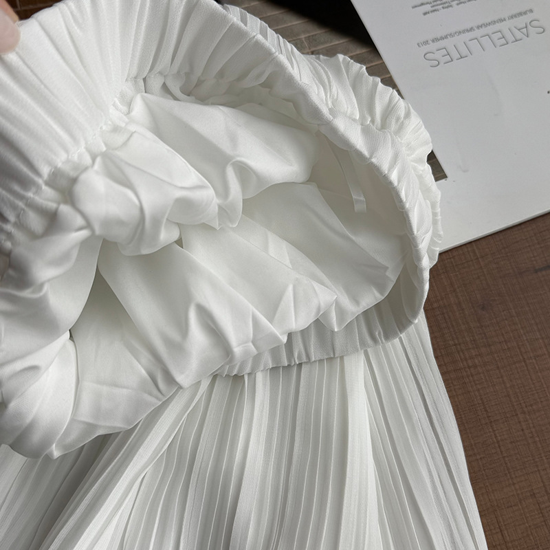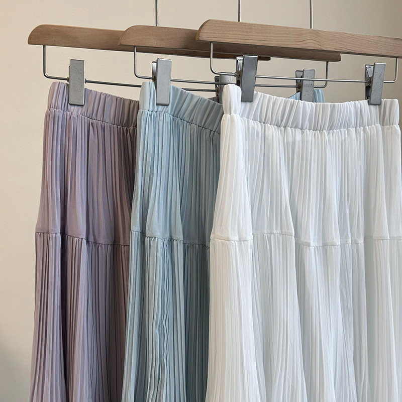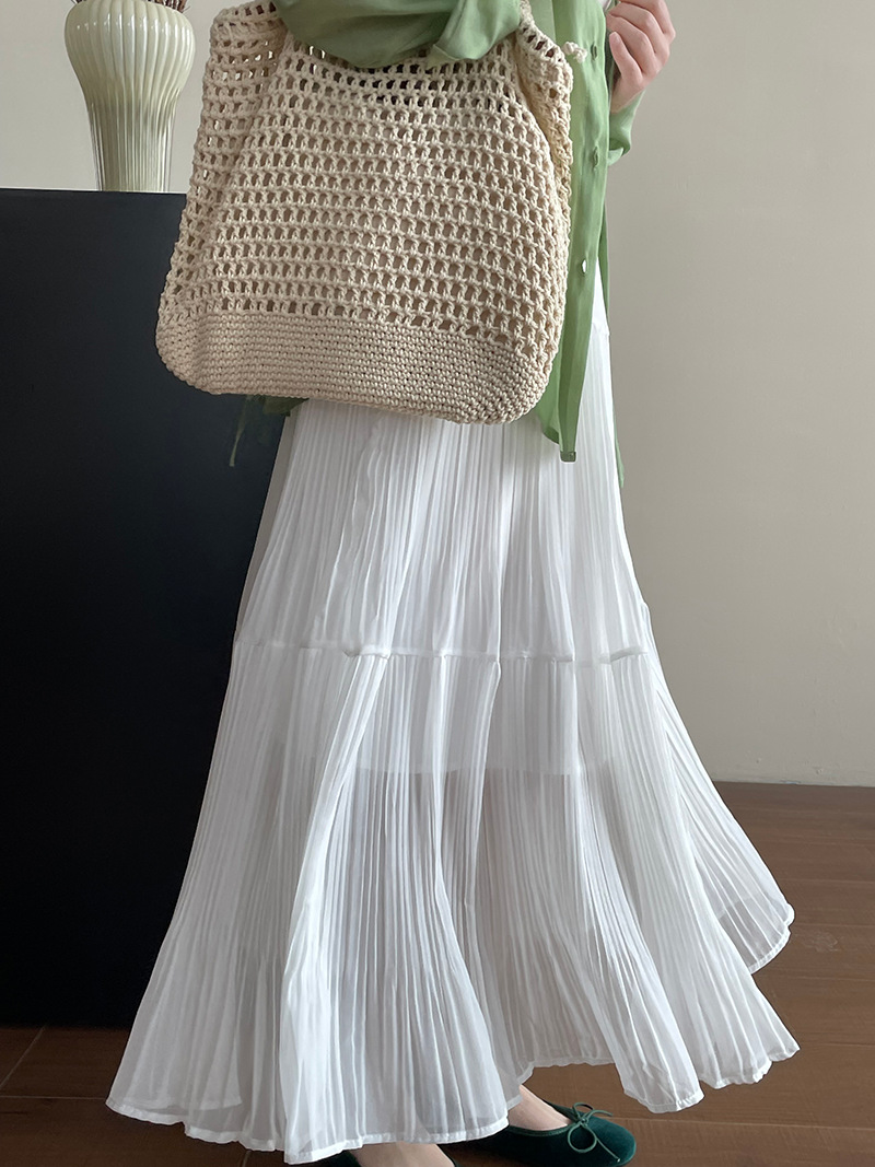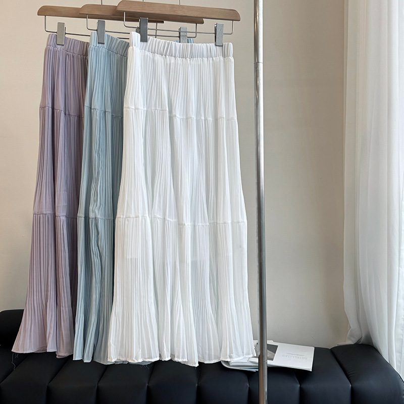 【cimYL7021】實拍春夏大裙襬雪紡壓褶長裙250313