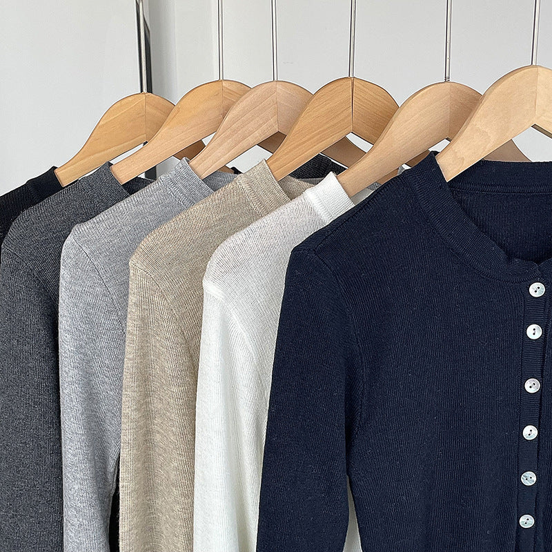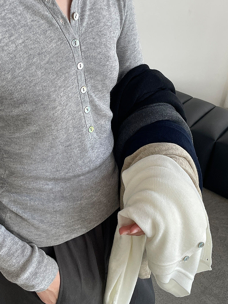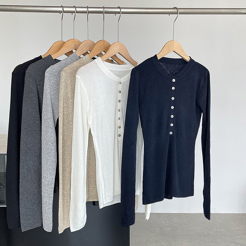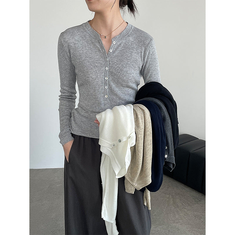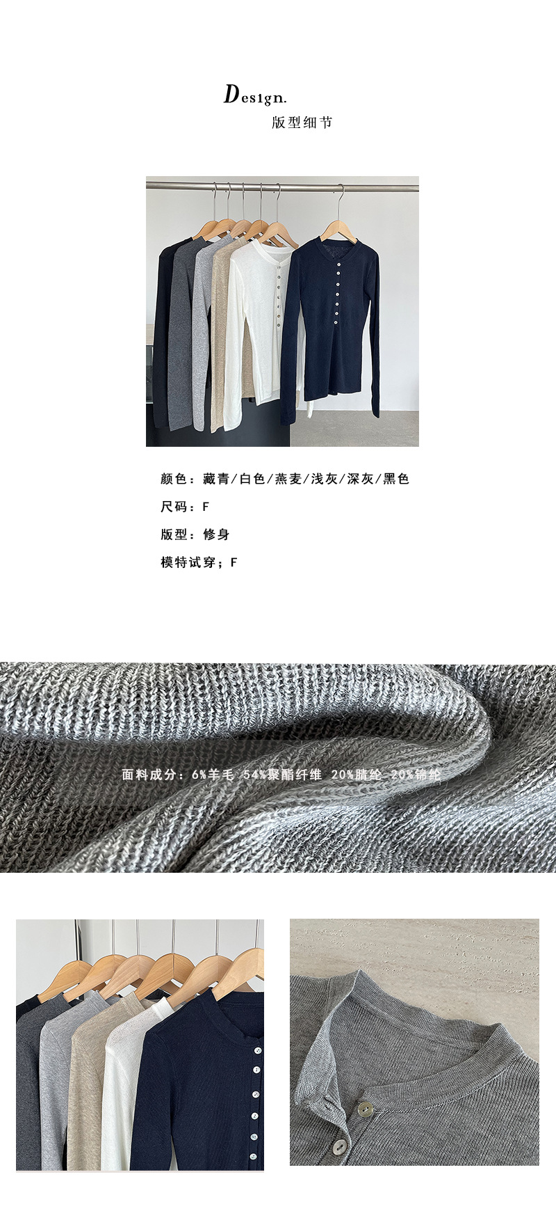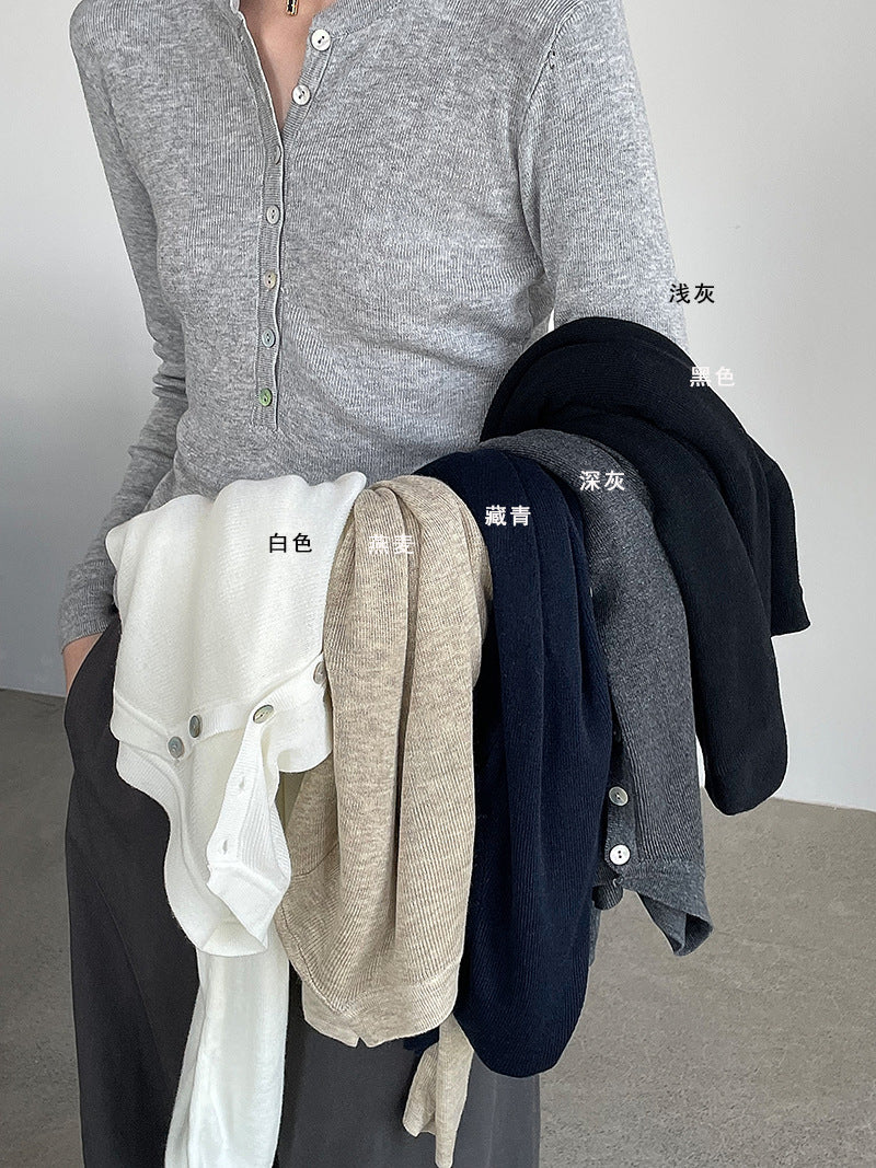 【cim801】實拍高級感貝殼扣亨利款針織衫250904
