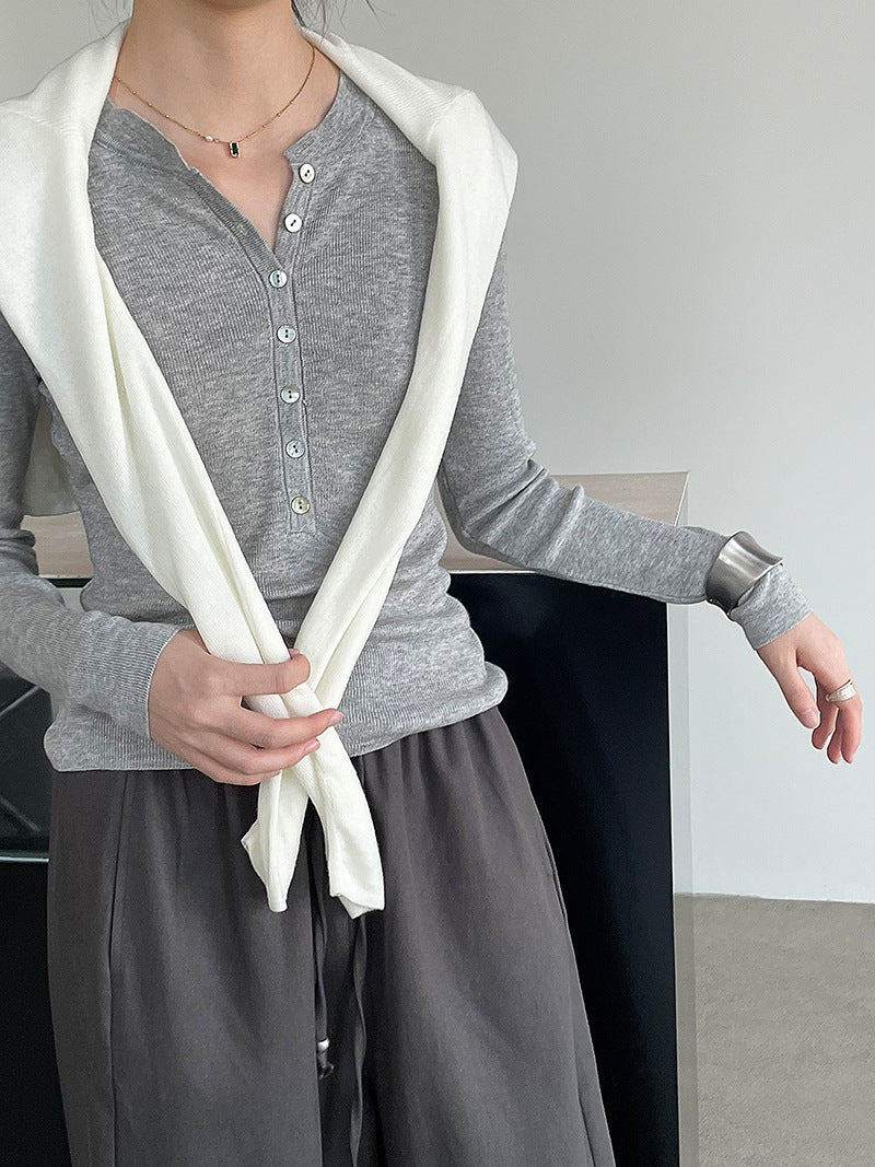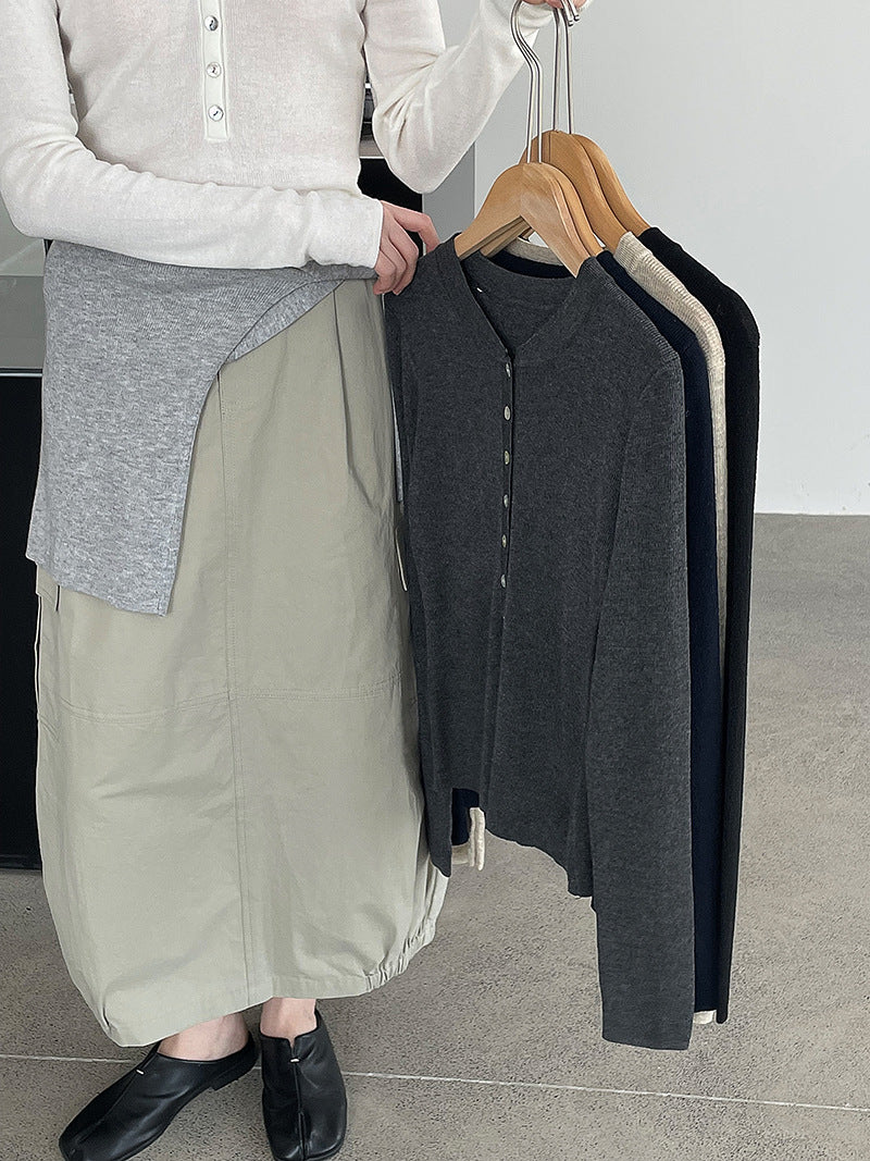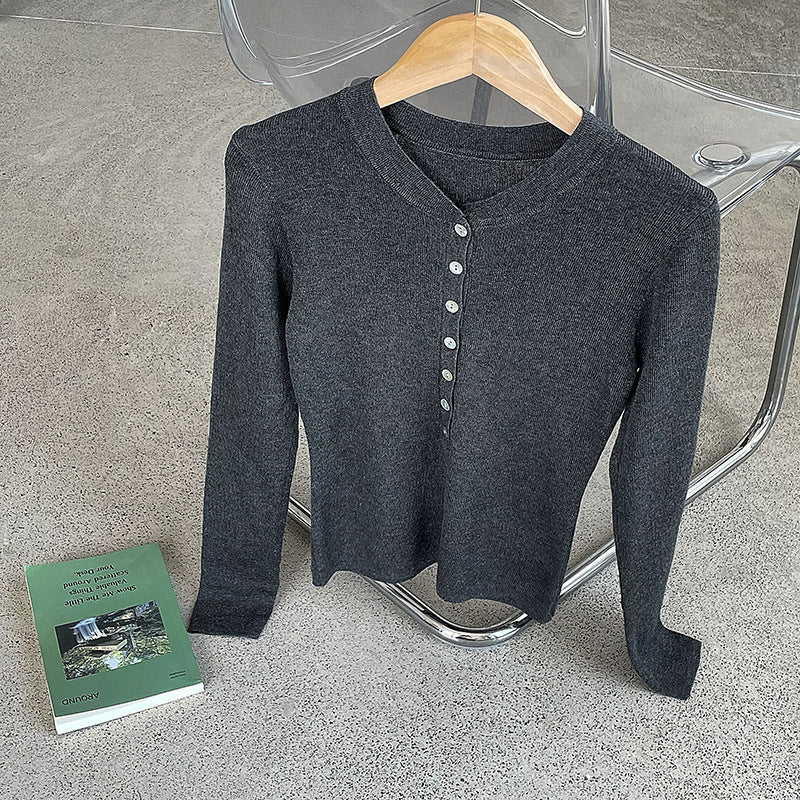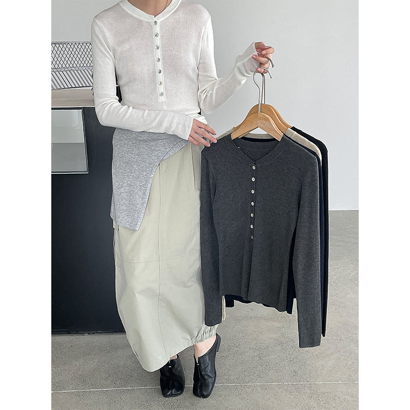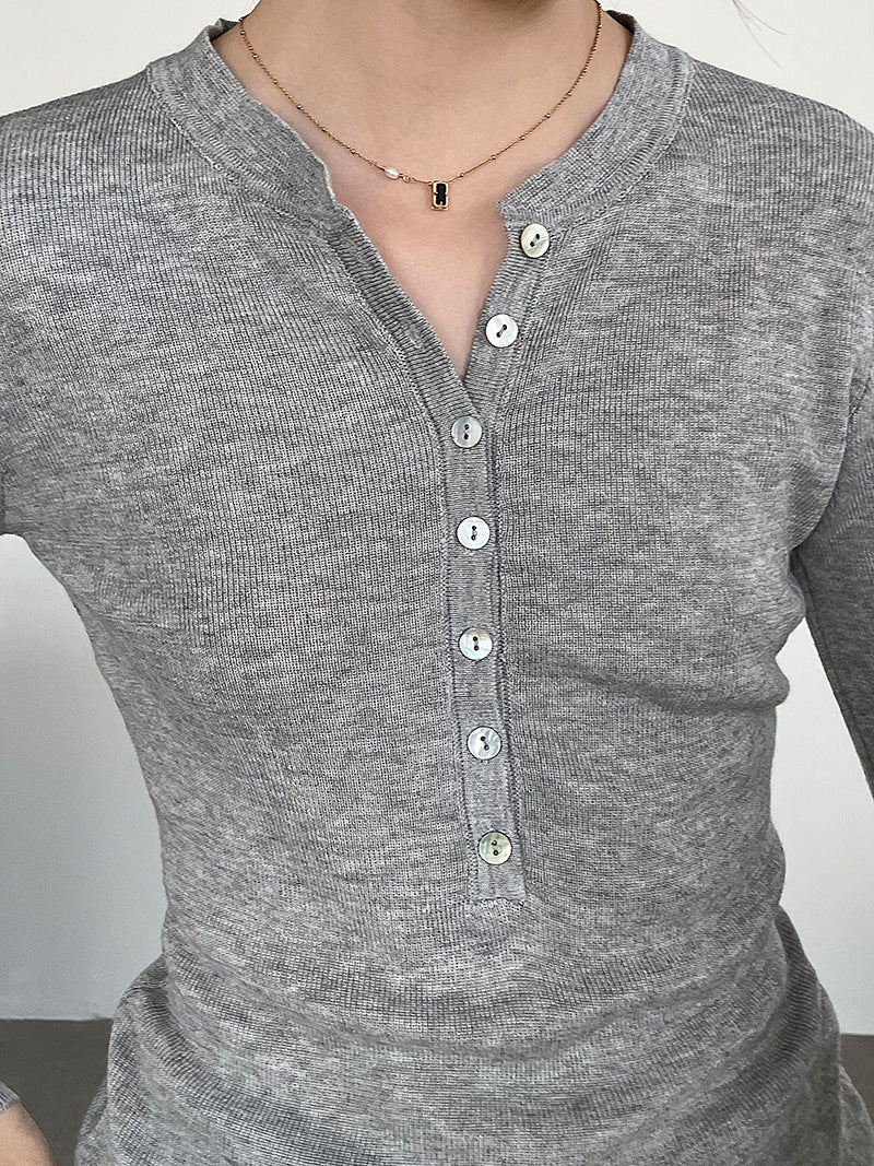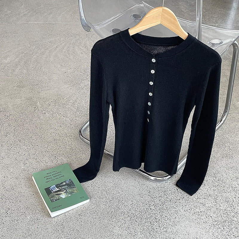【cim801】實拍高級感貝殼扣亨利款針織衫250904