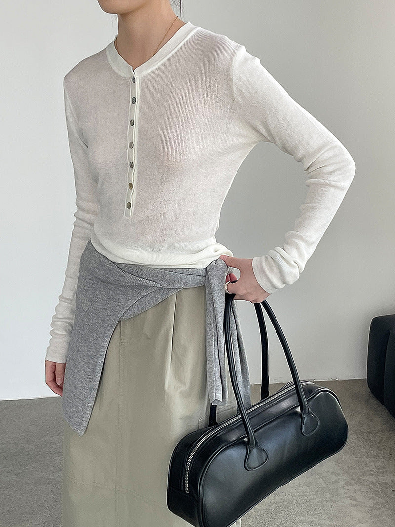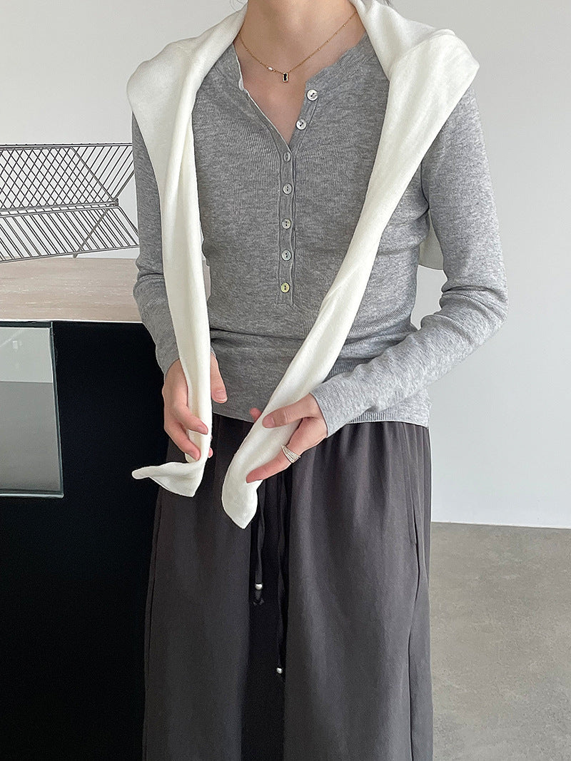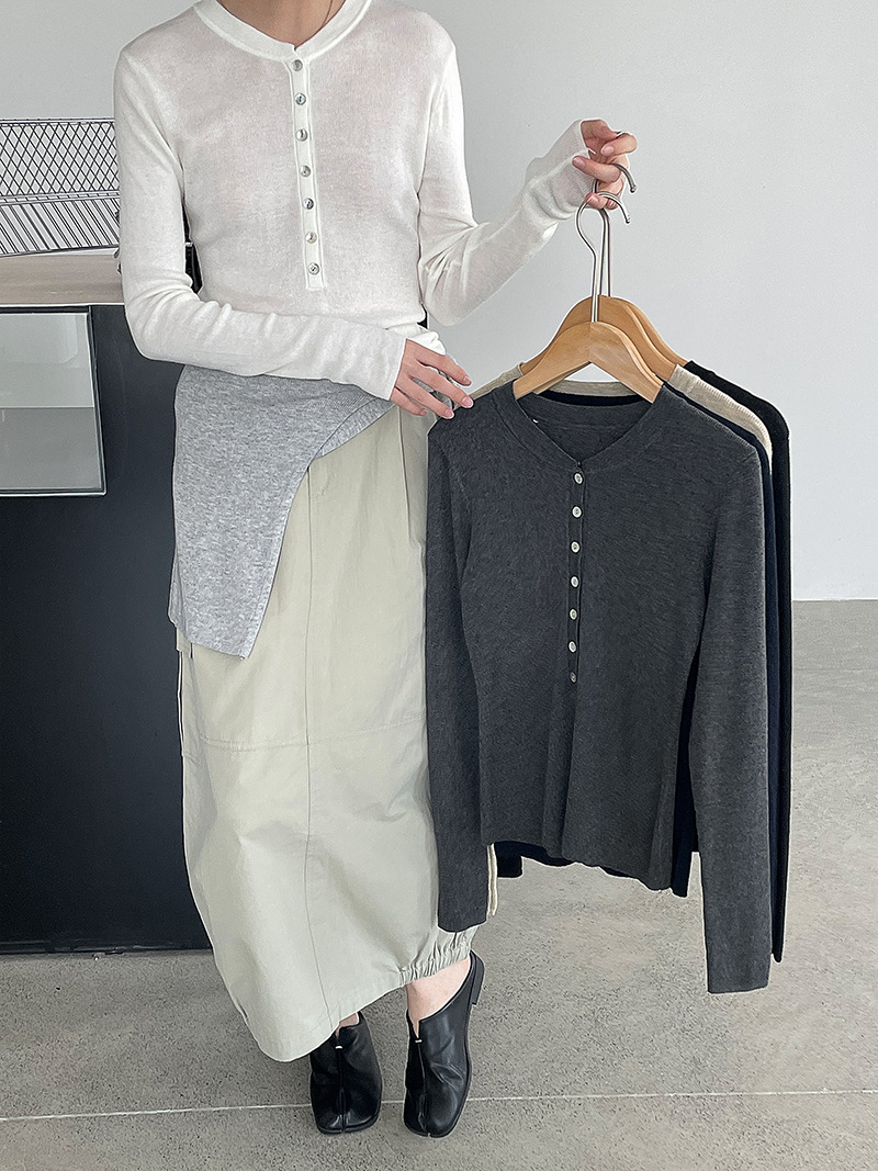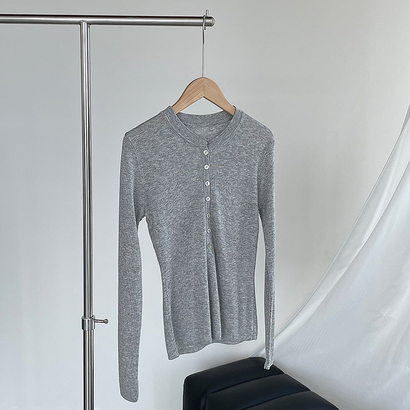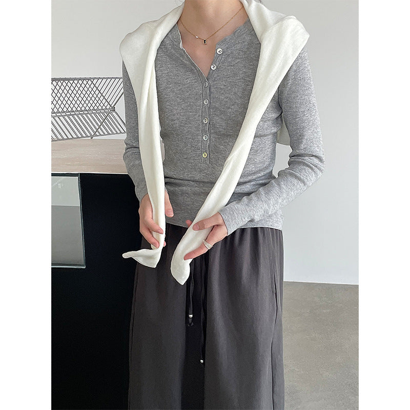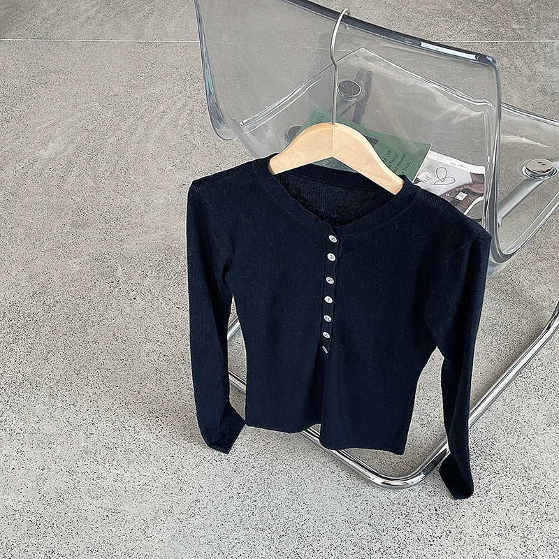 【cim801】實拍高級感貝殼扣亨利款針織衫250904