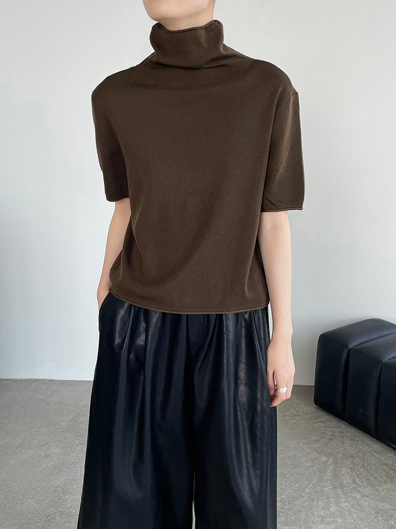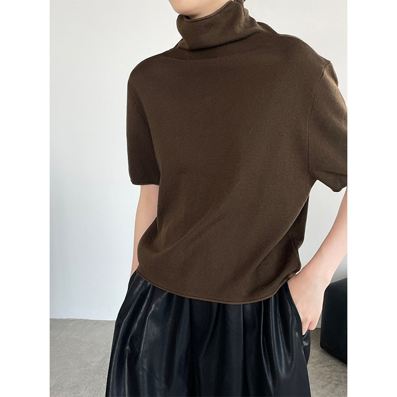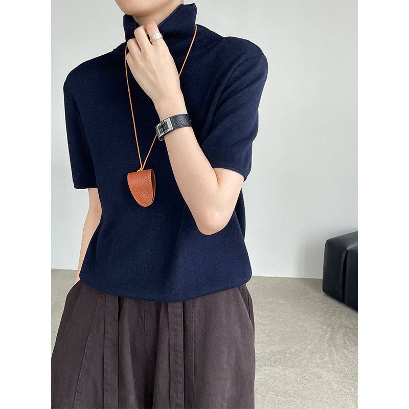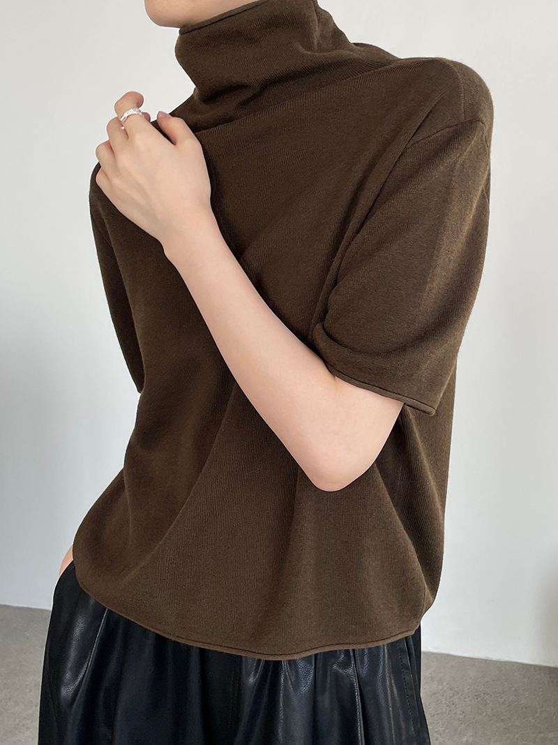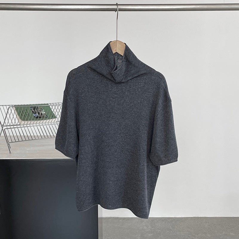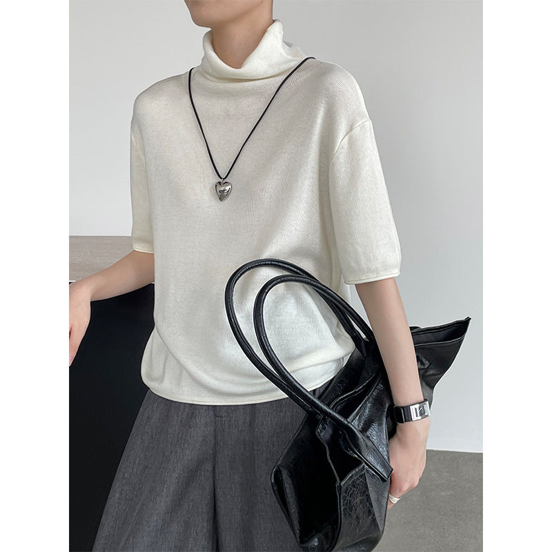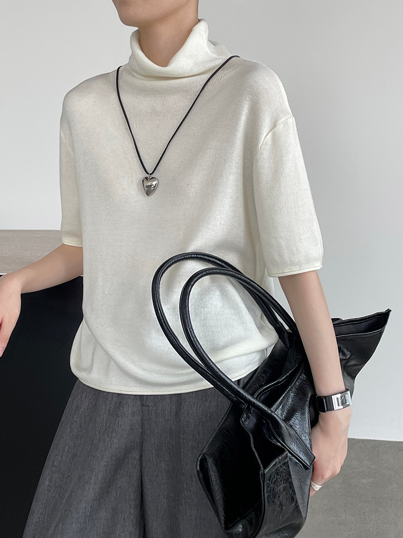 【cimYL921】實拍秋天簡約堆堆領五分袖針織衫250925