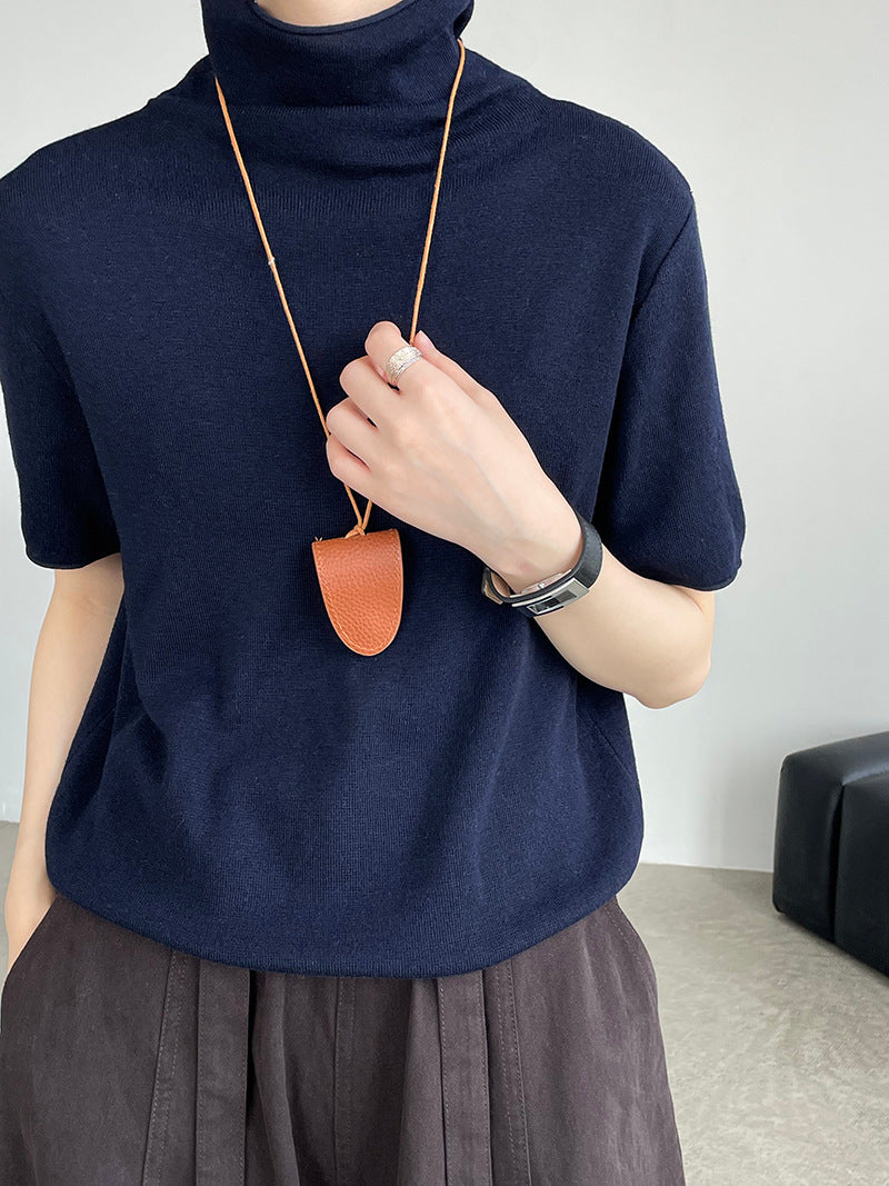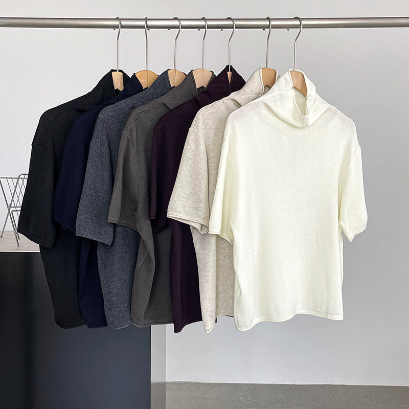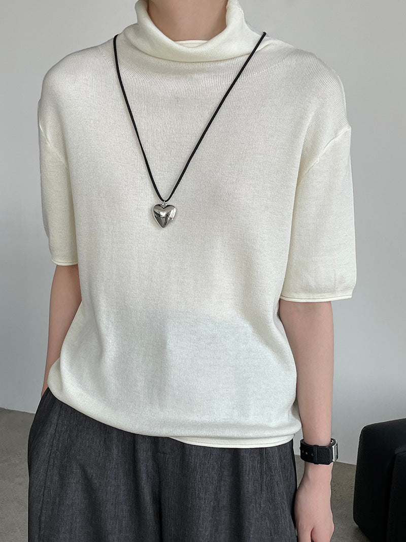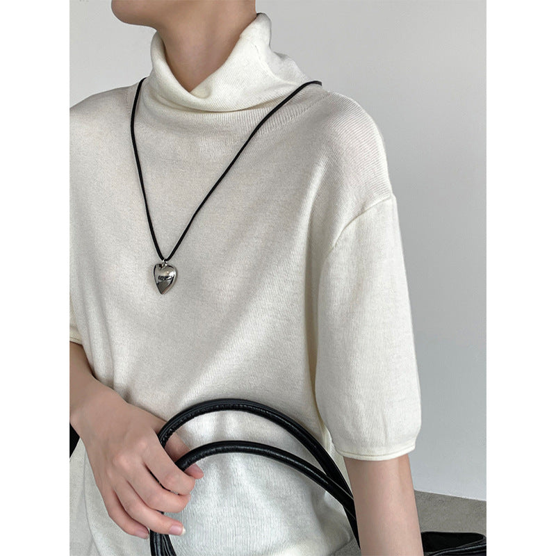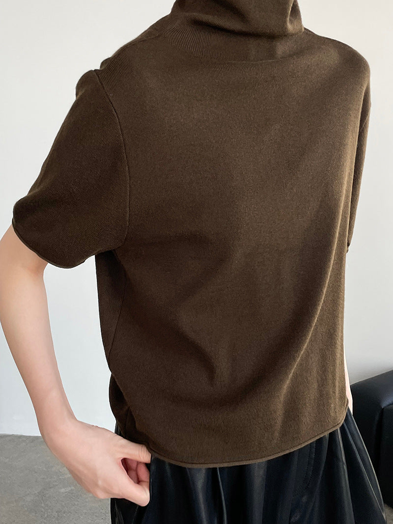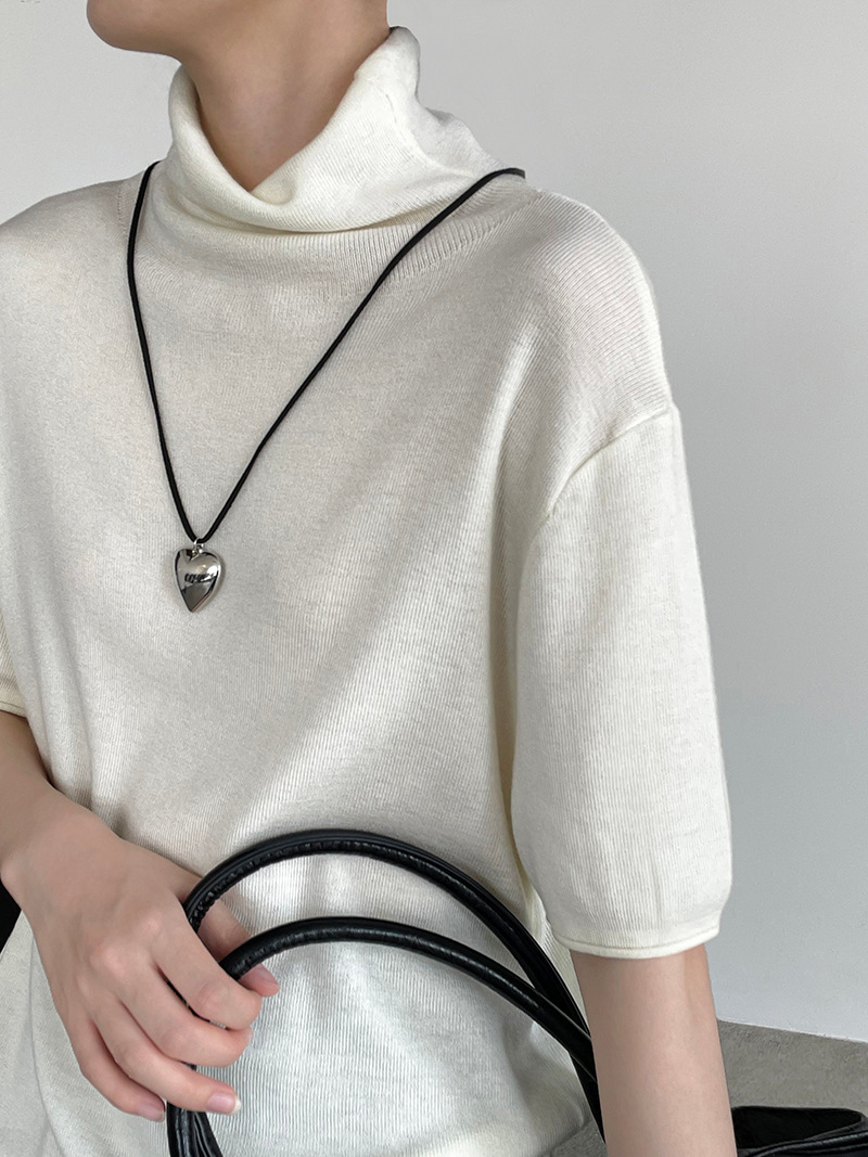 【cimYL921】實拍秋天簡約堆堆領五分袖針織衫250925