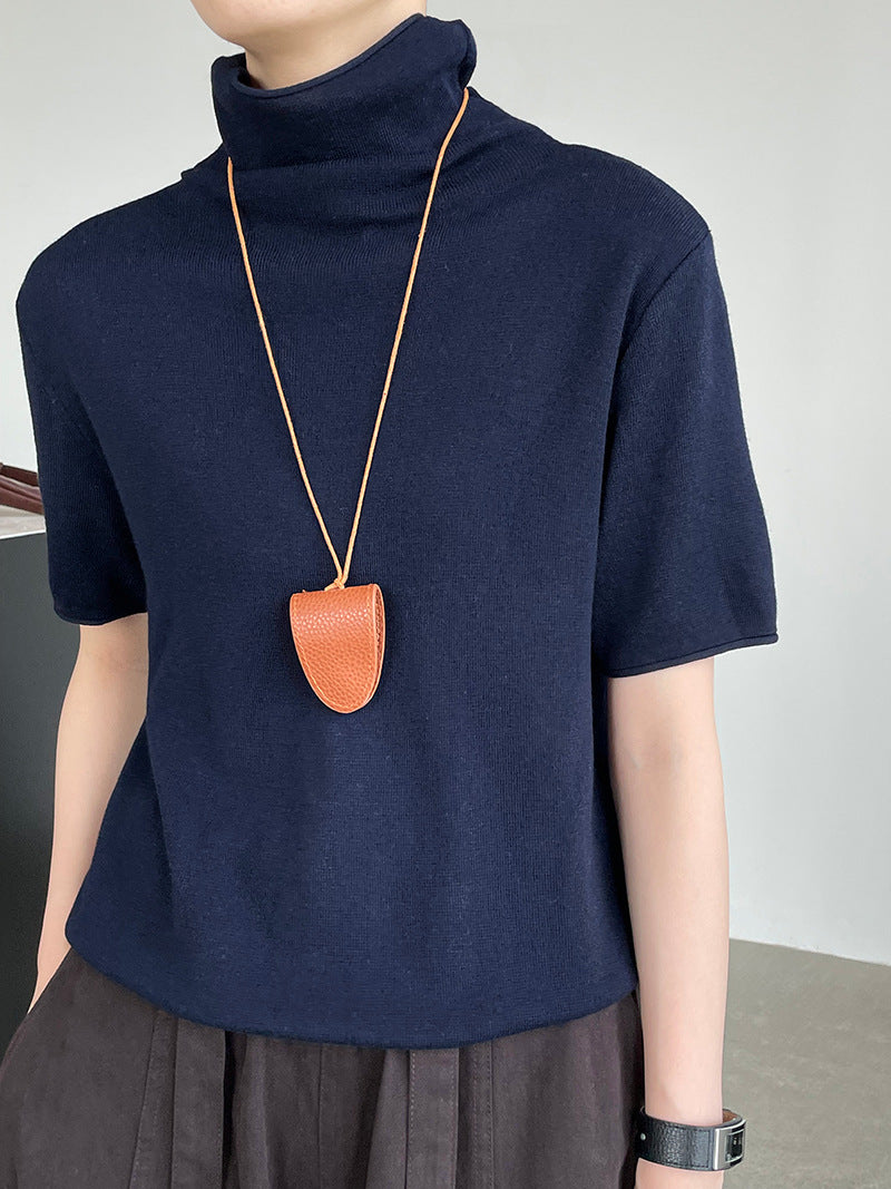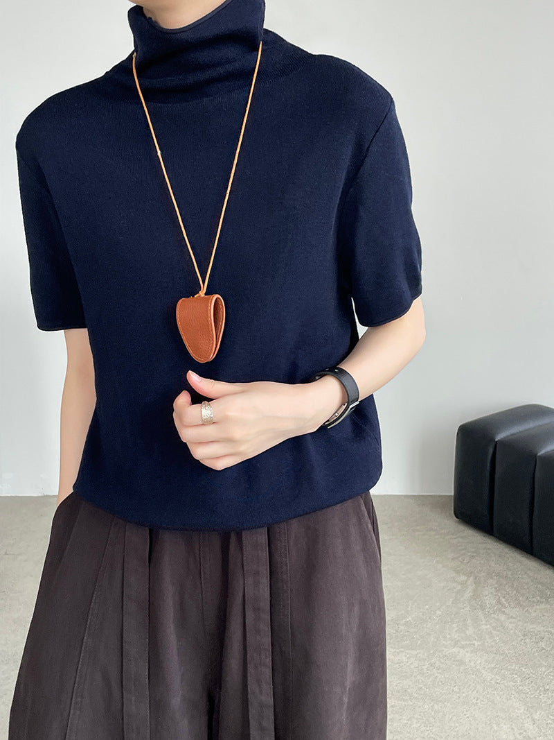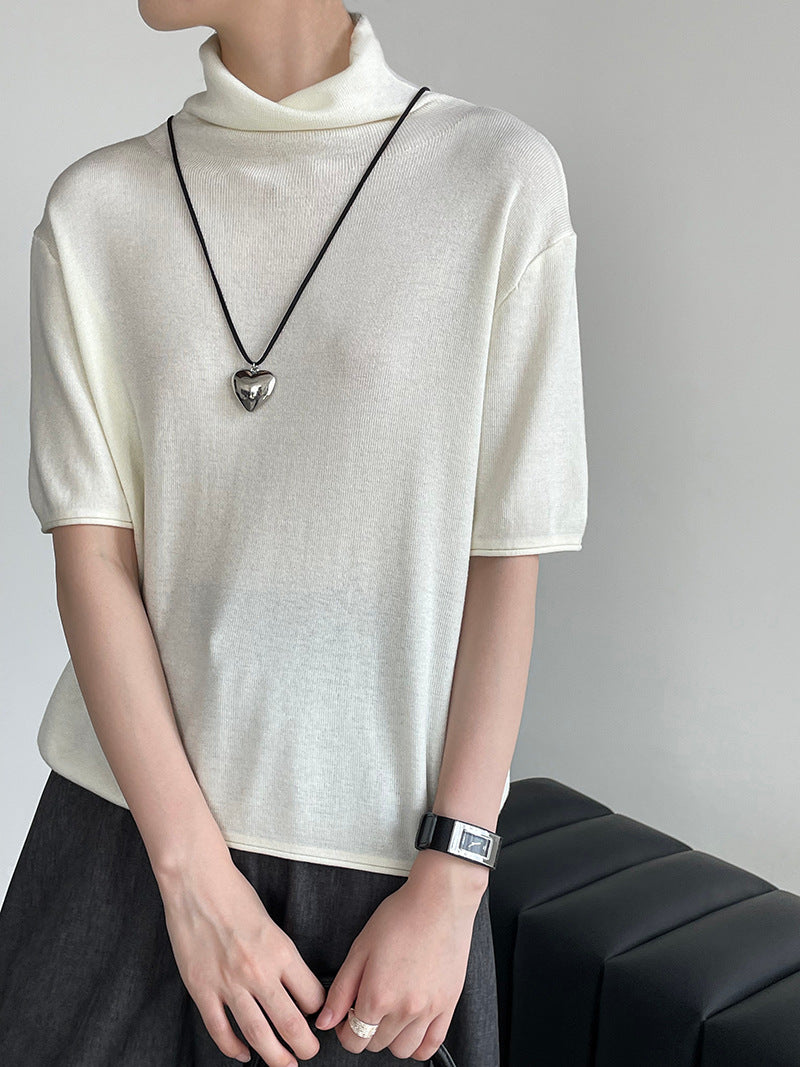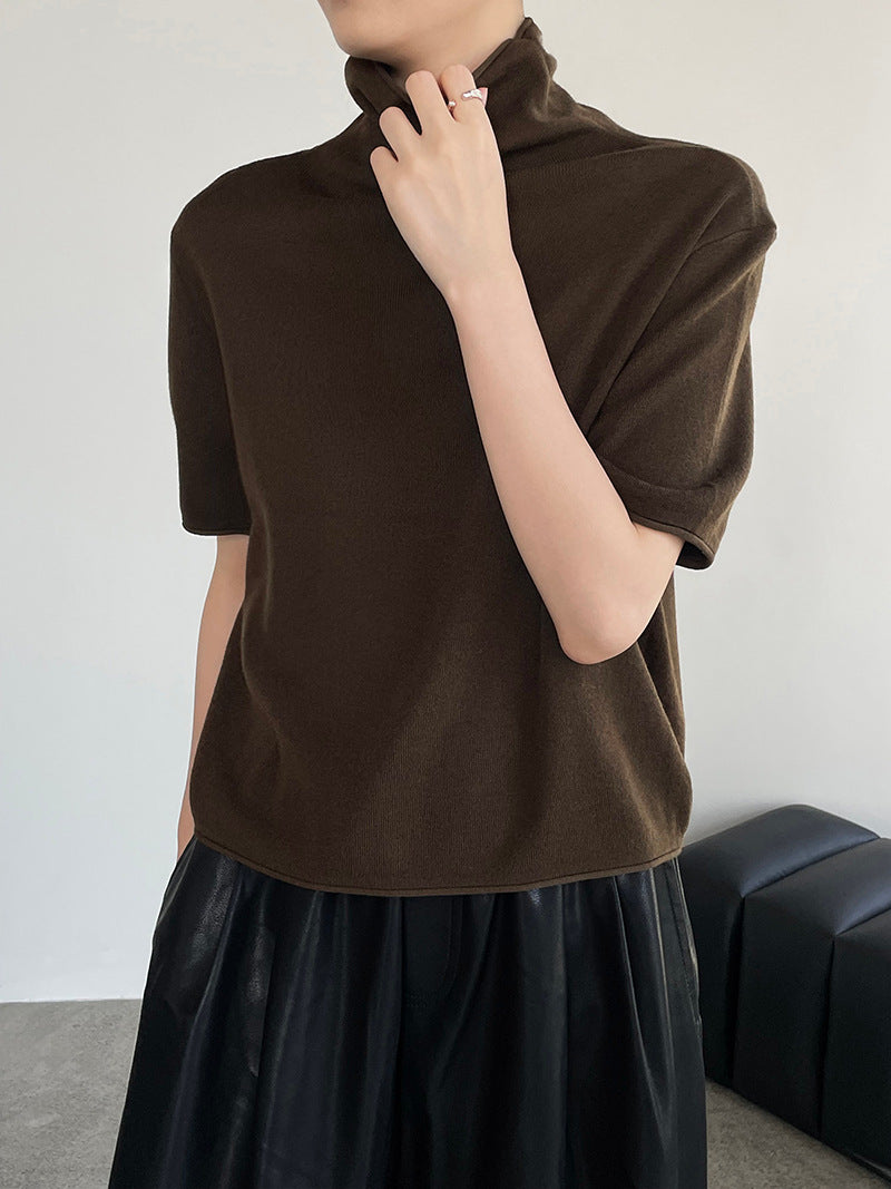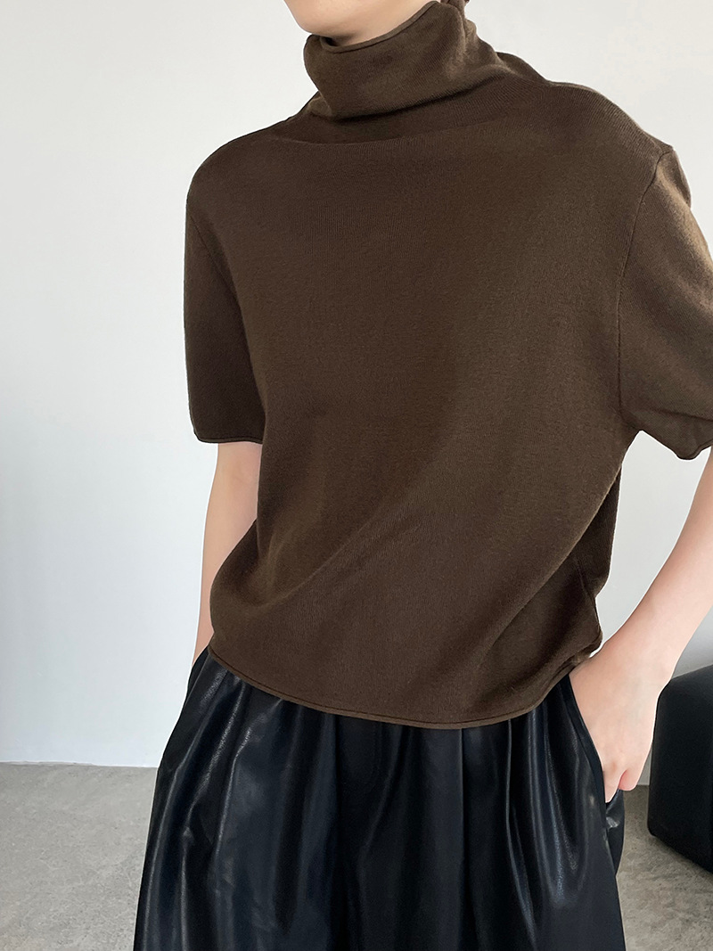 【cimYL921】實拍秋天簡約堆堆領五分袖針織衫250925
