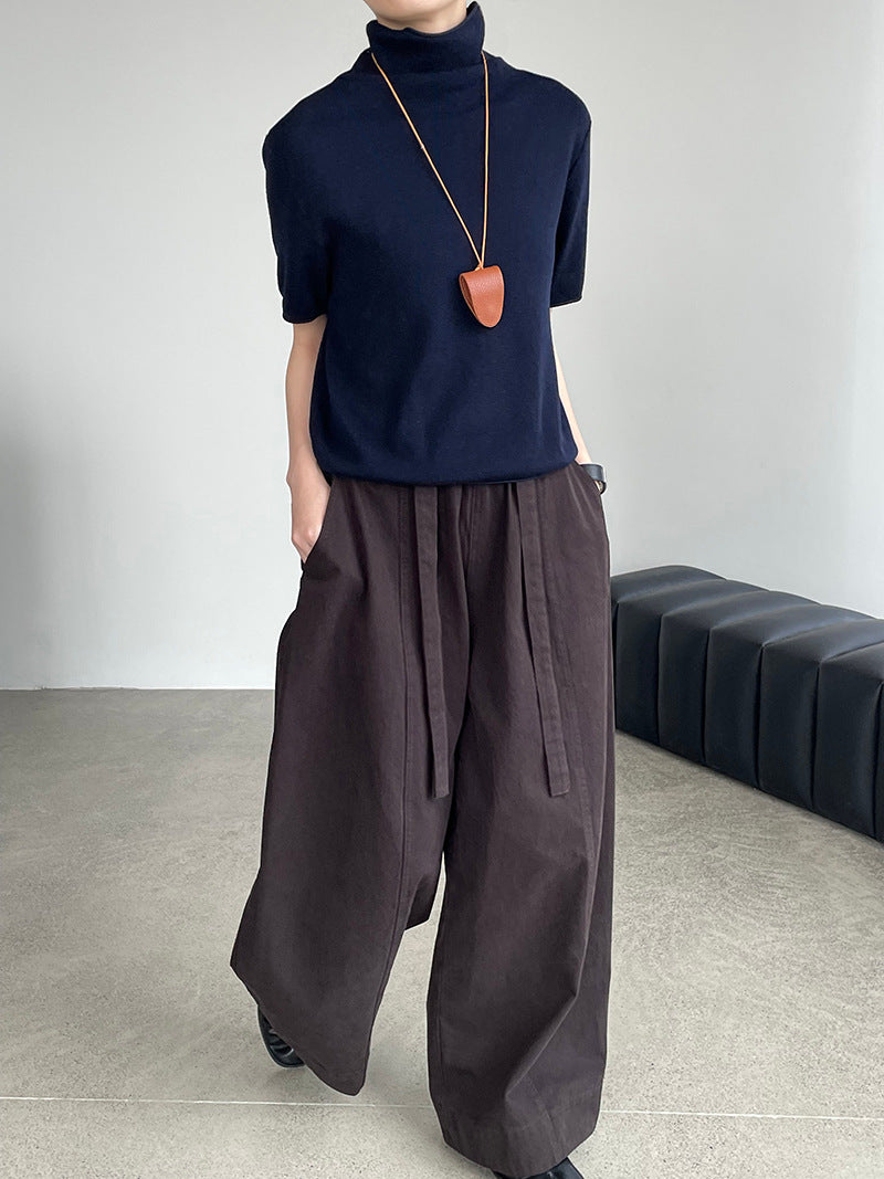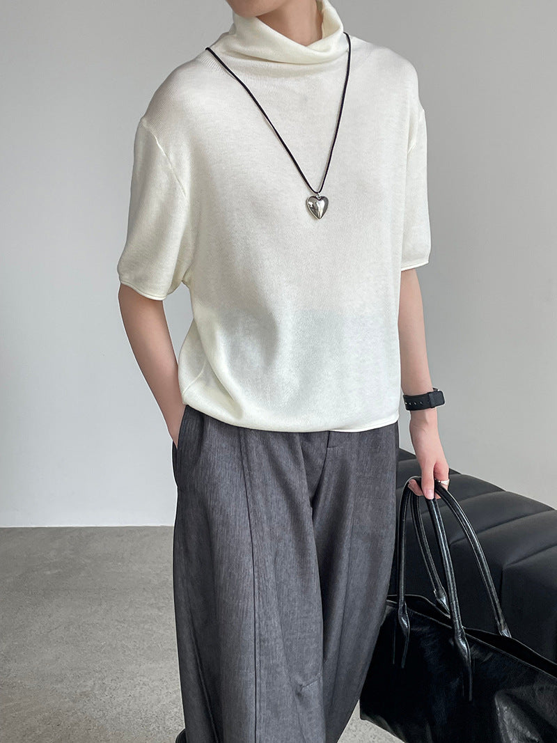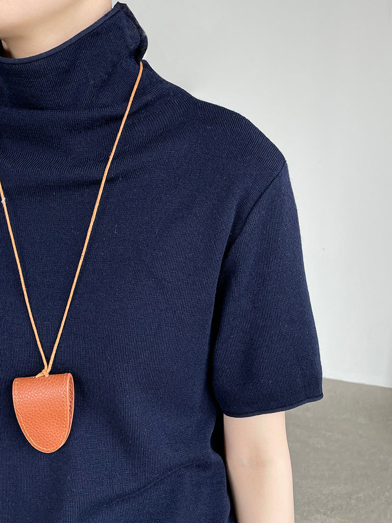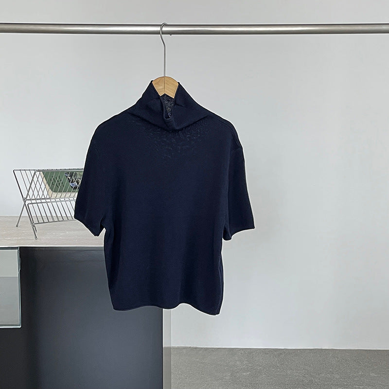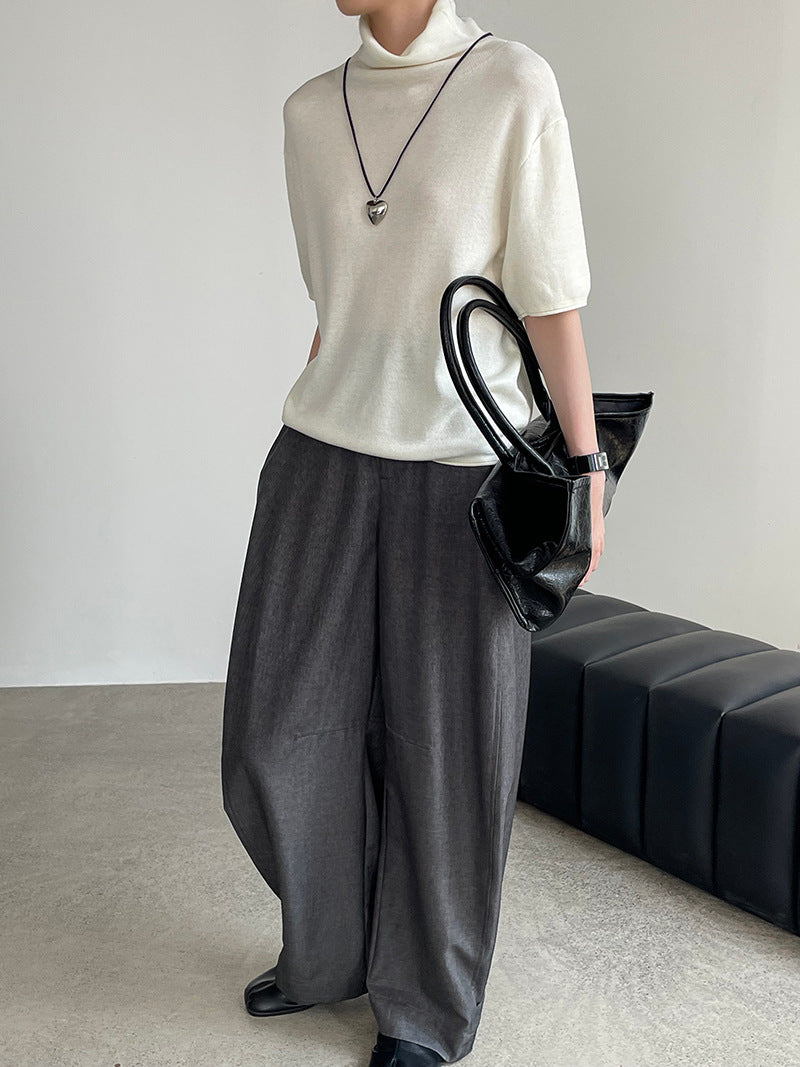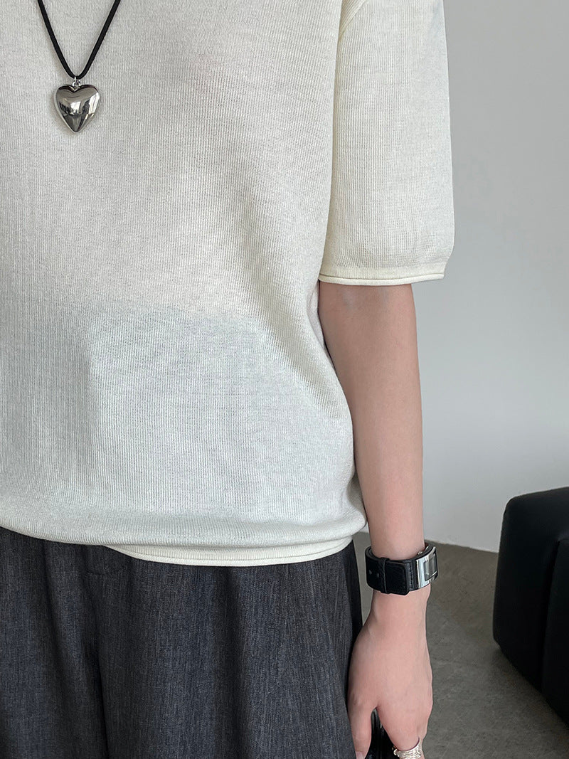 【cimYL921】實拍秋天簡約堆堆領五分袖針織衫250925