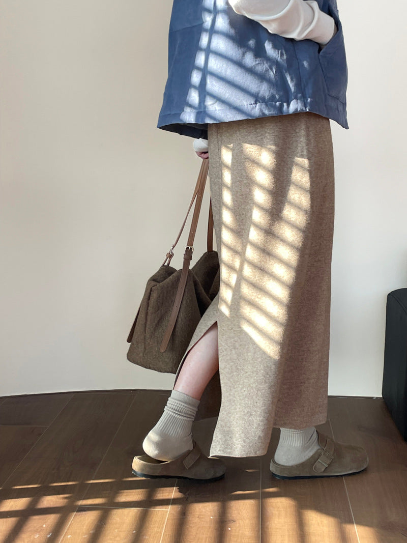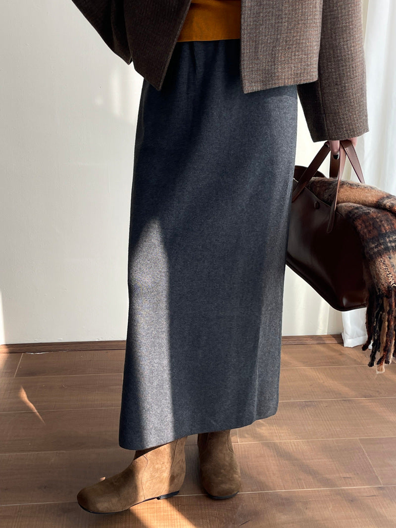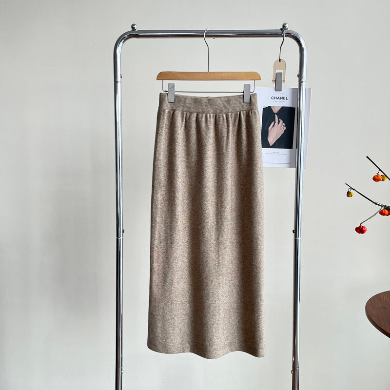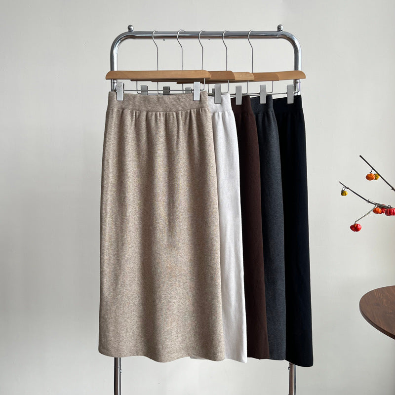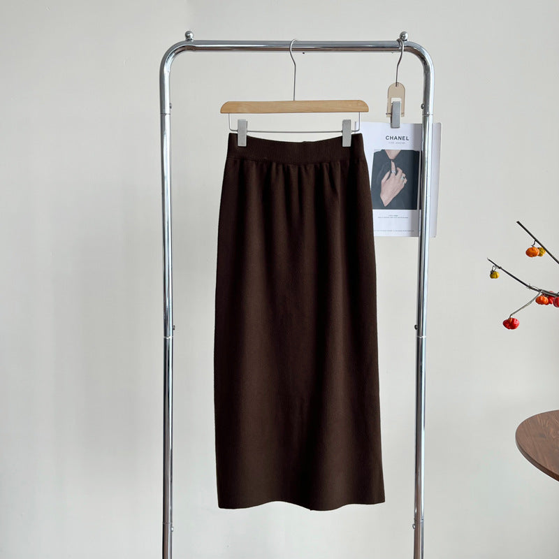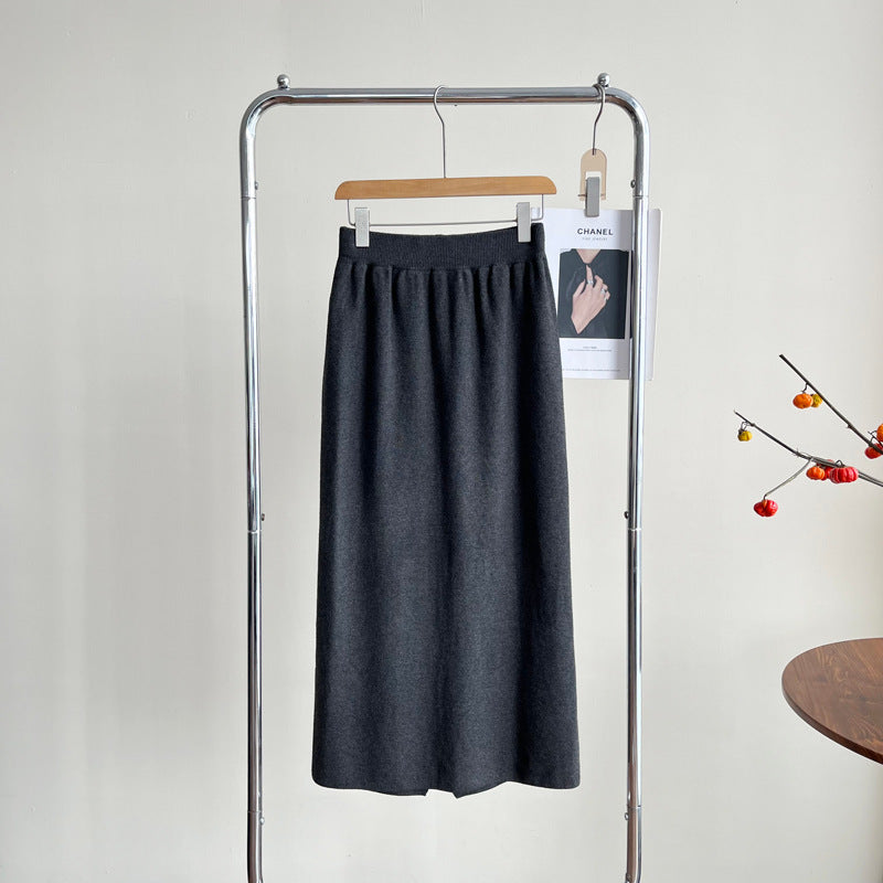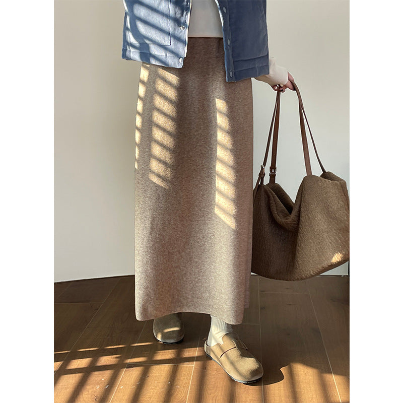 【cimYL960】實拍顯瘦百搭鬆緊腰後開叉針織裙241106