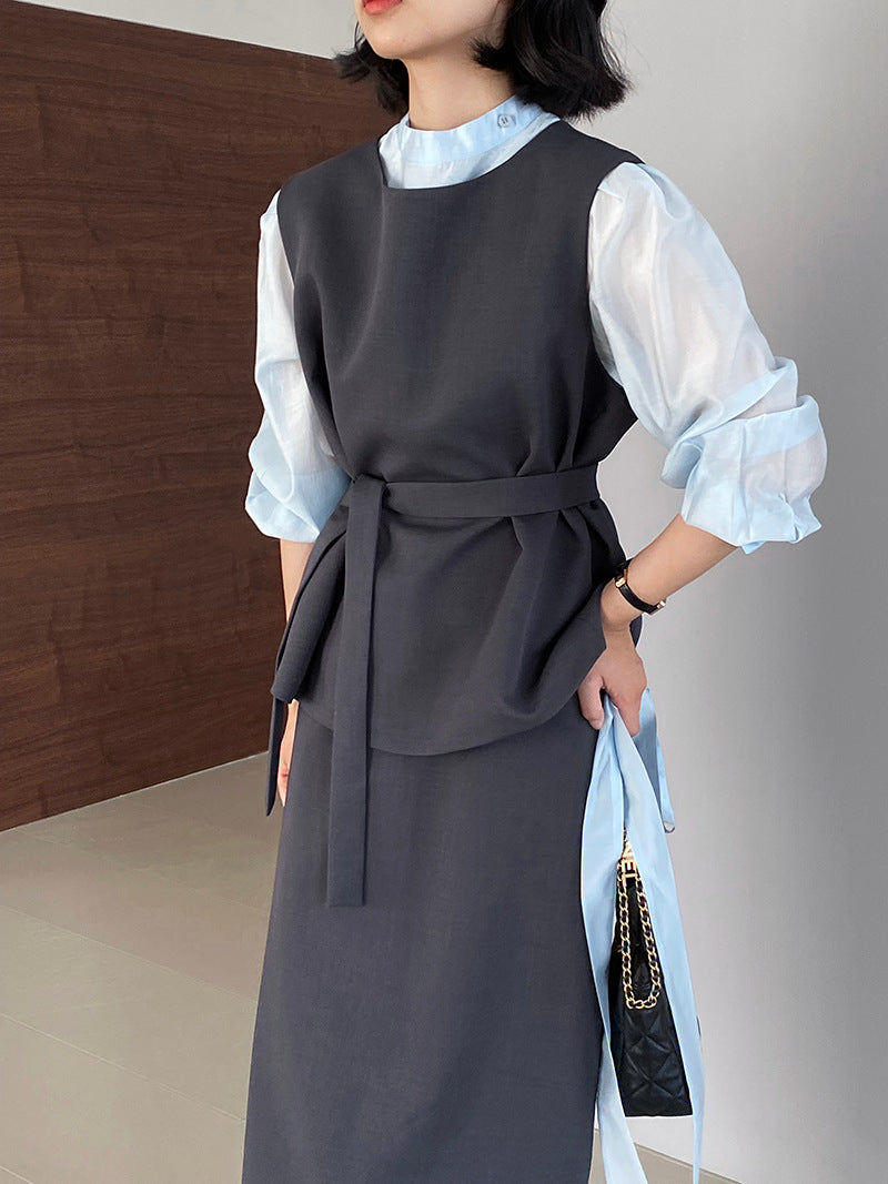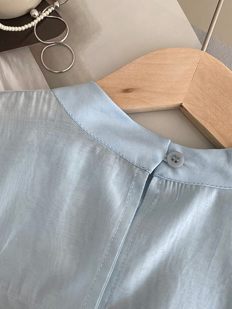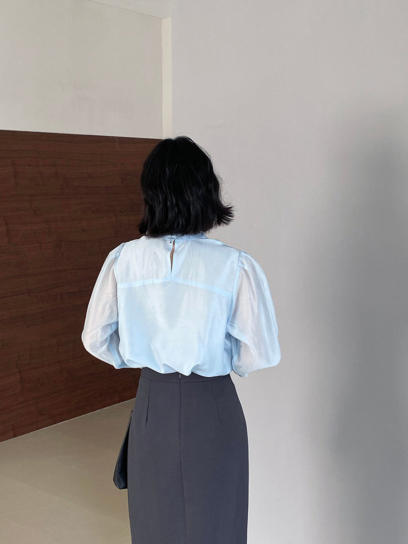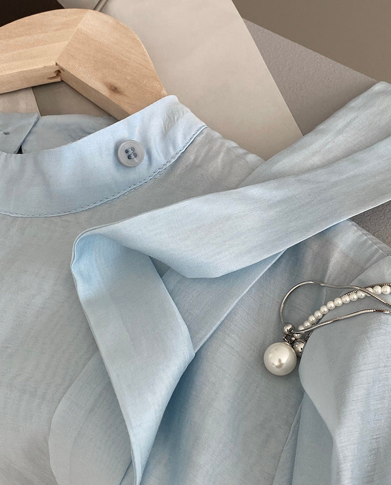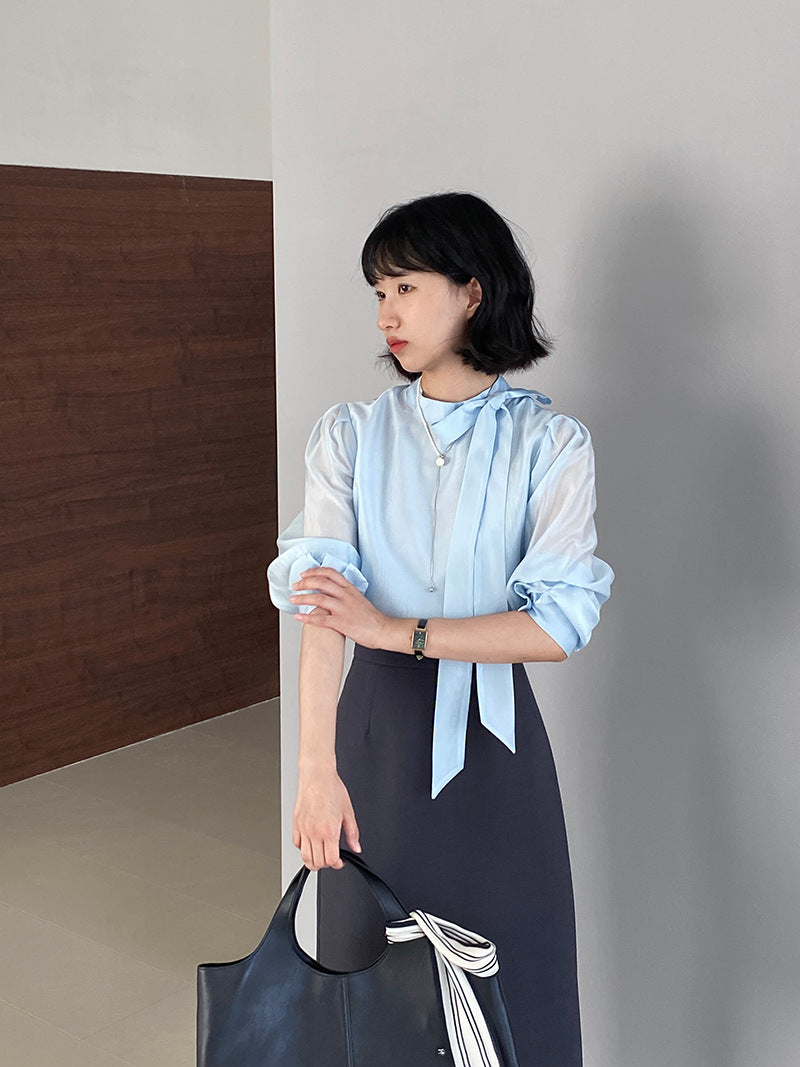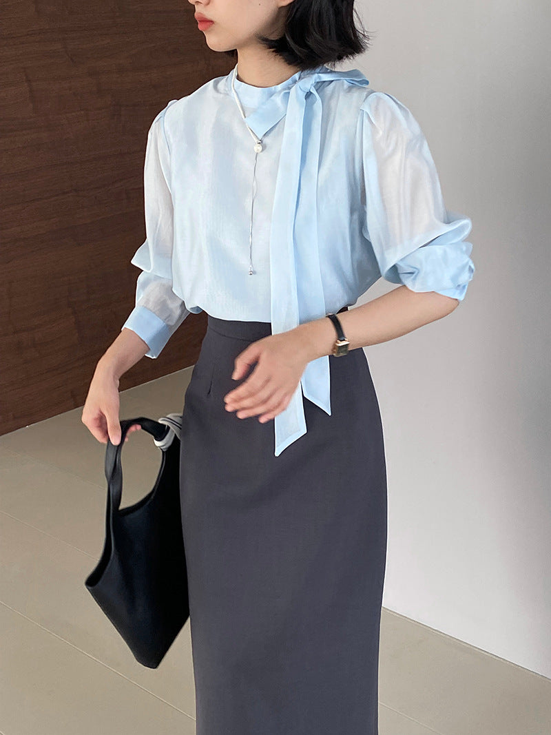 【cimz1186】韓系知性通勤🤍質感蝴蝶結飄帶天絲半高領長袖襯衫260319