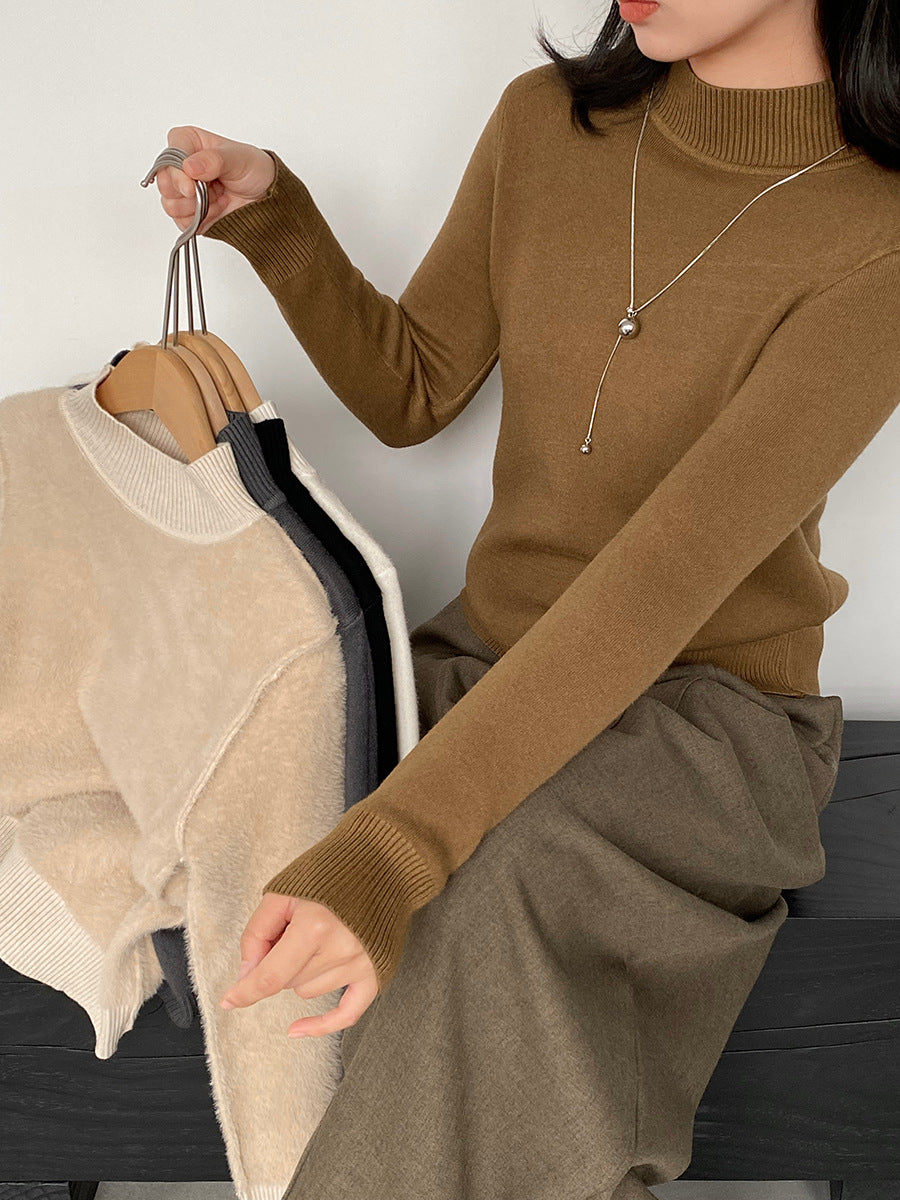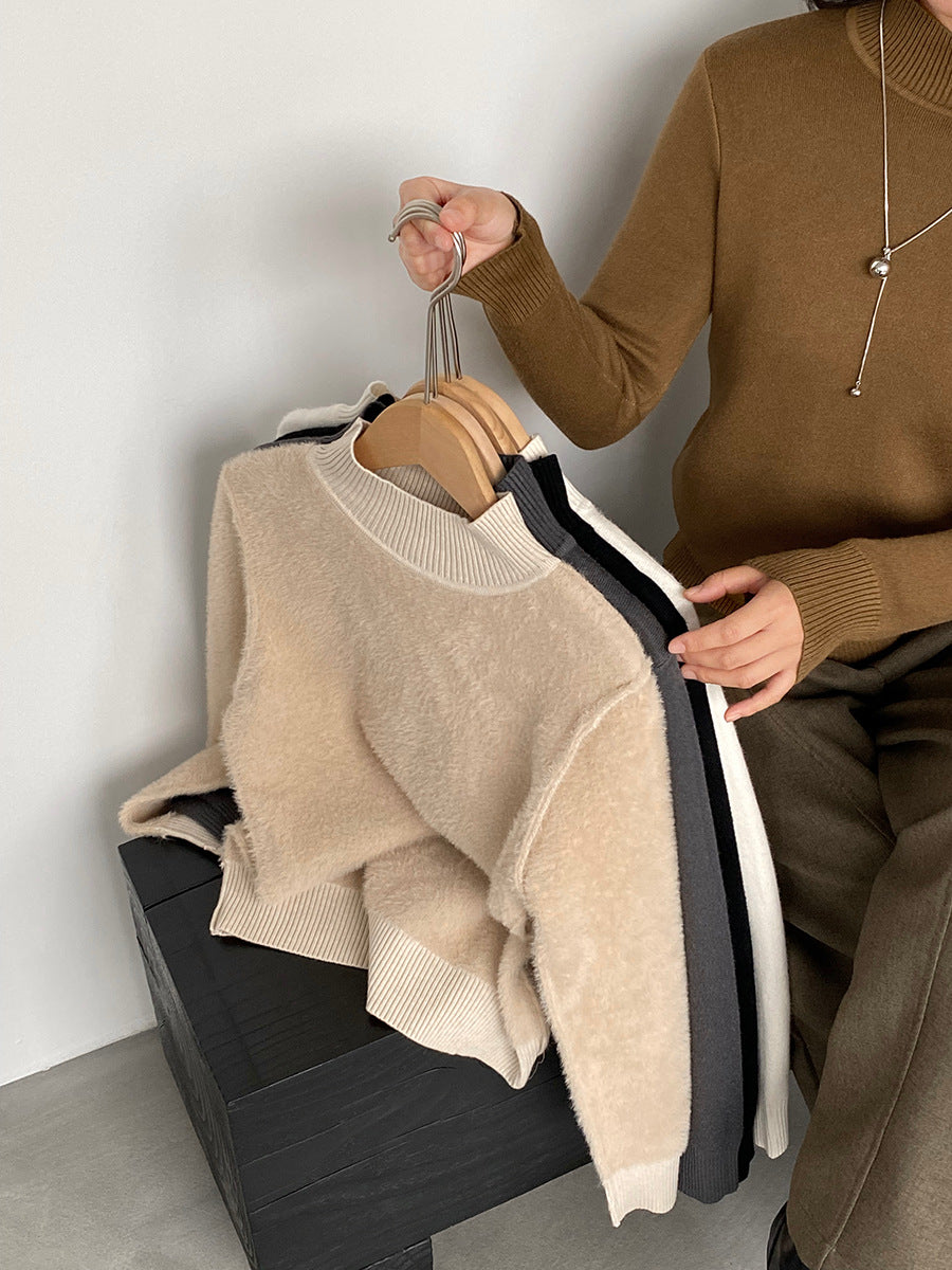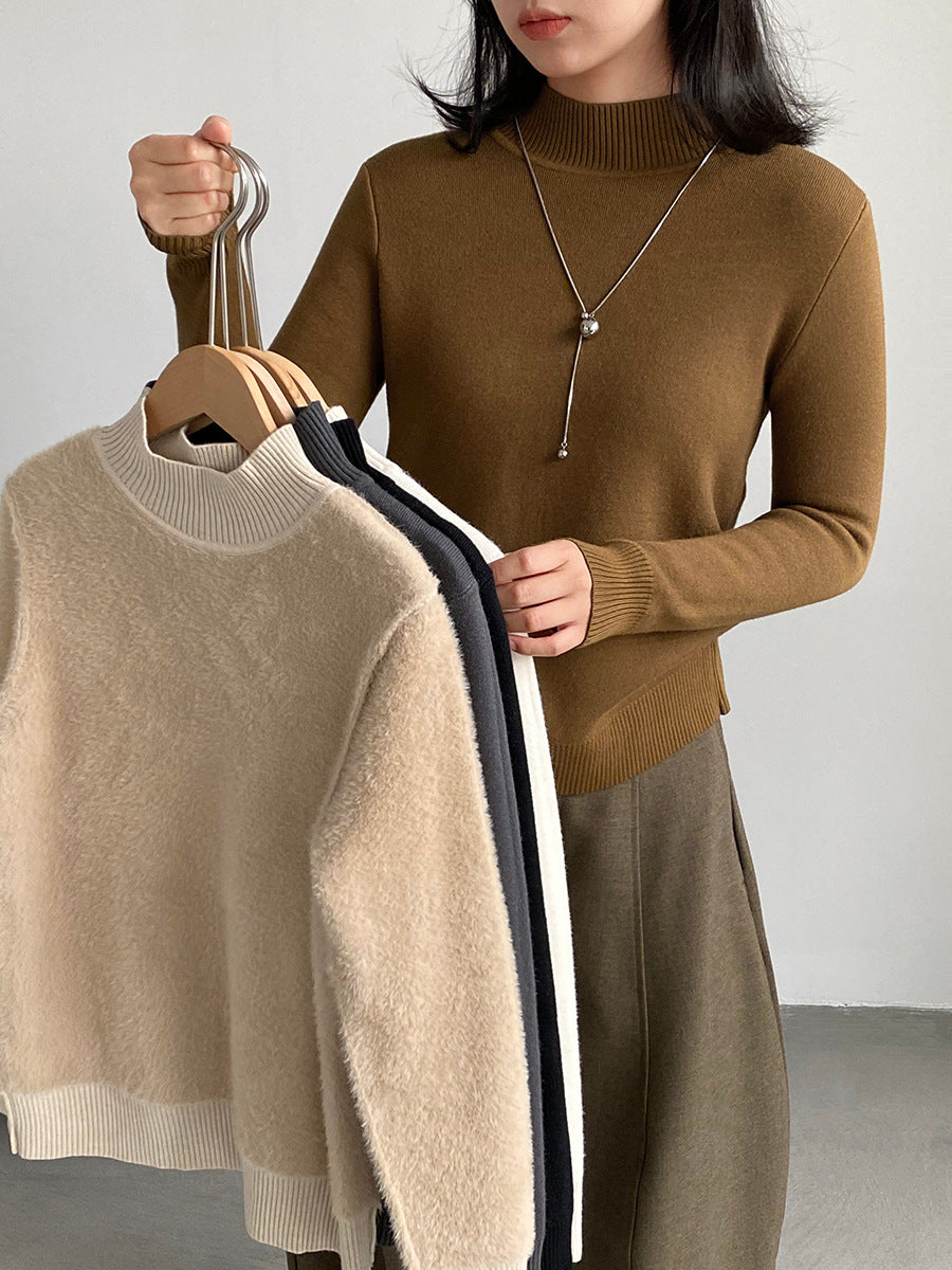 【cimz1190】實拍一體絨加絨加厚保暖小高領針織衫251120