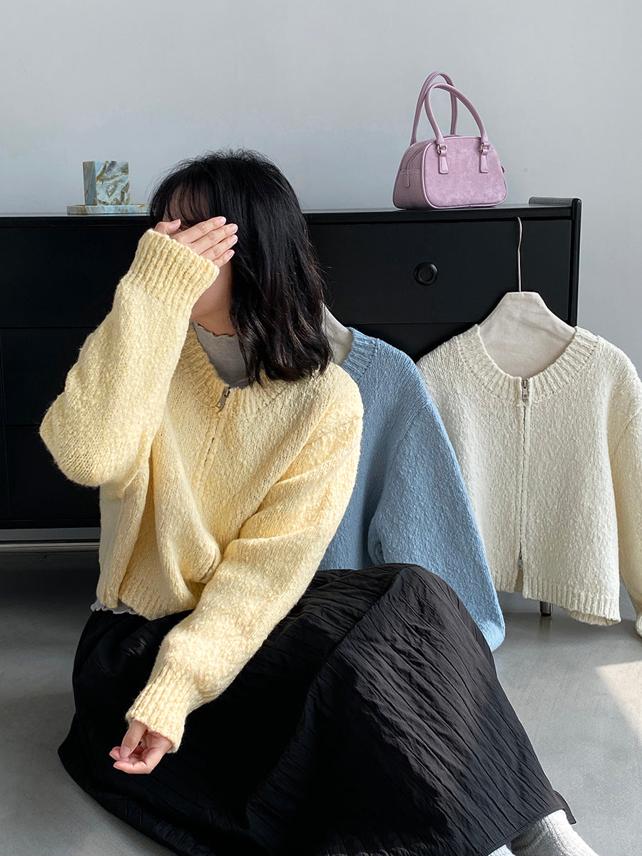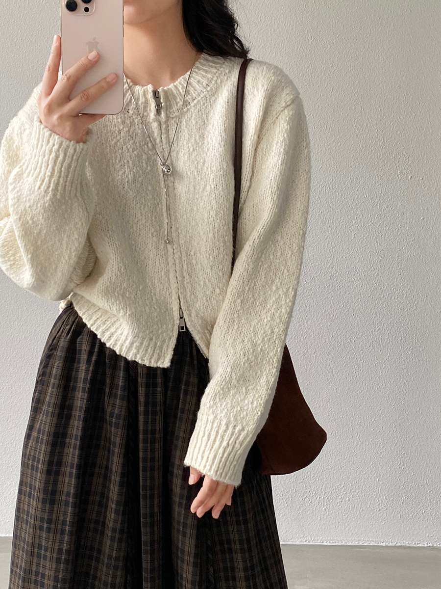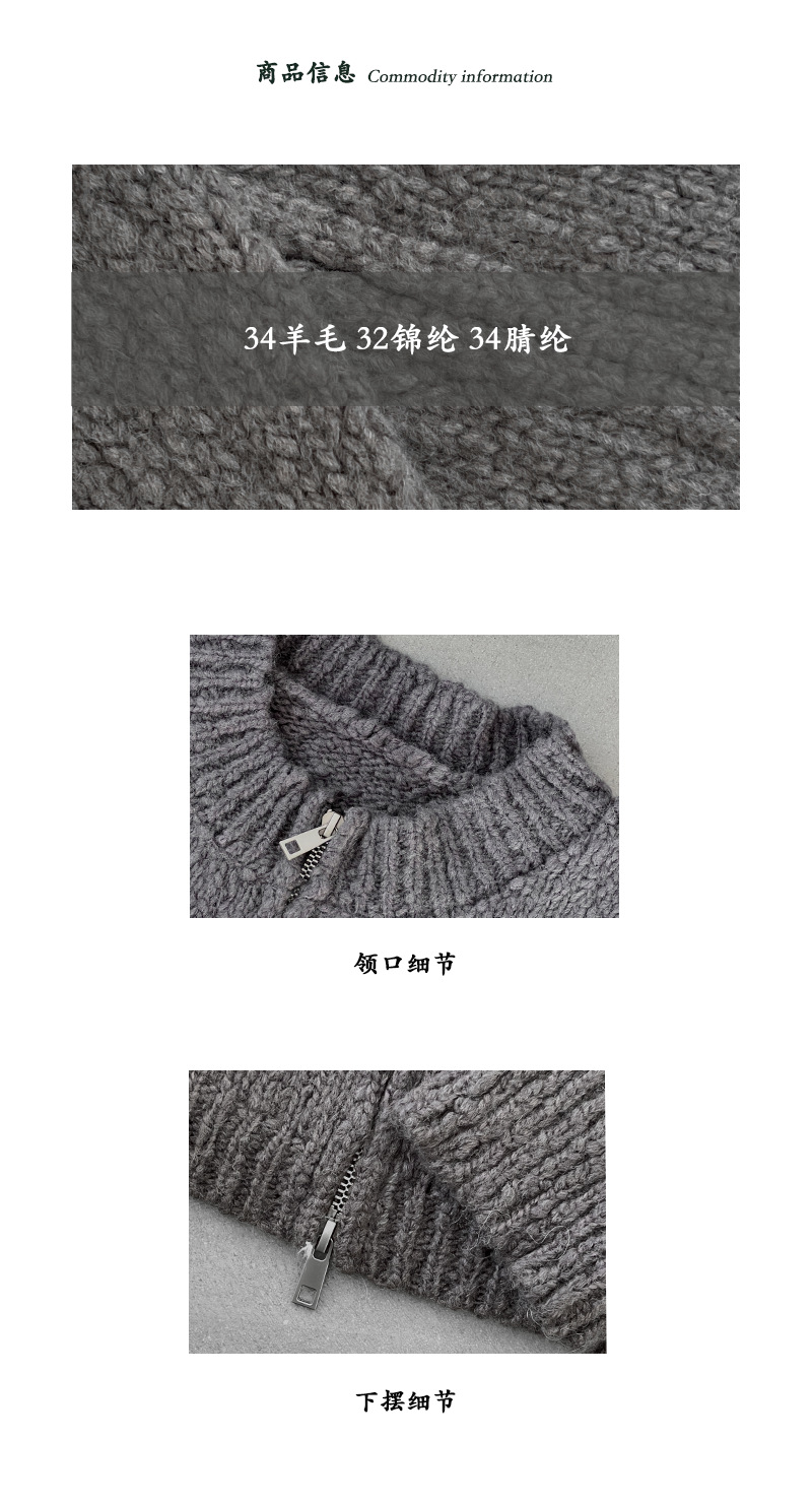 【cimz1386】實拍雙頭拉鍊羊毛保暖針織外套(羊毛34%)251201