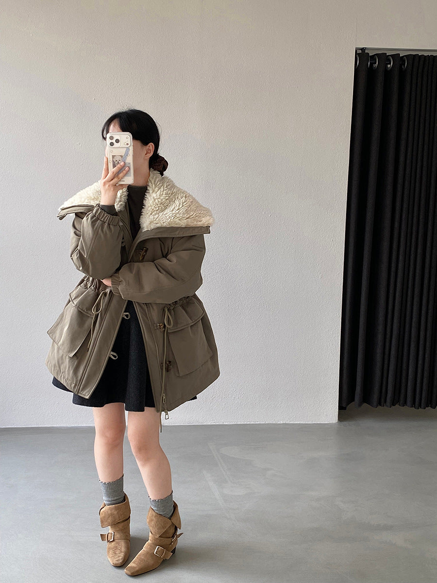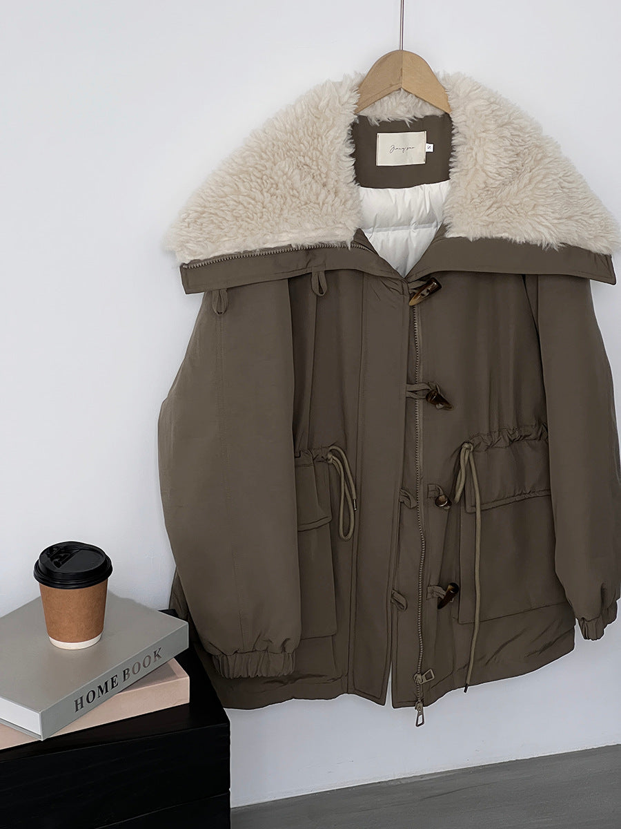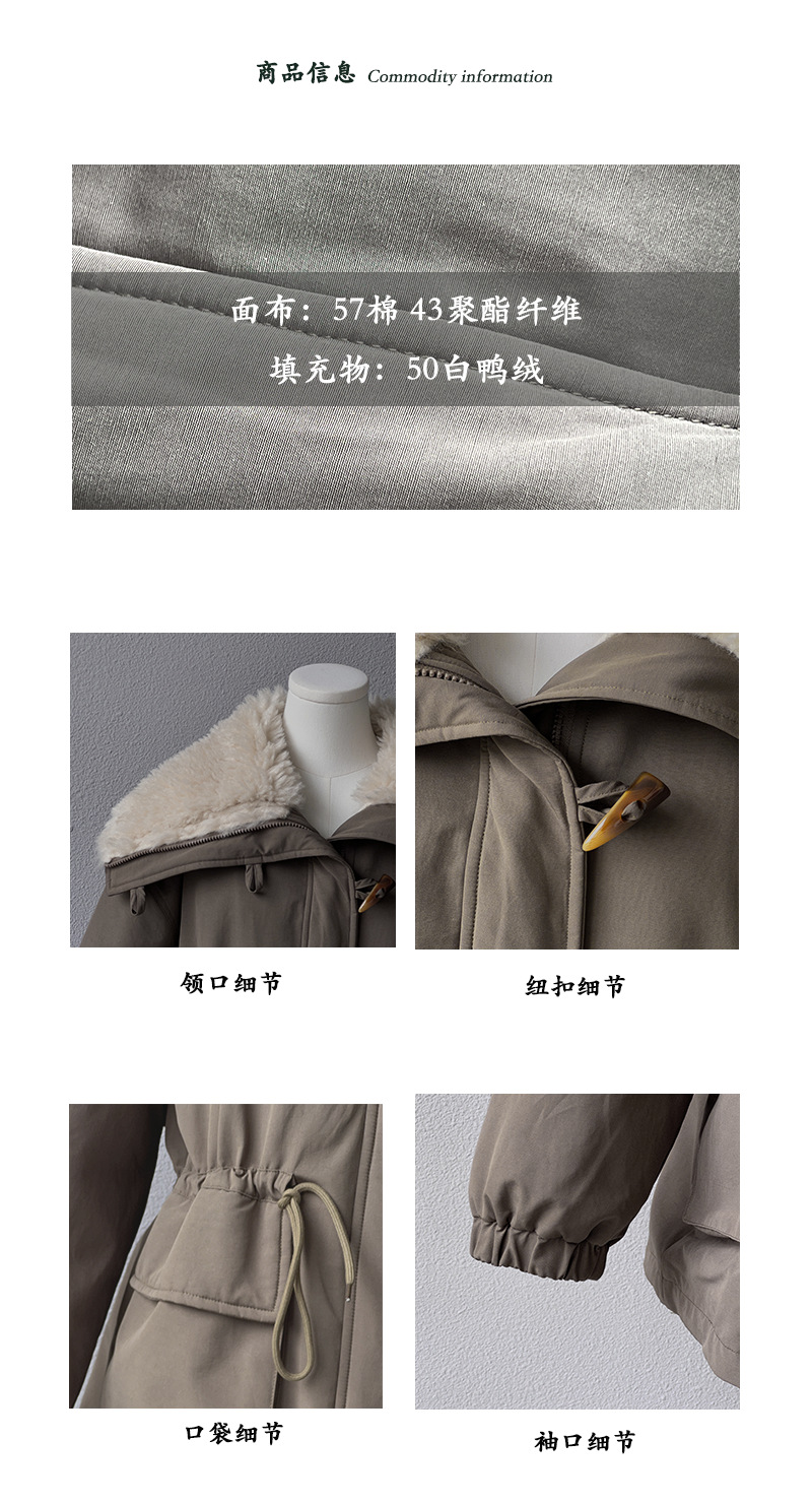 【cimz1727】實拍行走的火爐重工牛角扣大翻領工裝羽絨外套大衣(白鴨絨50)251120
