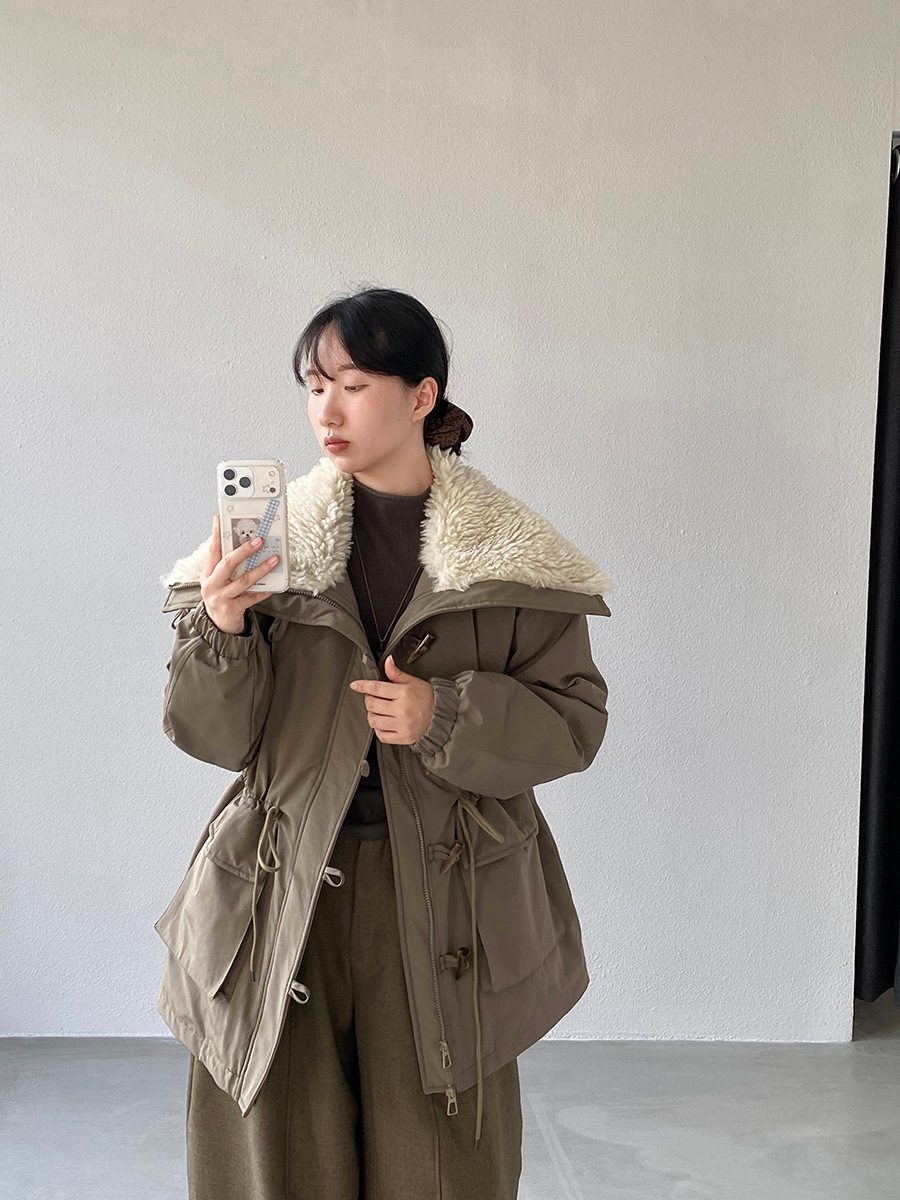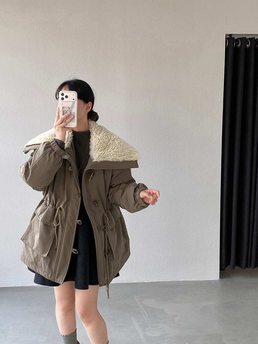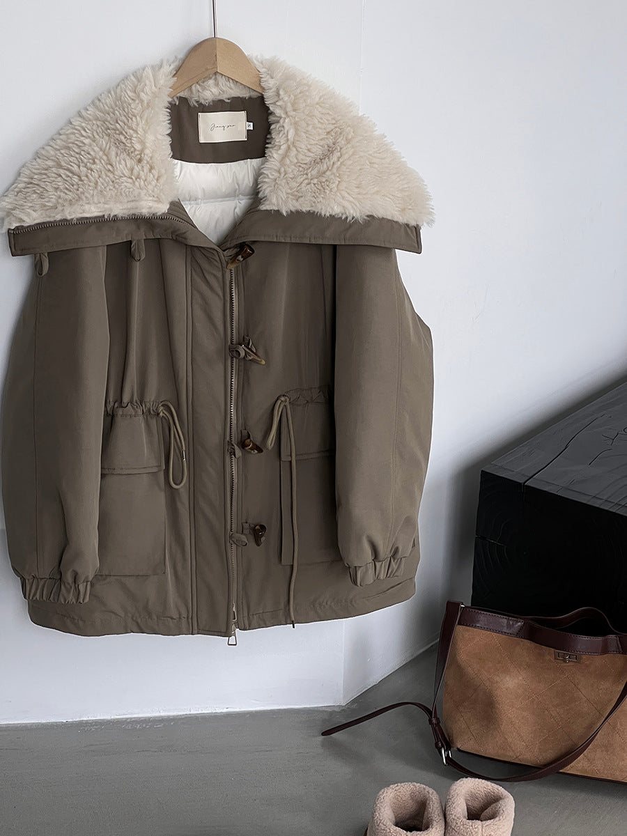 【cimz1727】實拍行走的火爐重工牛角扣大翻領工裝羽絨外套大衣(白鴨絨50)251120