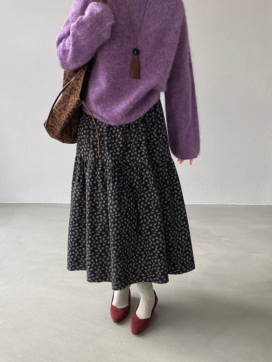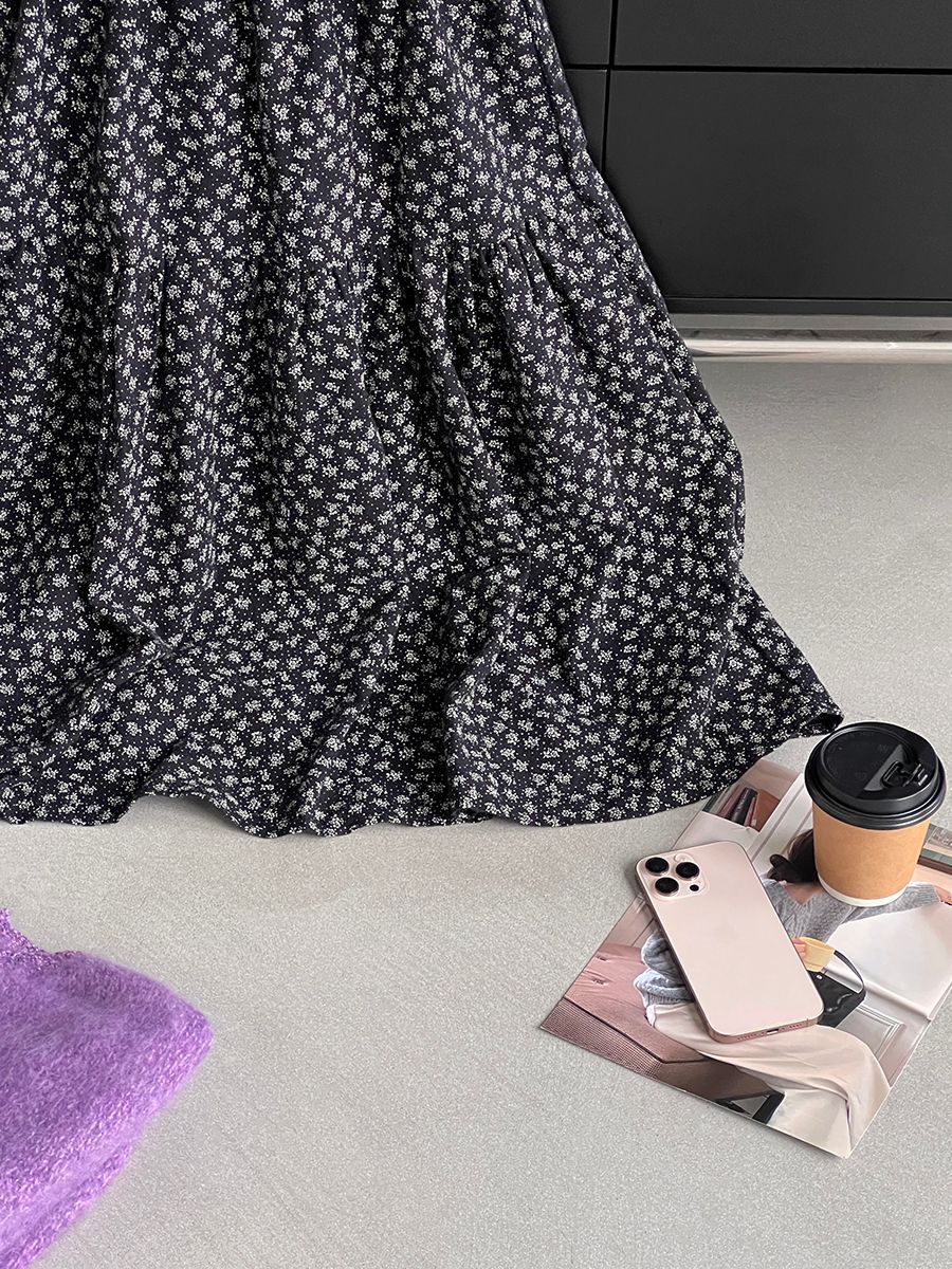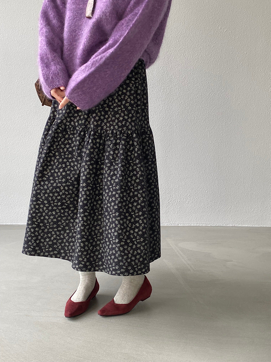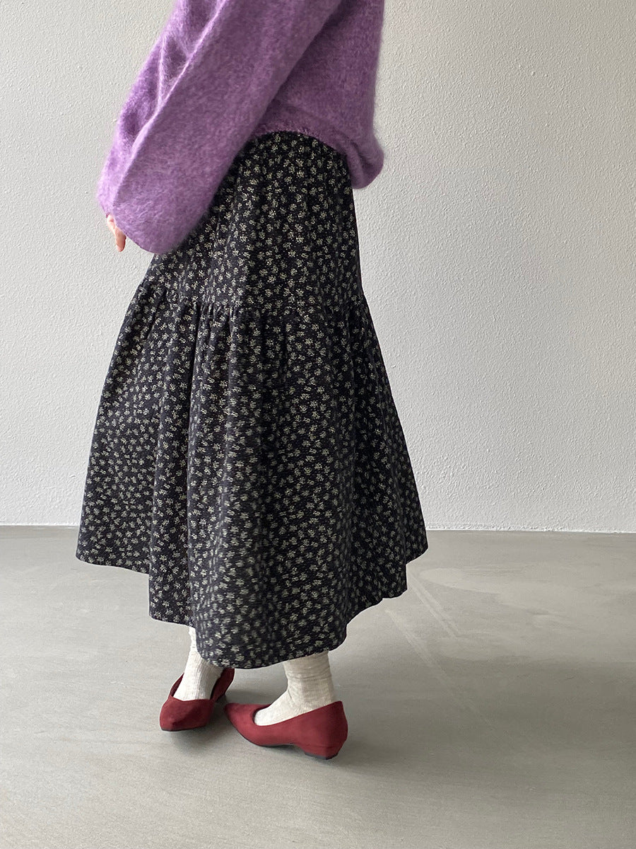 【cimz1729】實拍復古時髦碎花加絨長裙251128