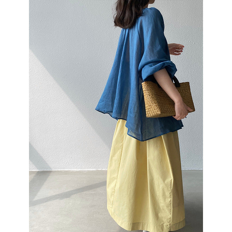 【cimz1815】實拍日系慵懶氛圍感✨百搭壓褶氣球花苞廓形長裙260409