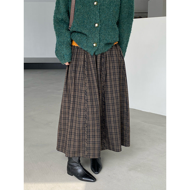 【cimz6381】實拍日系復古格紋內里加絨加厚A字裙251128
