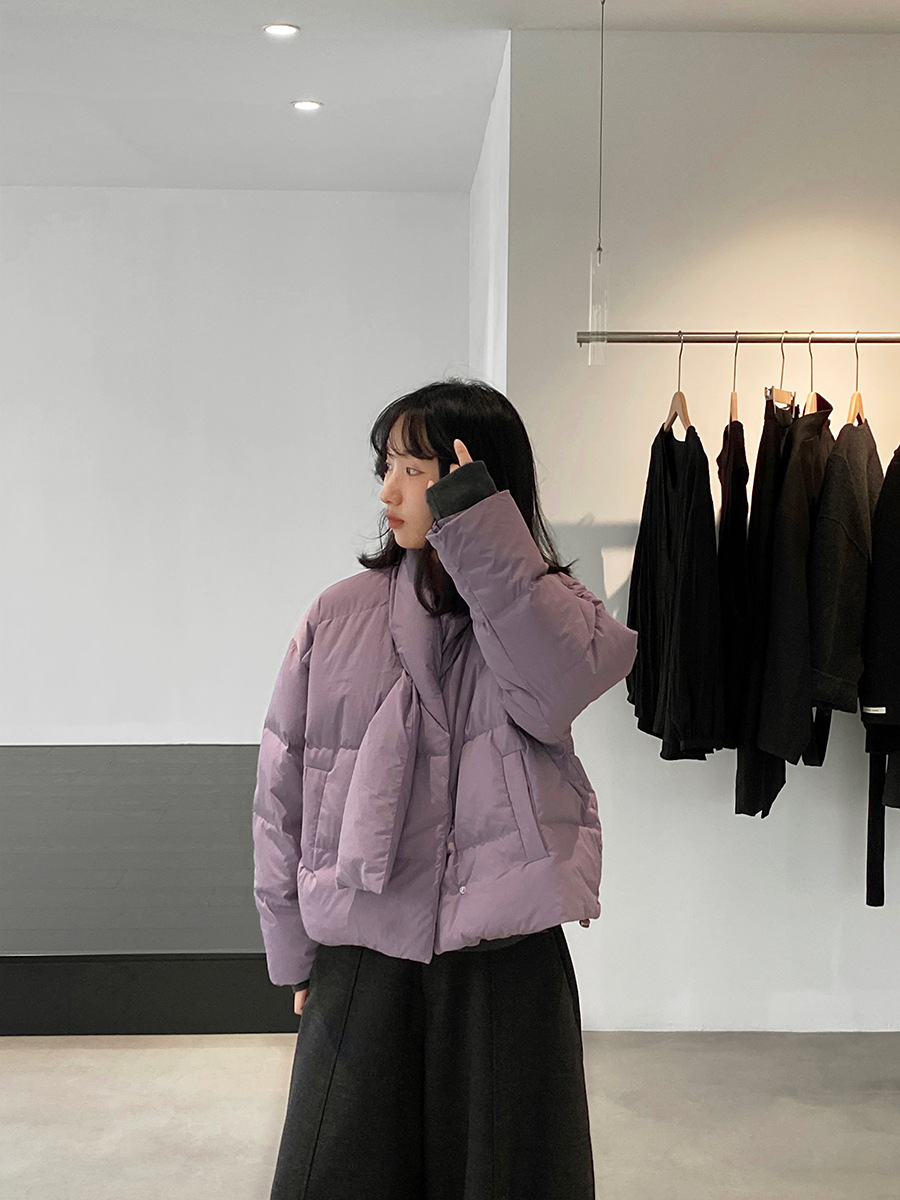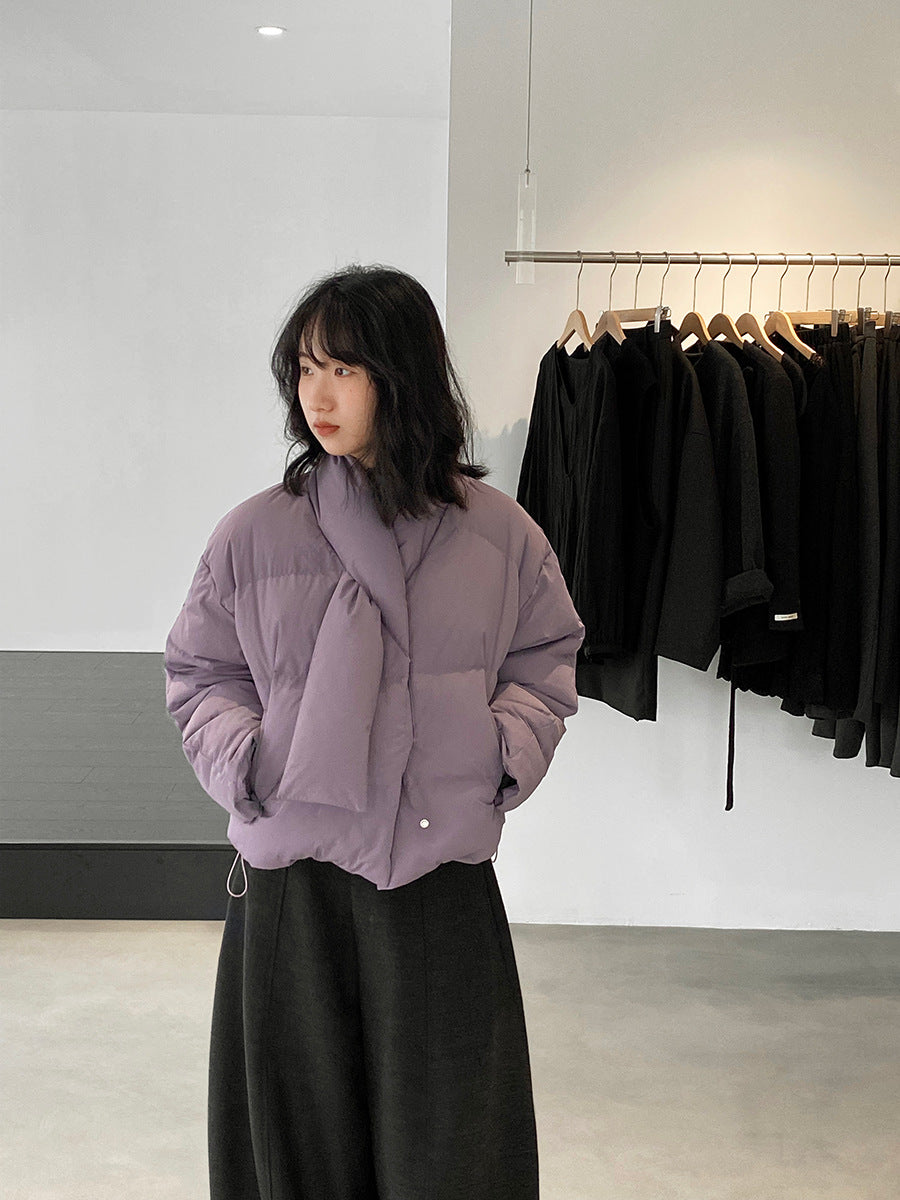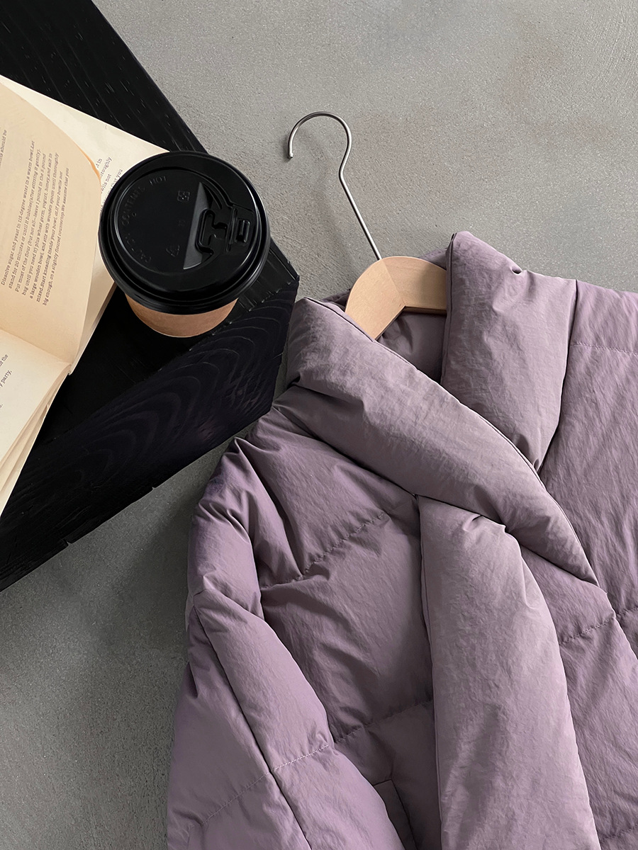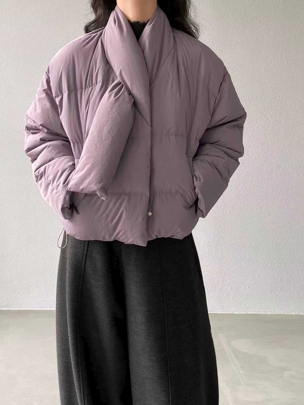 【cimz6385】實拍氣質芋色保暖白鴨絨外套+圍脖(白鴨絨90)251120