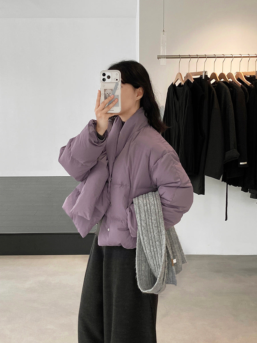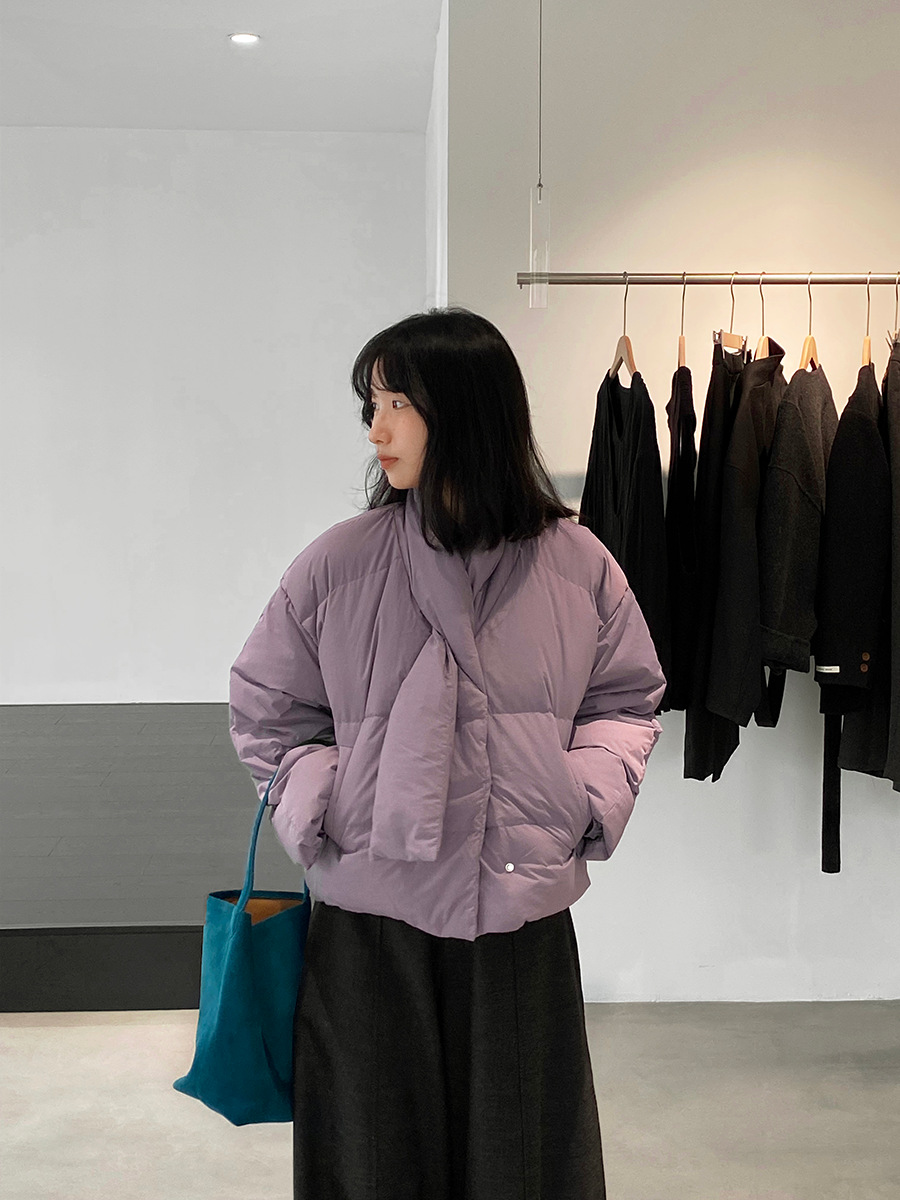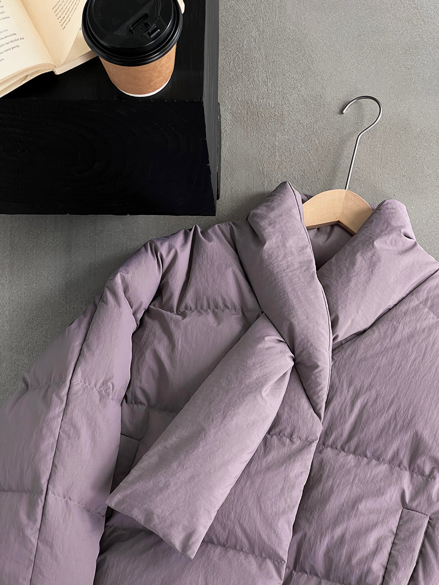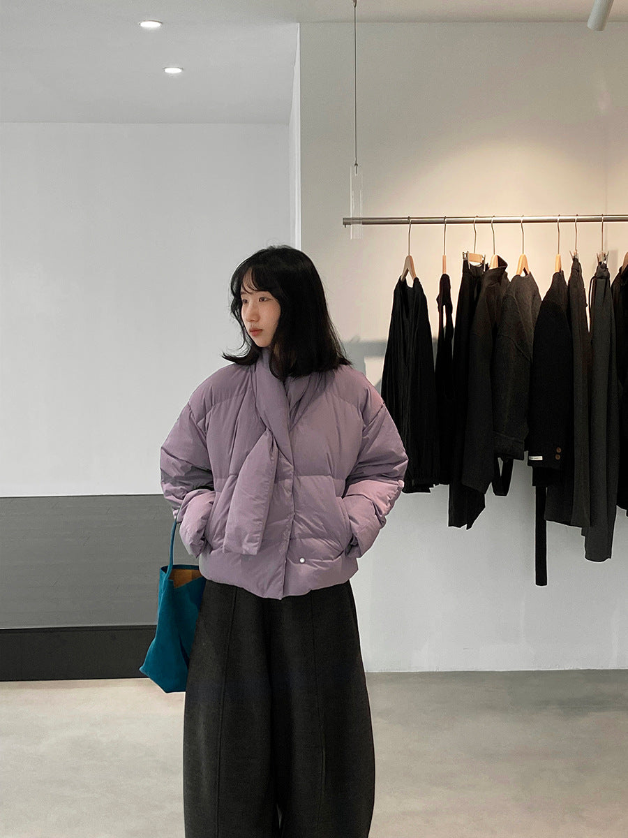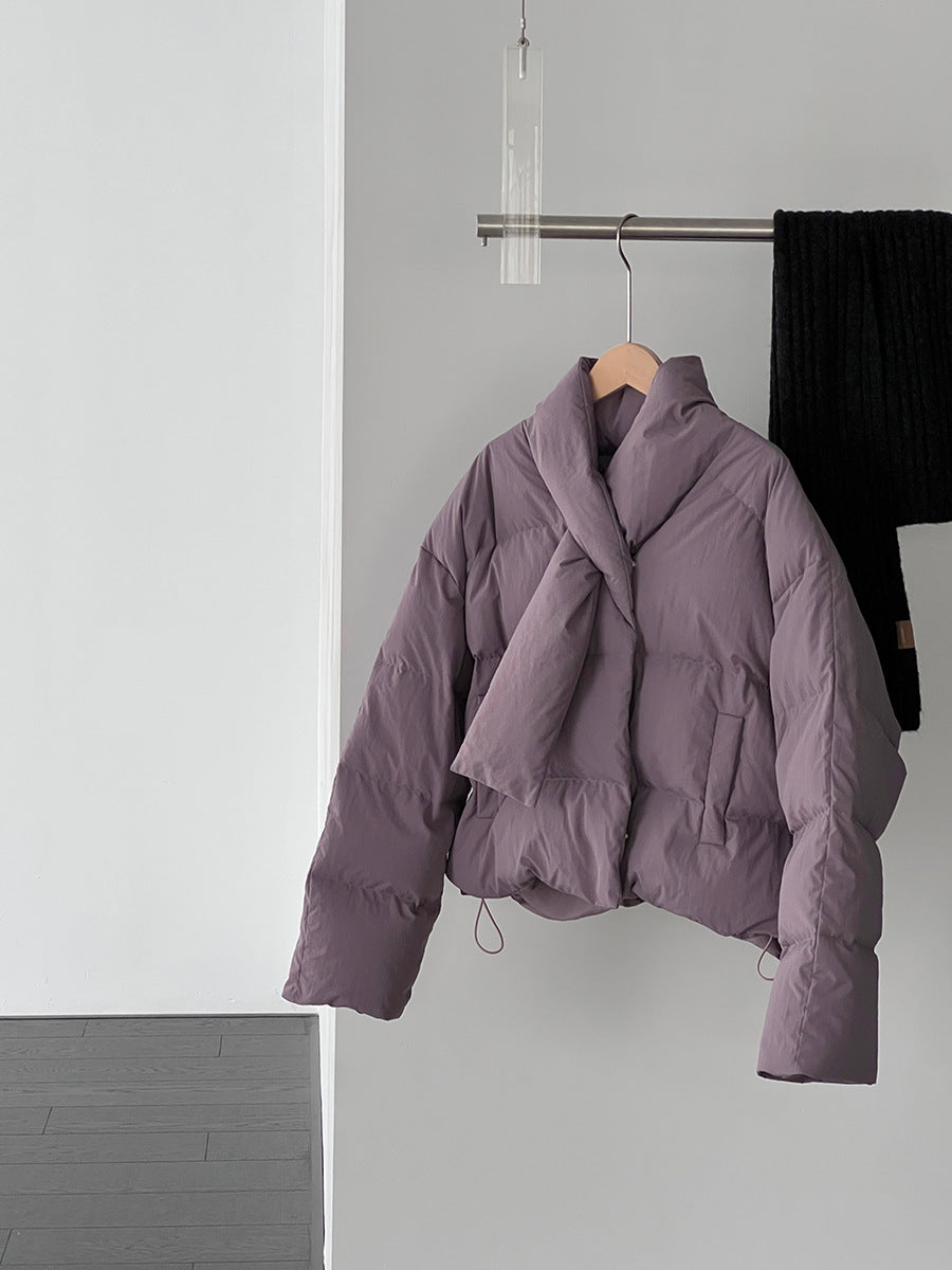 【cimz6385】實拍氣質芋色保暖白鴨絨外套+圍脖(白鴨絨90)251120
