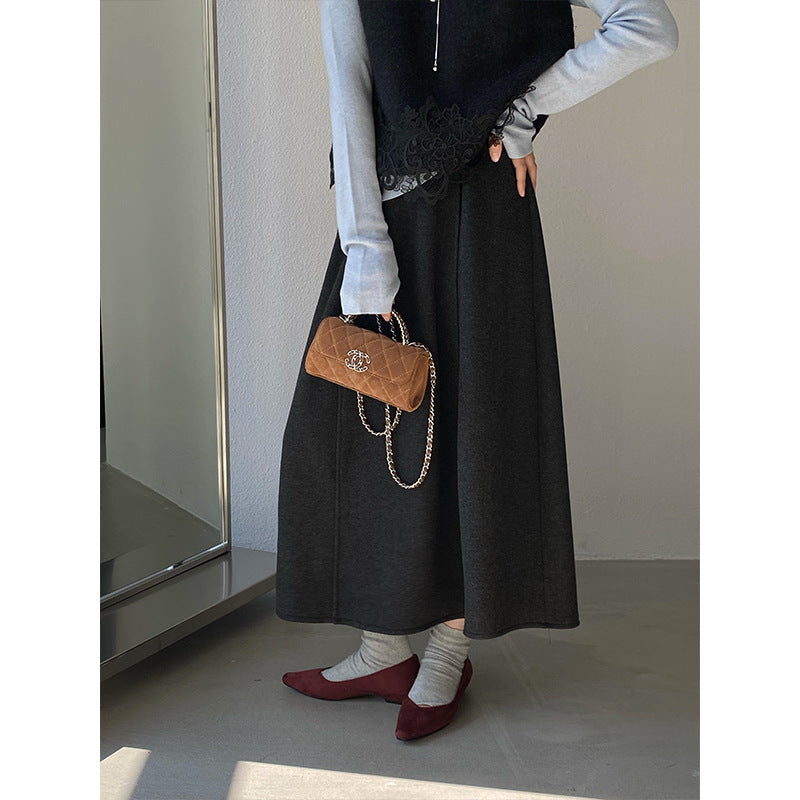 【cimz6392】實拍極簡內加絨加厚高腰毛呢長裙(羊毛3)251120