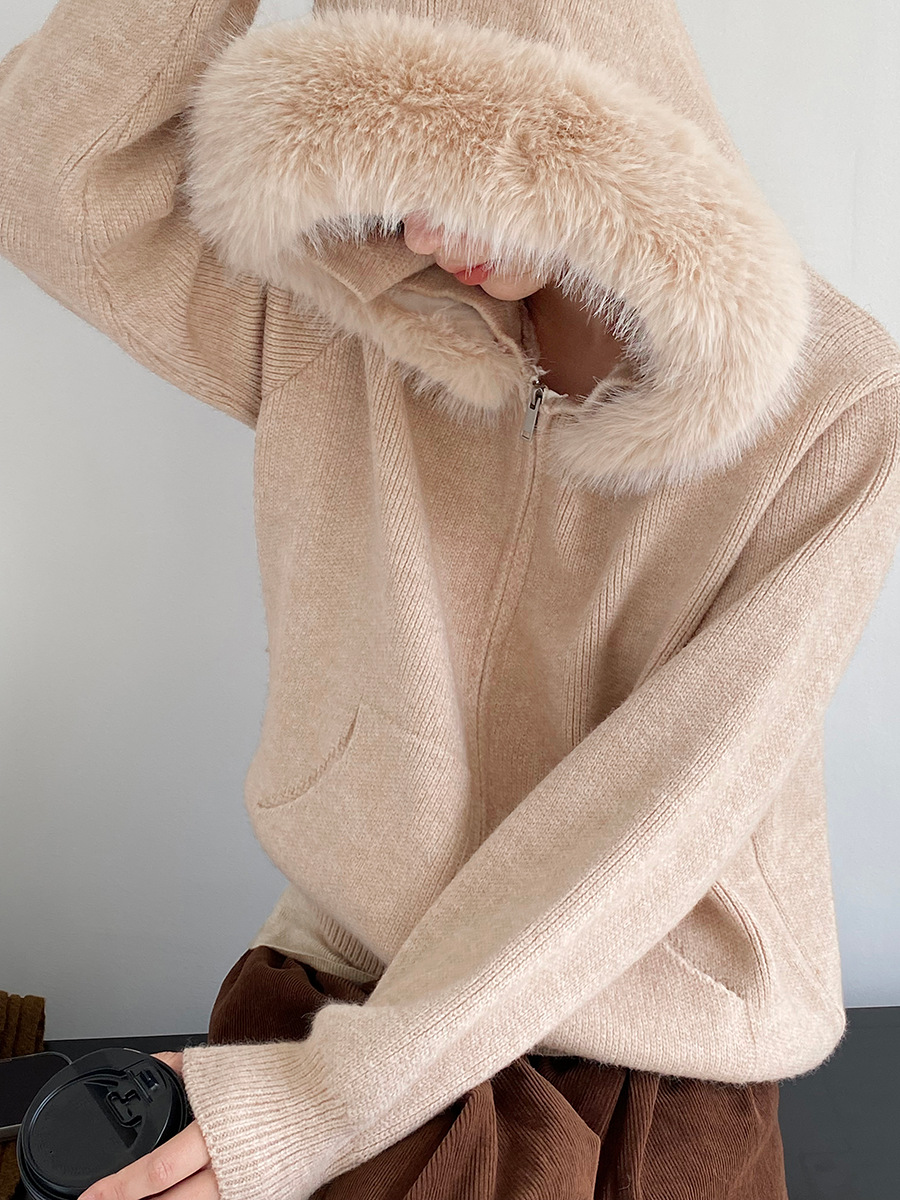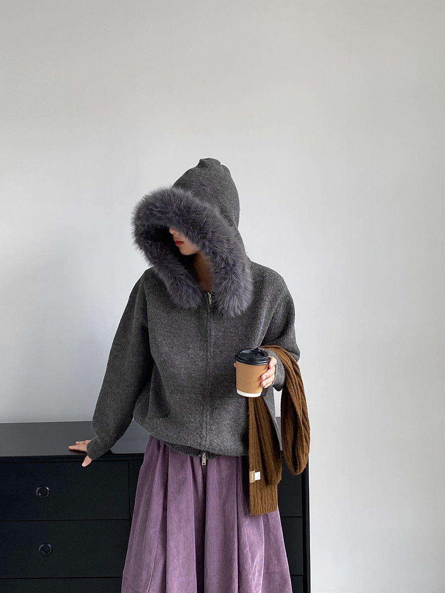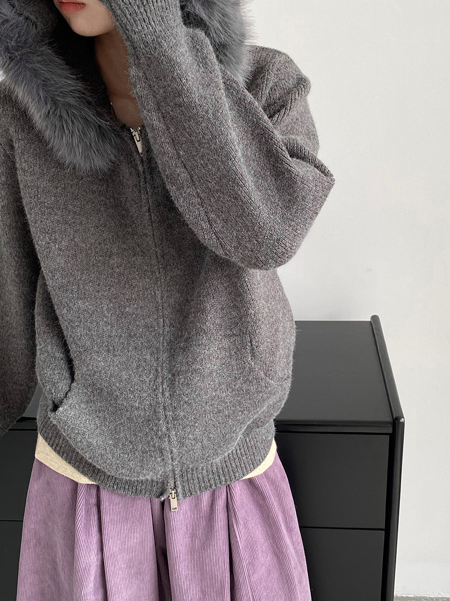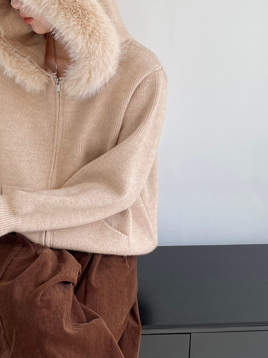 【cimz8321】實拍可拆卸毛領連帽拉鍊毛衣外套251128