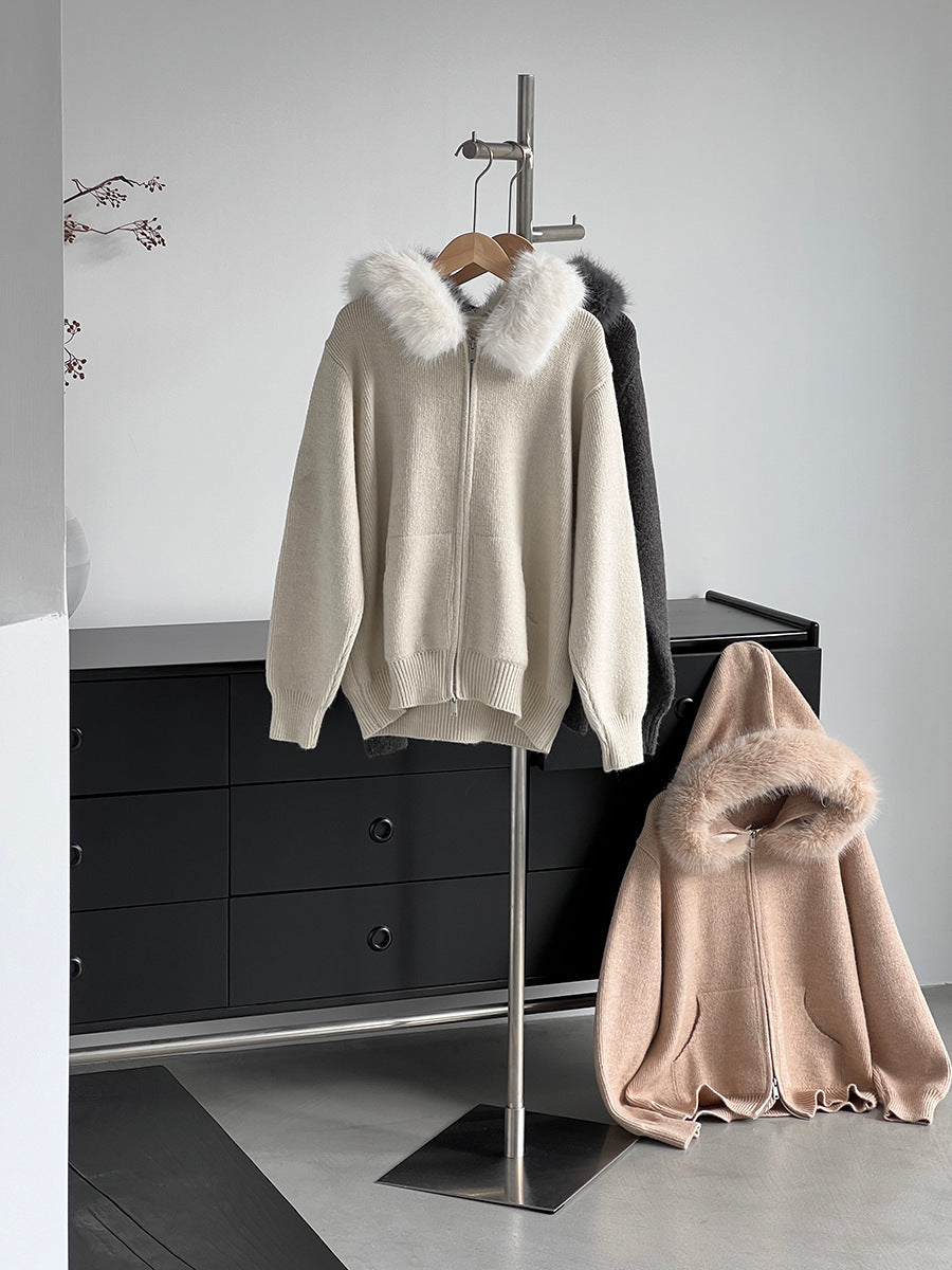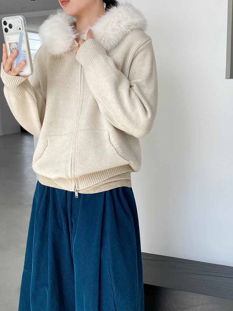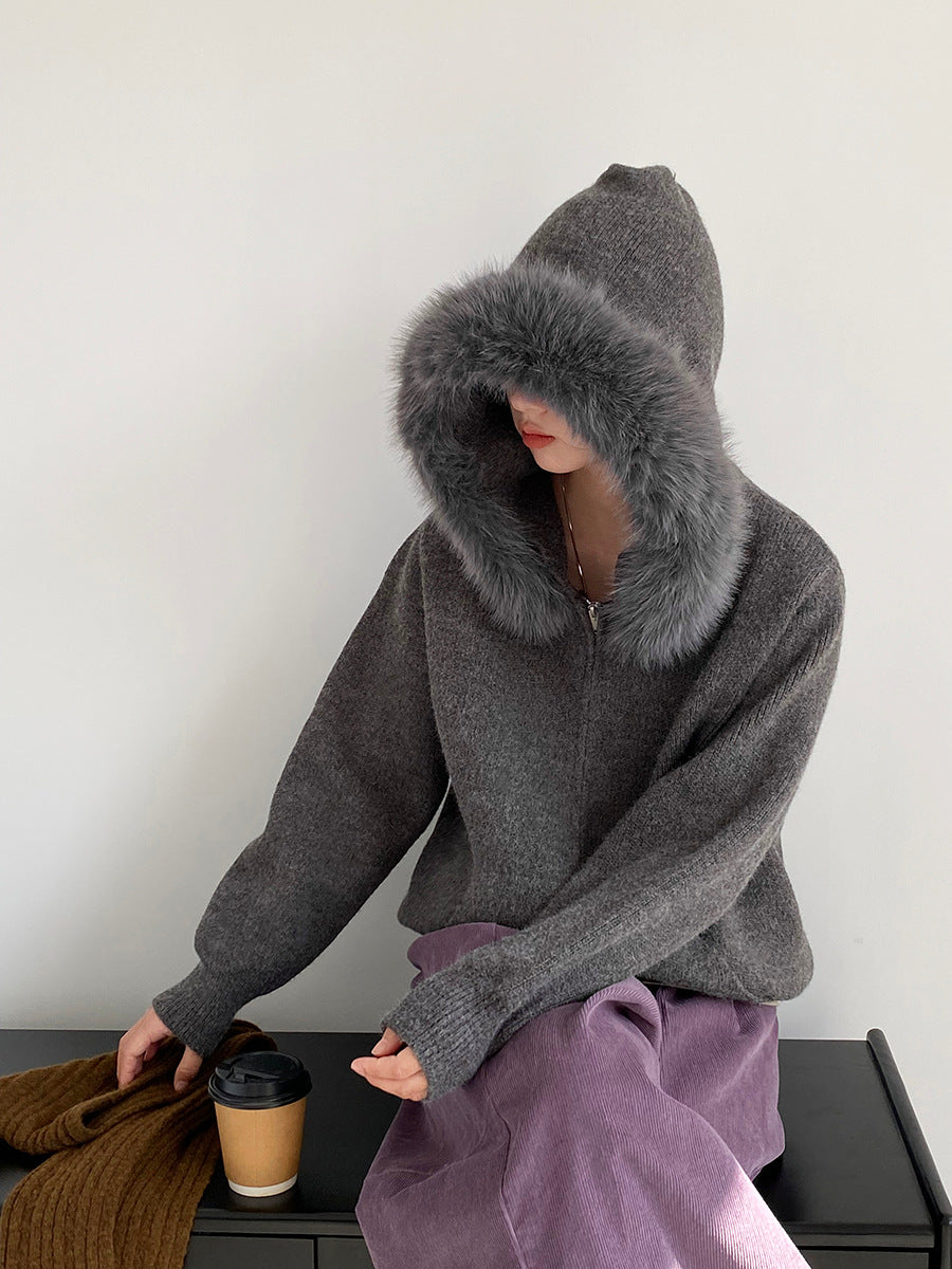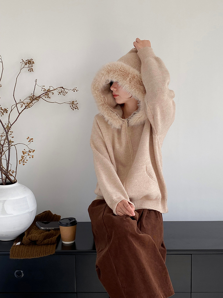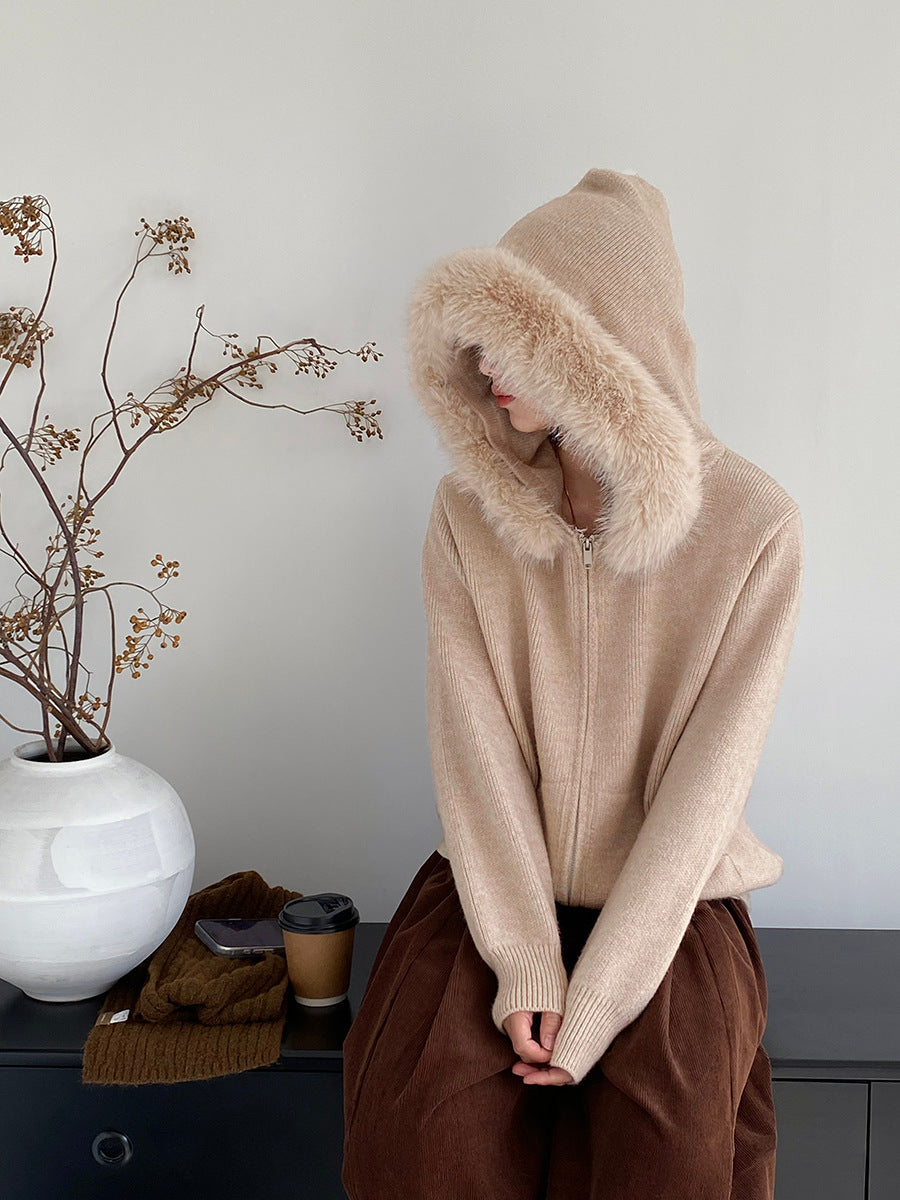 【cimz8321】實拍可拆卸毛領連帽拉鍊毛衣外套251128