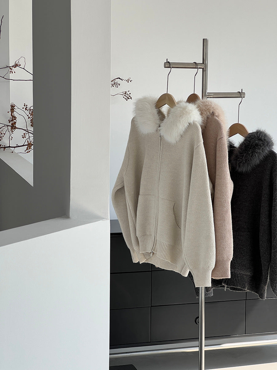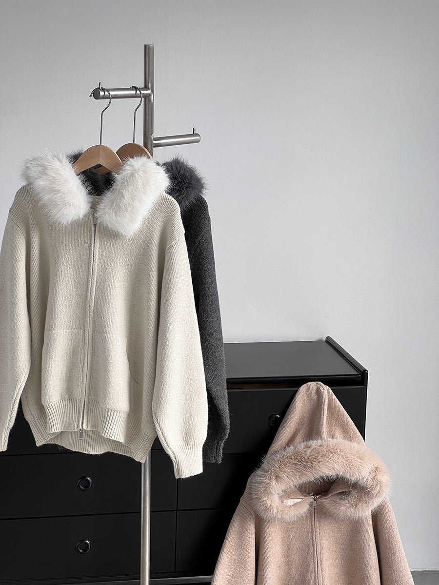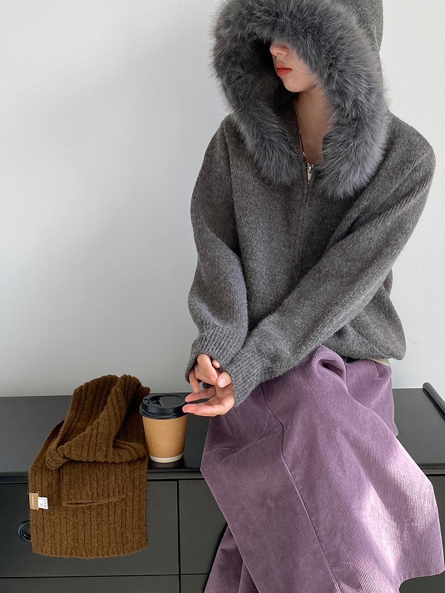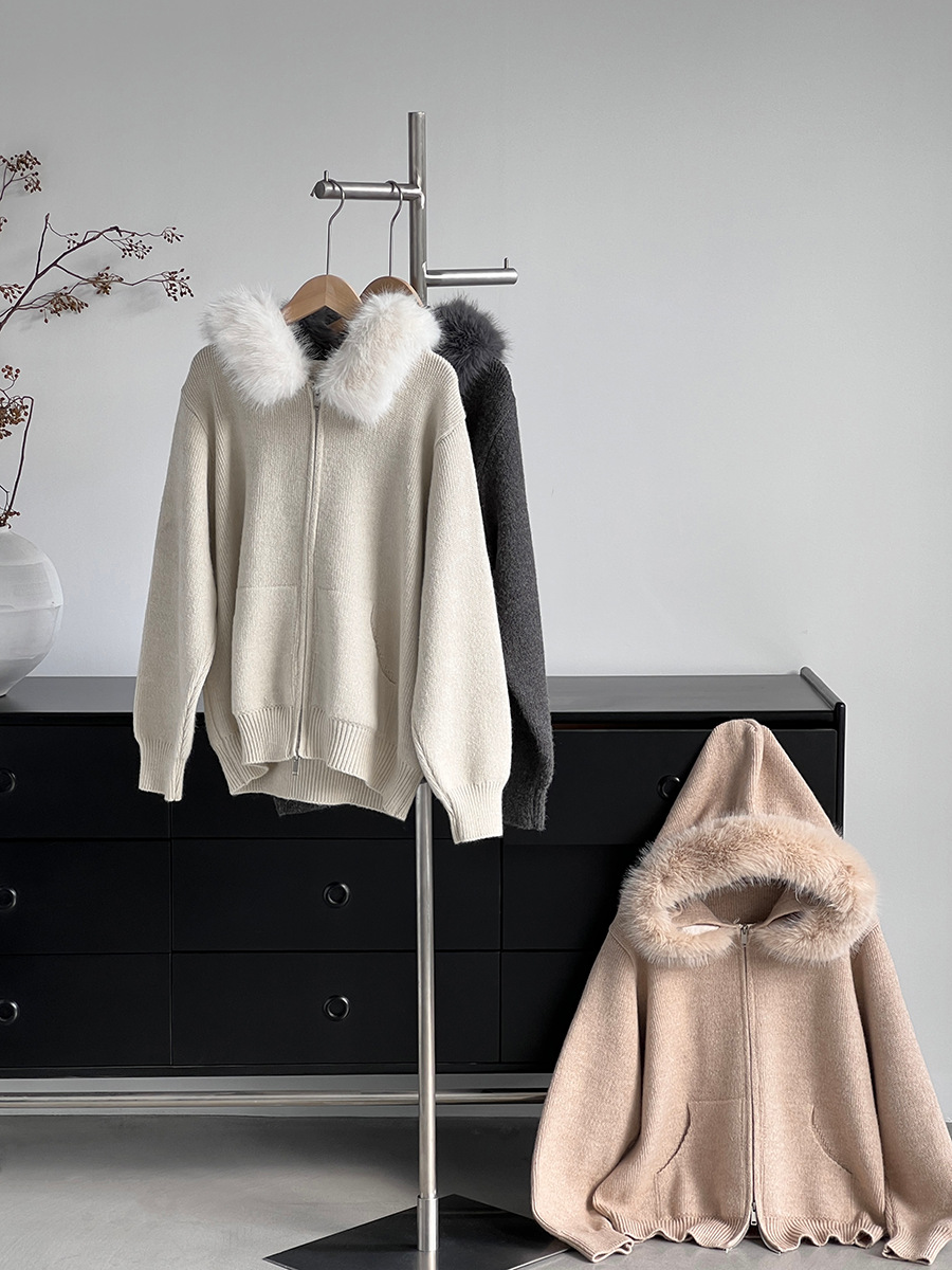 【cimz8321】實拍可拆卸毛領連帽拉鍊毛衣外套251128