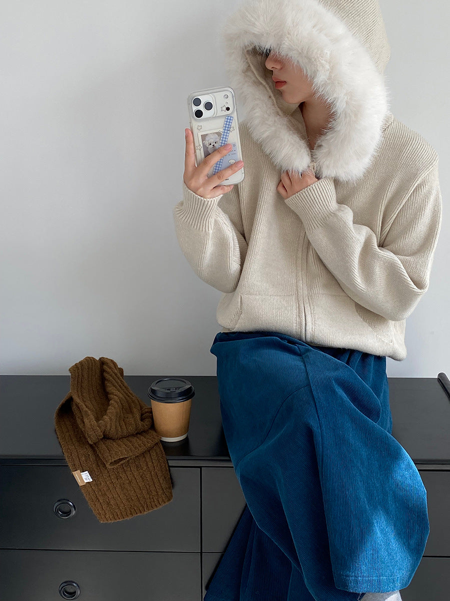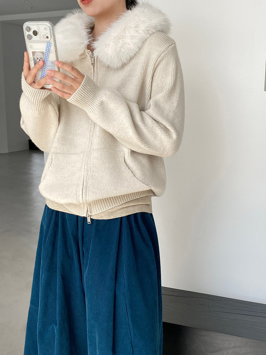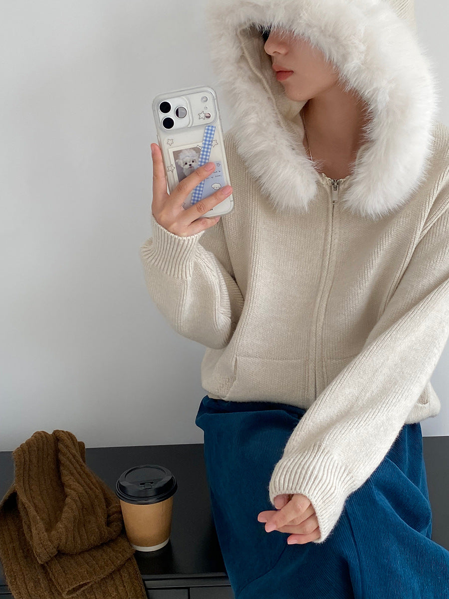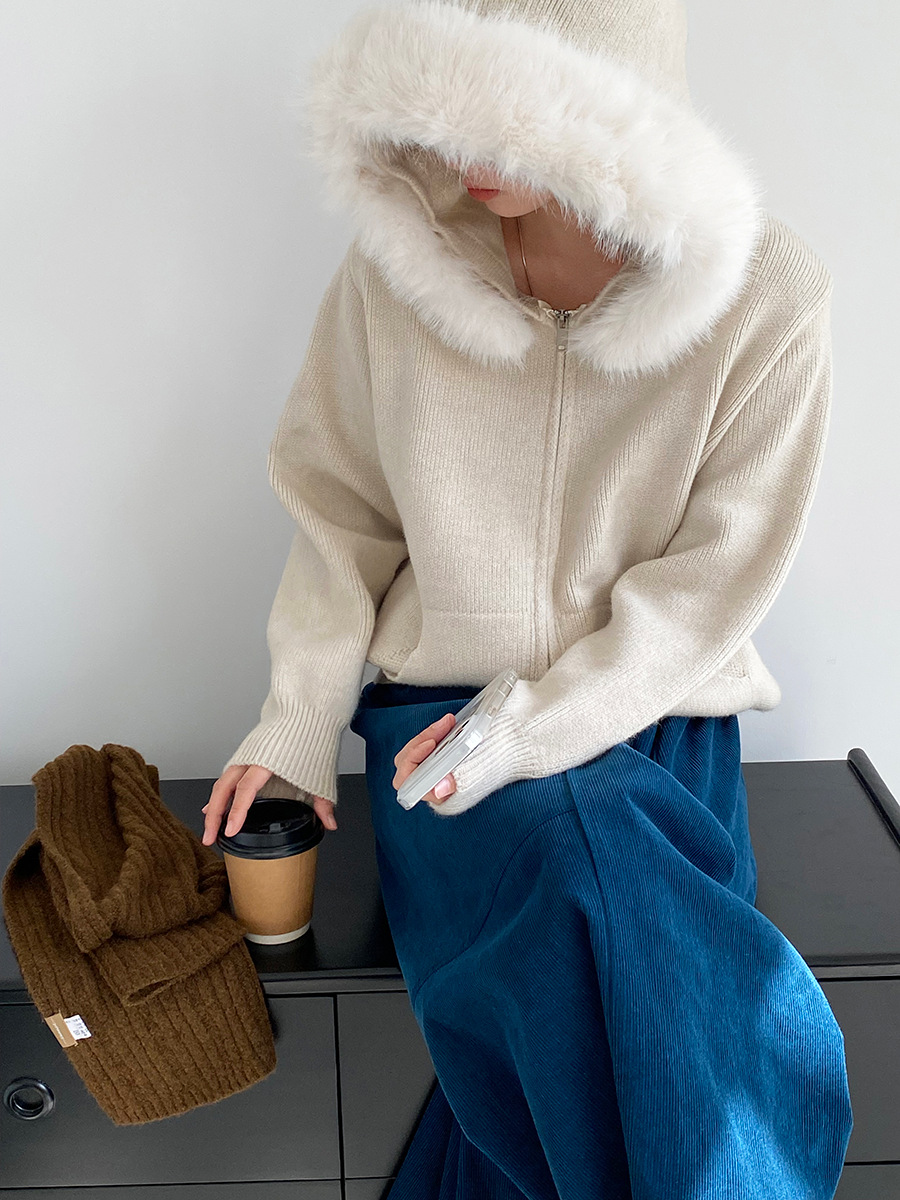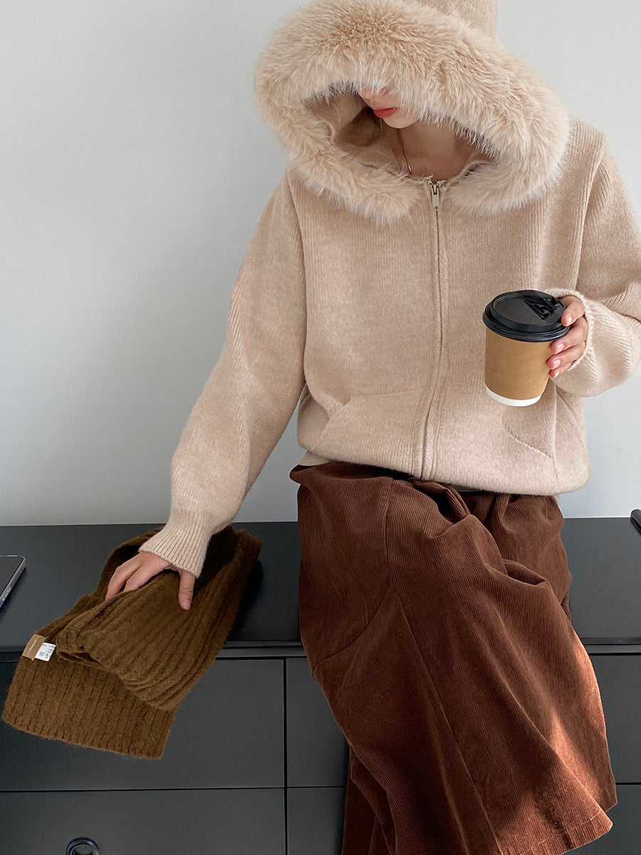 【cimz8321】實拍可拆卸毛領連帽拉鍊毛衣外套251128