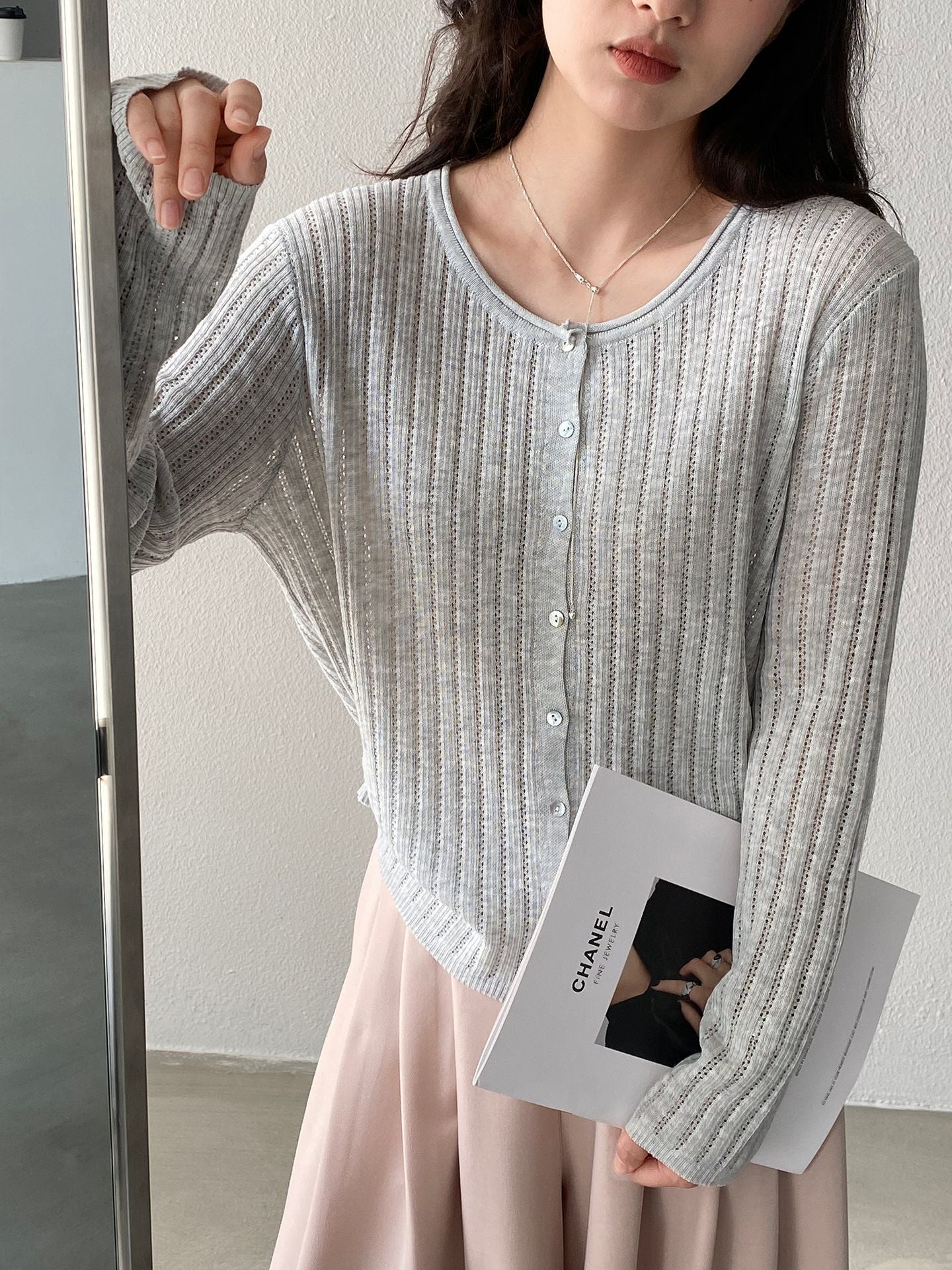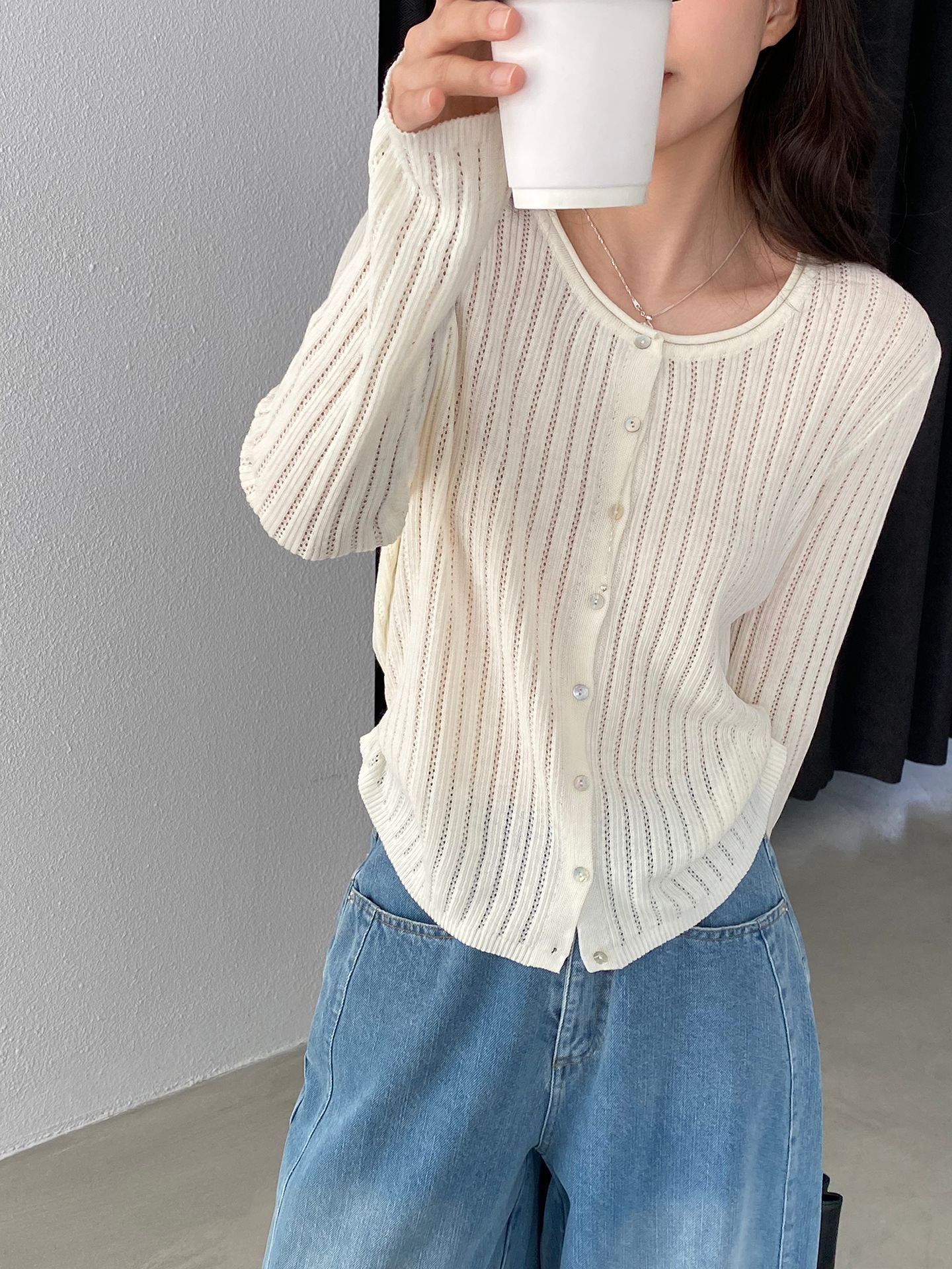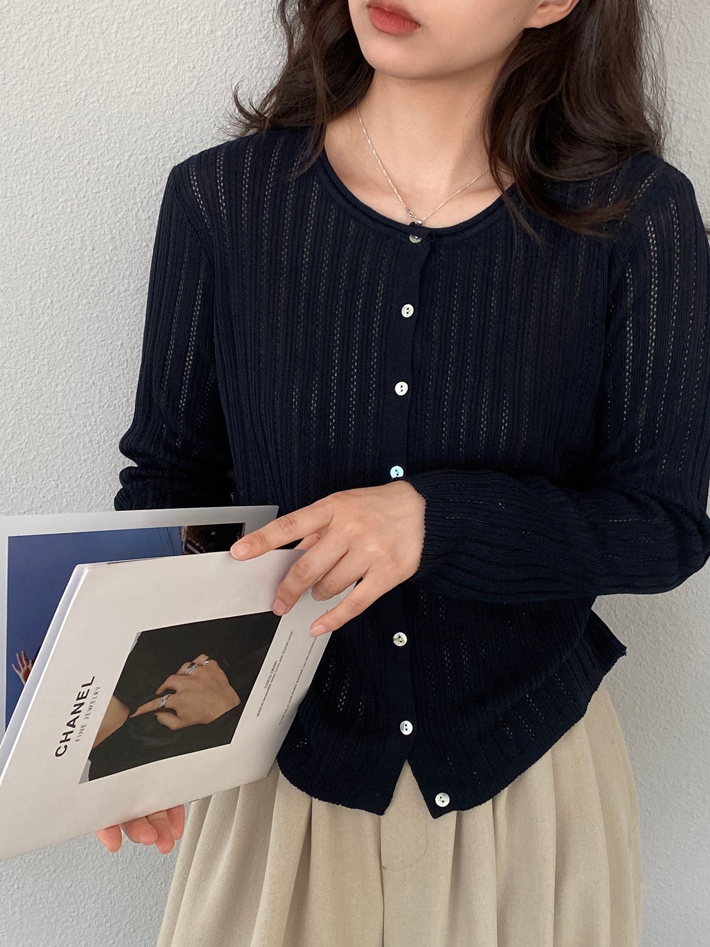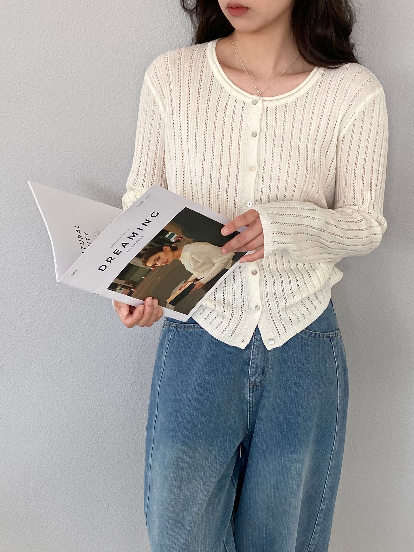 【cimzW6005】早春韓系溫柔☁️捲邊領鏤空薄款羊毛針織小外套/罩衫260319