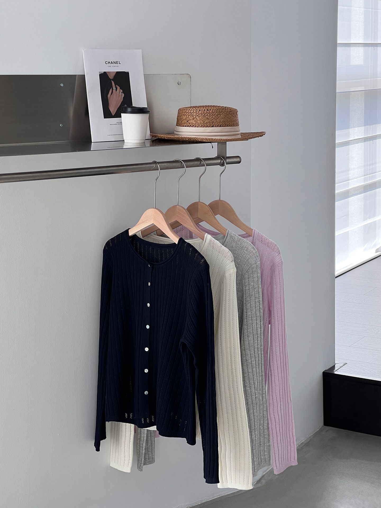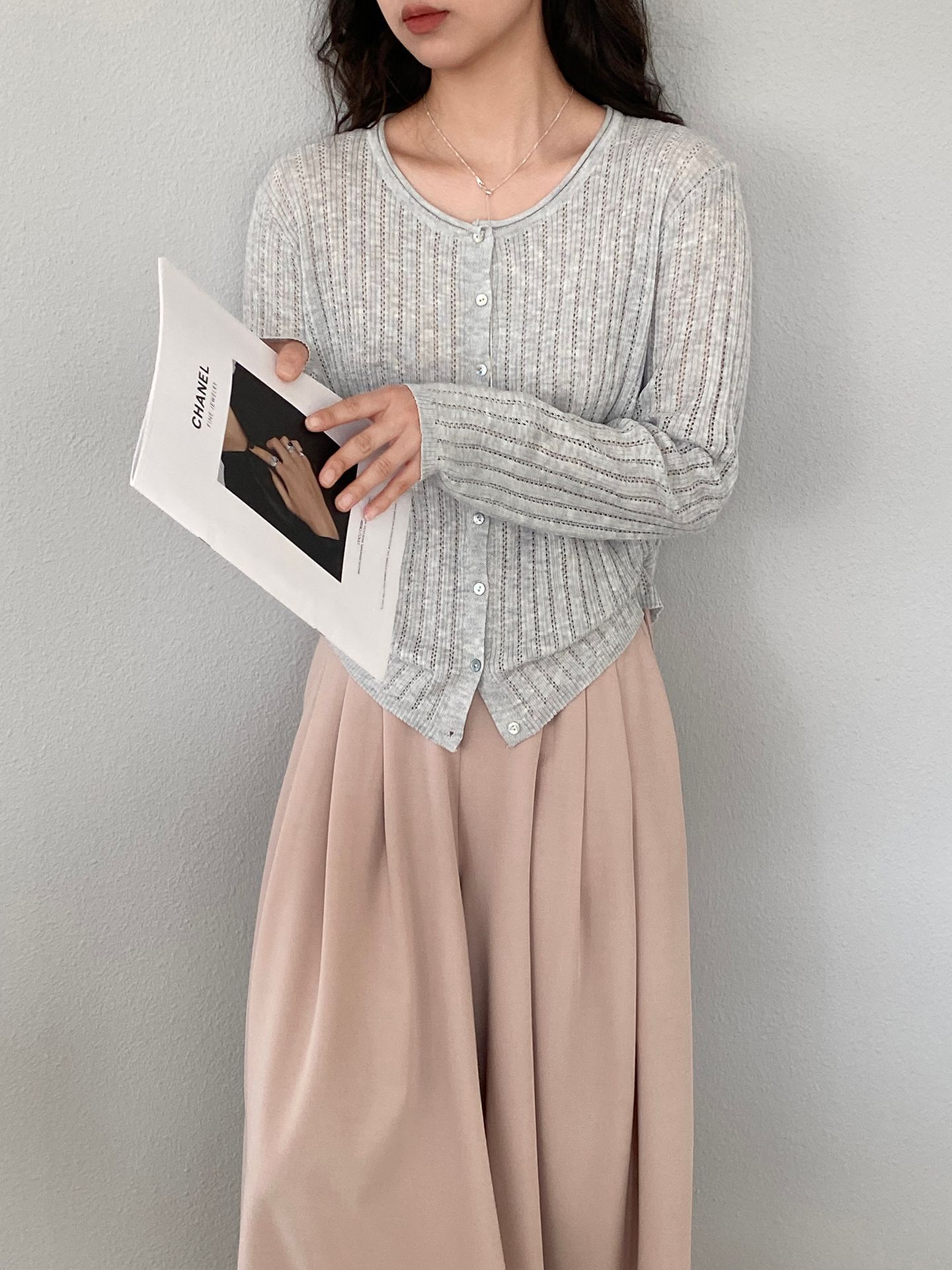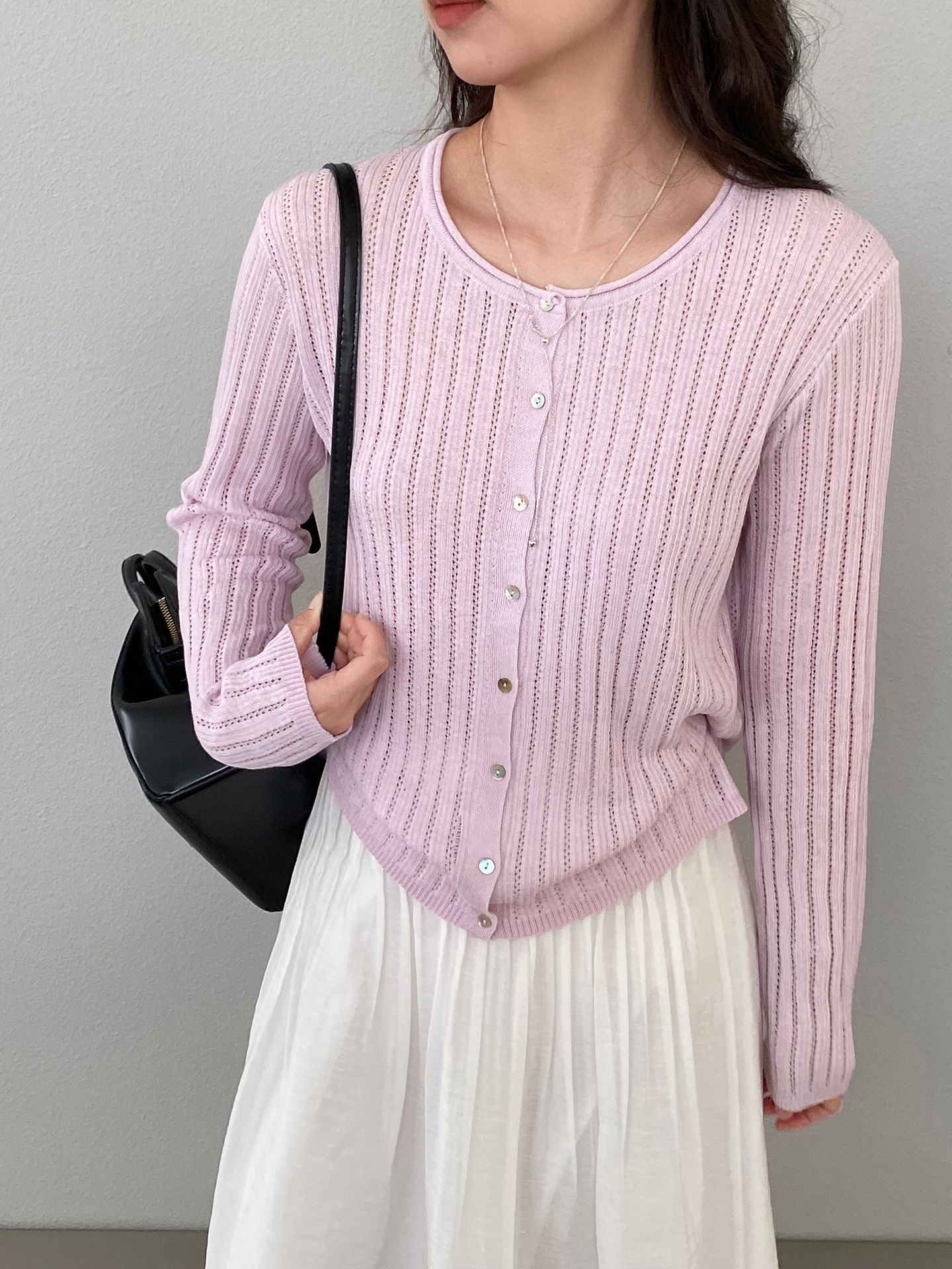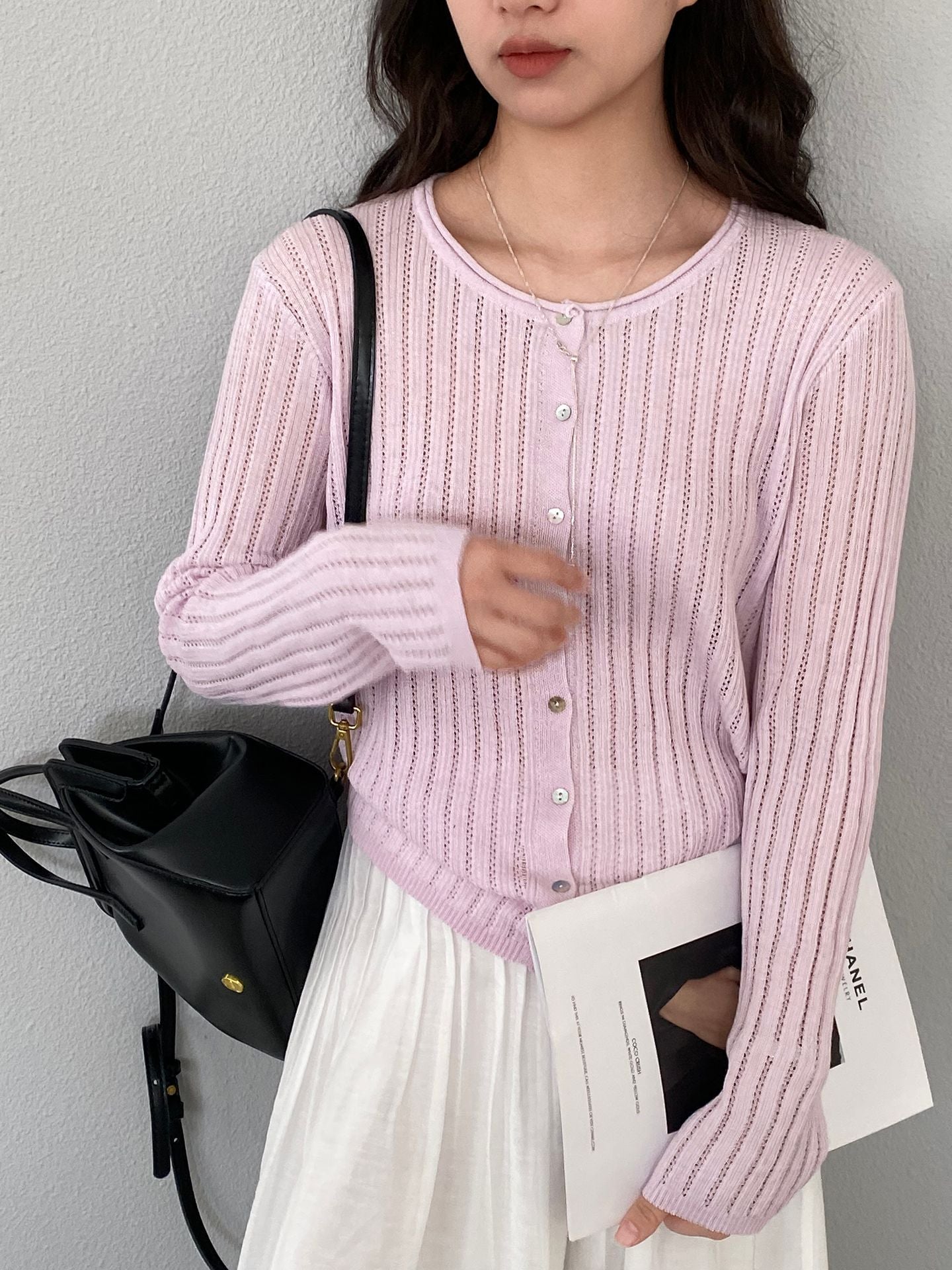 【cimzW6005】早春韓系溫柔☁️捲邊領鏤空薄款羊毛針織小外套/罩衫260319