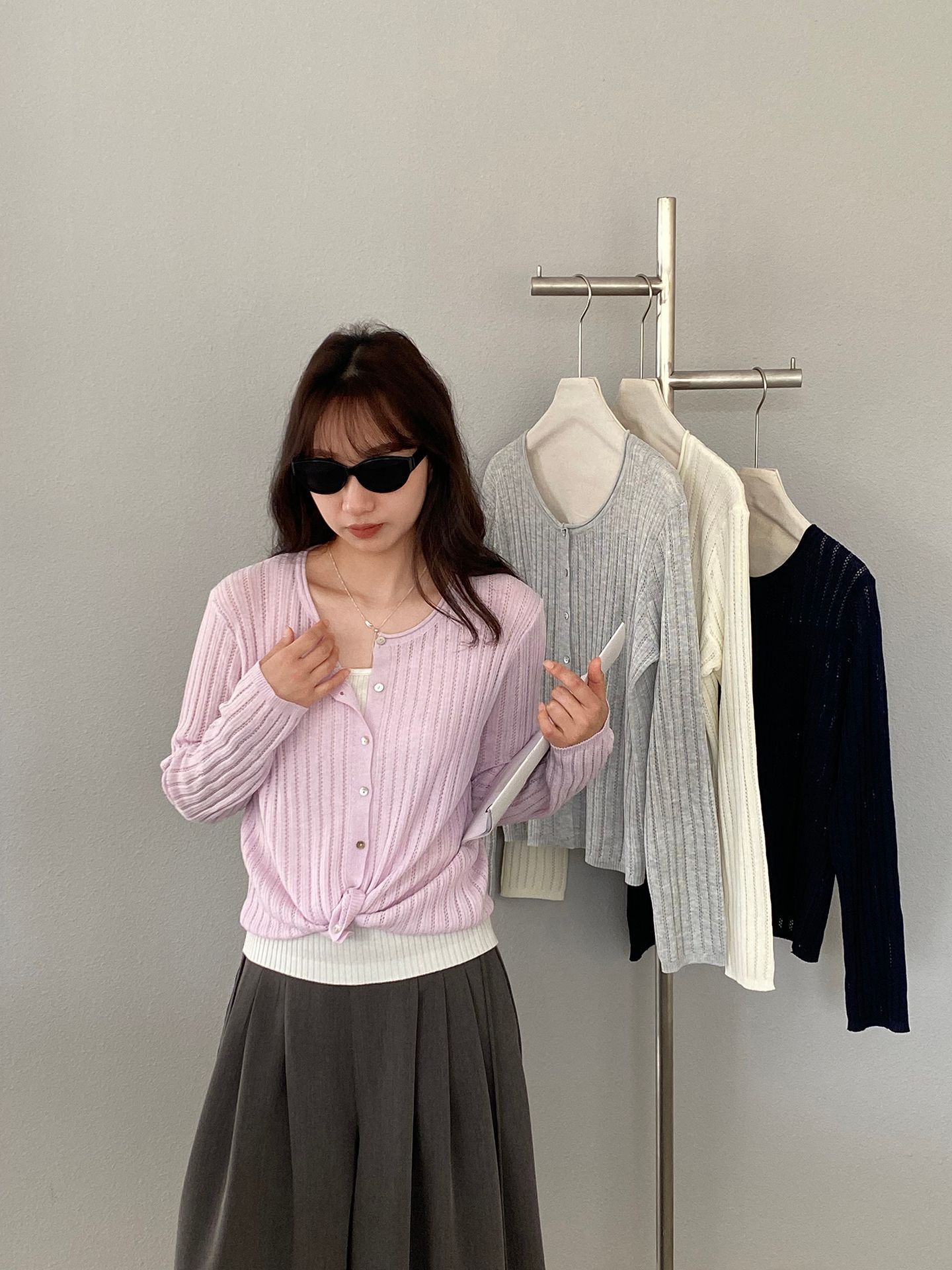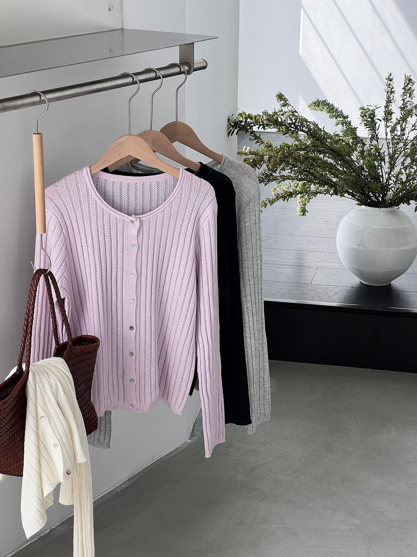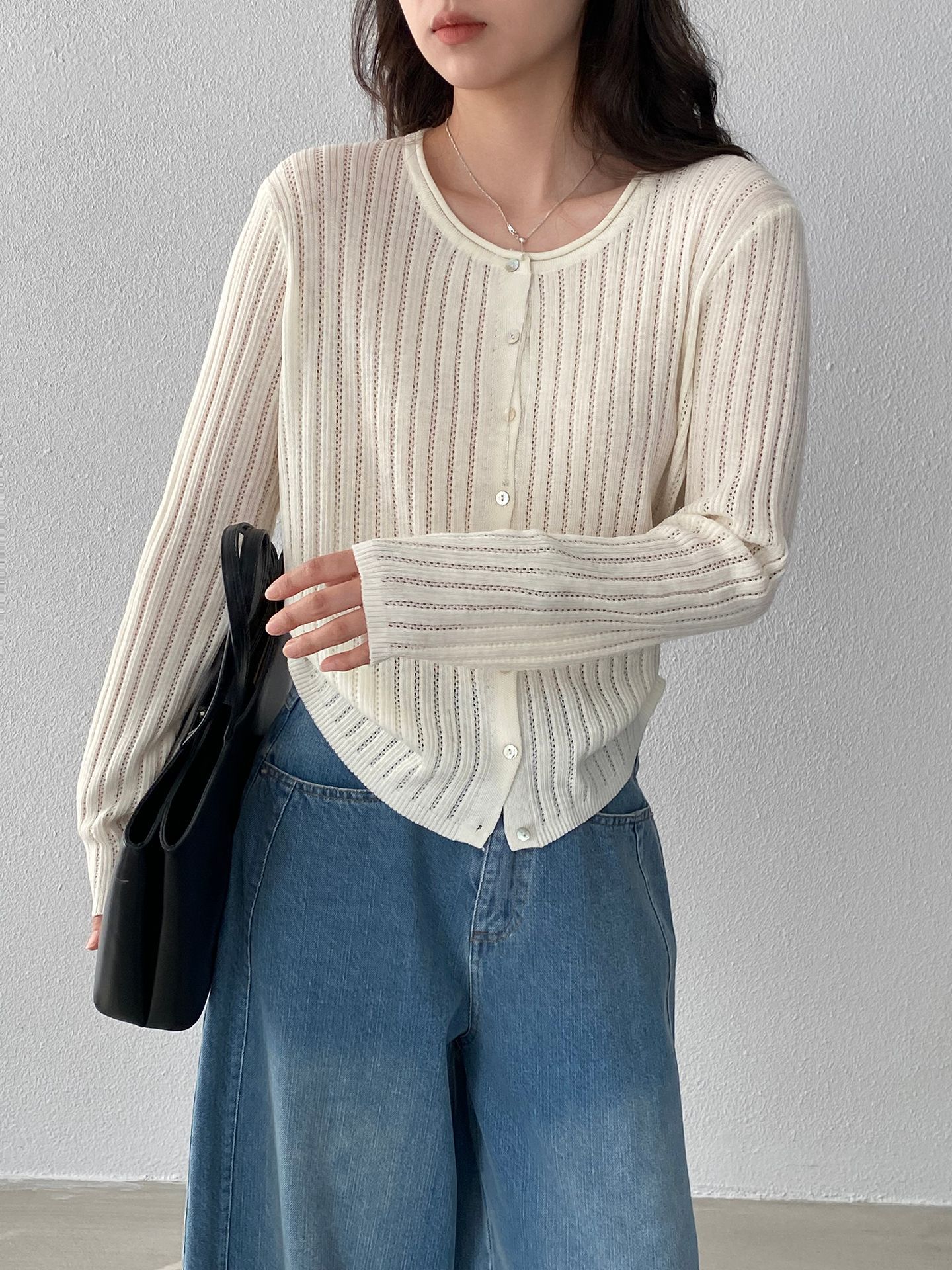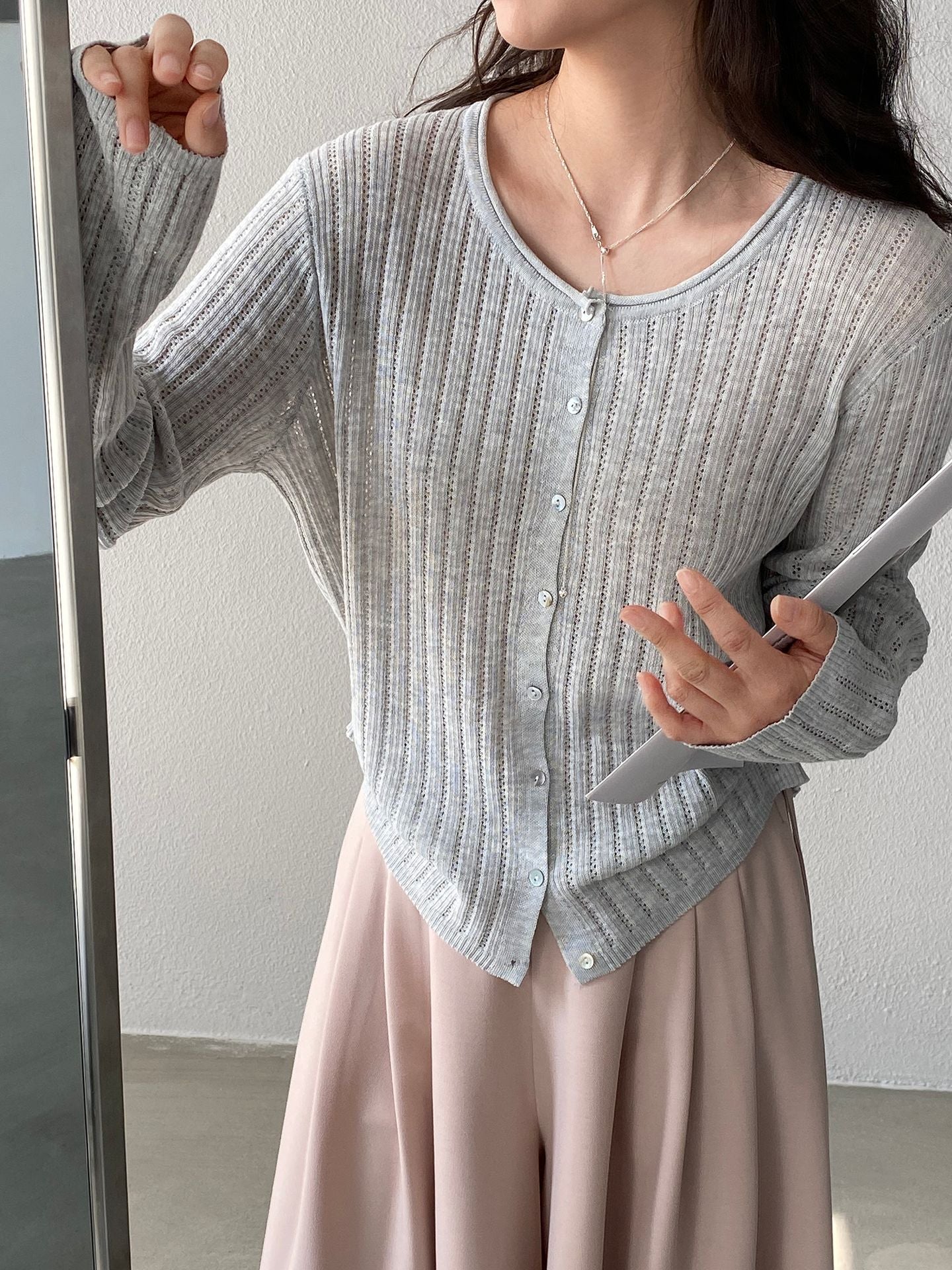【cimzW6005】早春韓系溫柔☁️捲邊領鏤空薄款羊毛針織小外套/罩衫260319