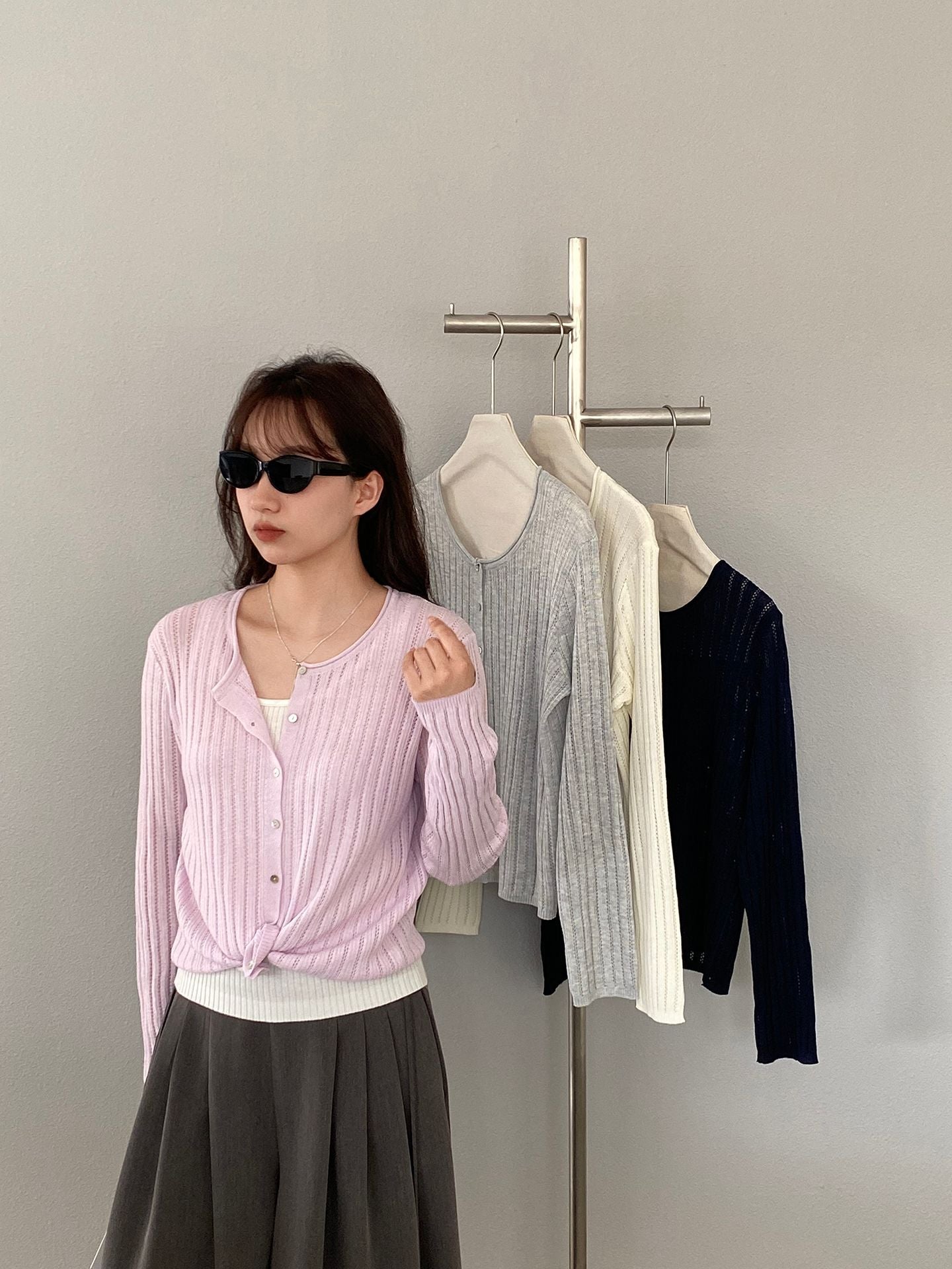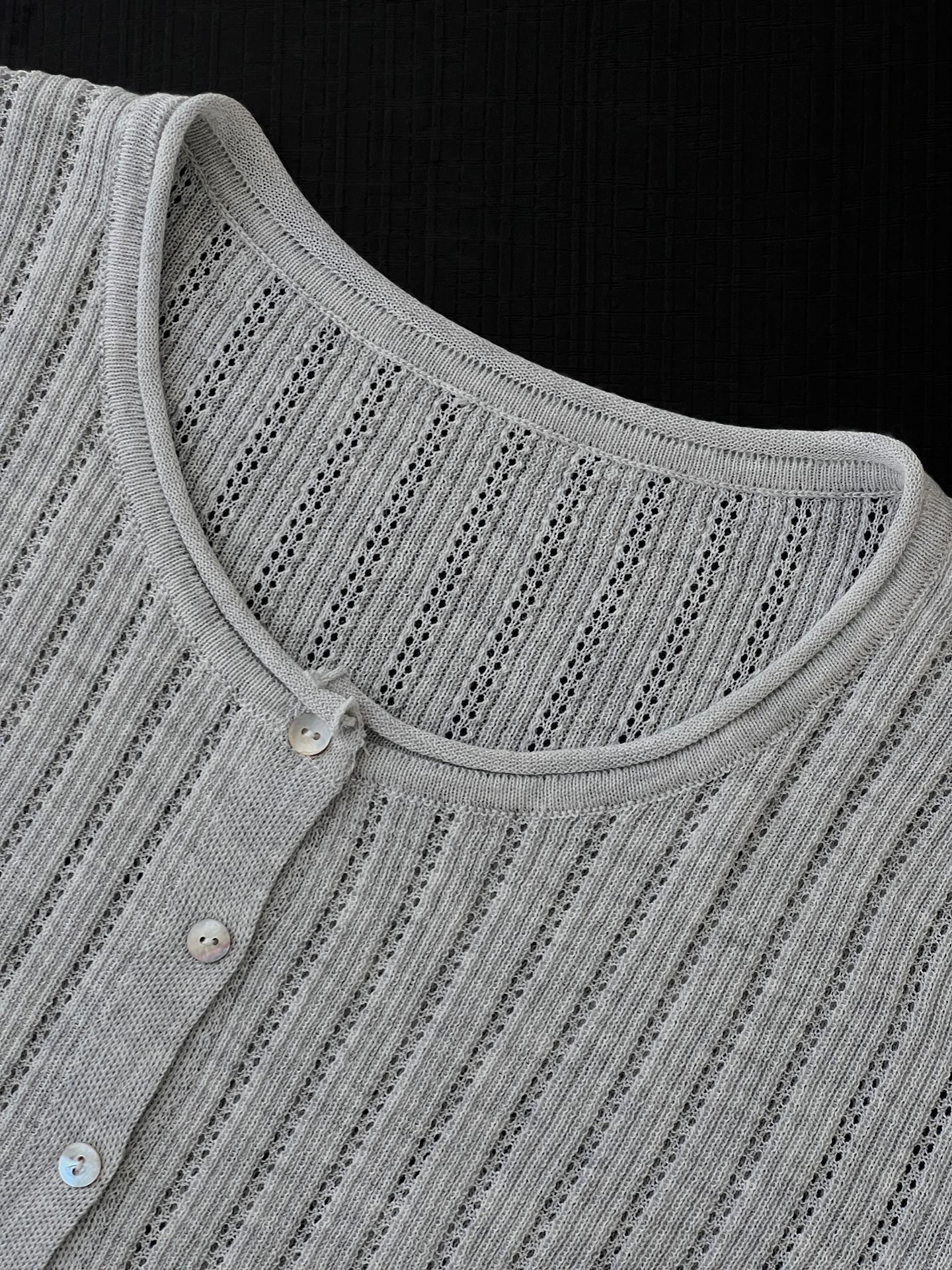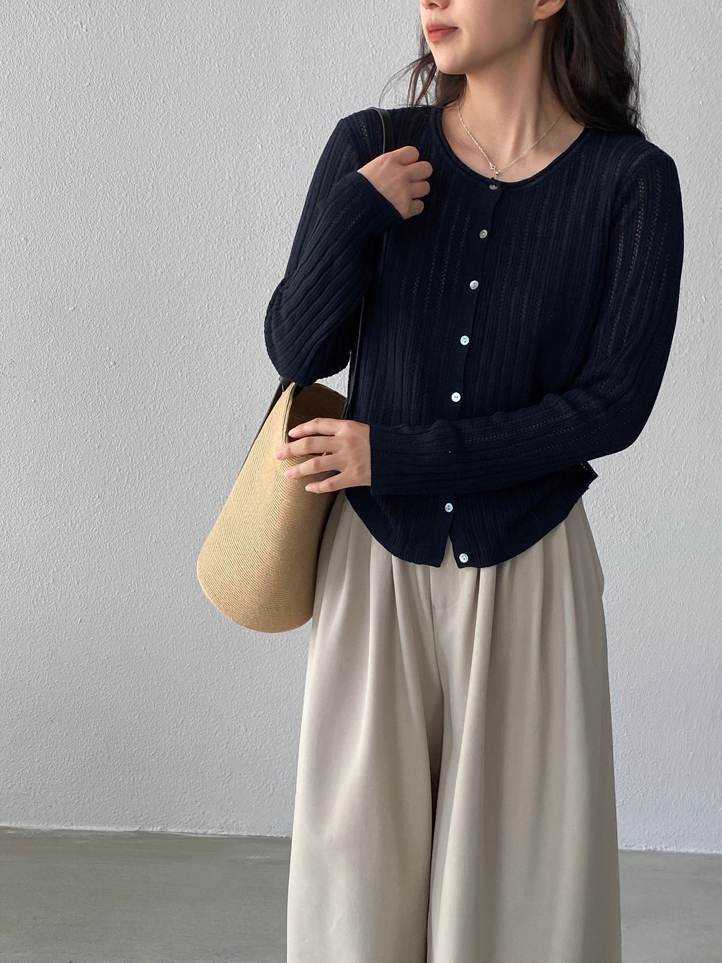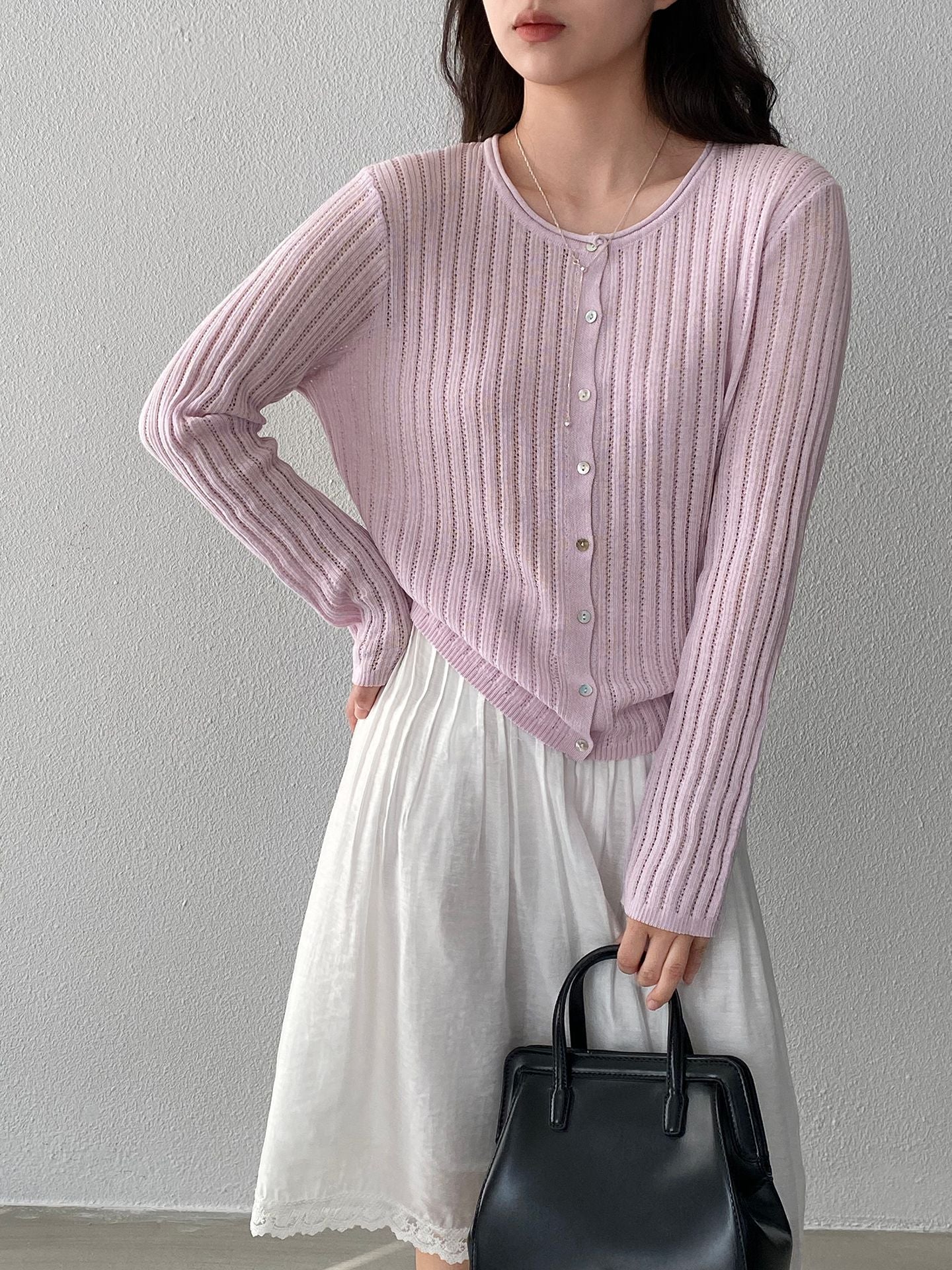 【cimzW6005】早春韓系溫柔☁️捲邊領鏤空薄款羊毛針織小外套/罩衫260319